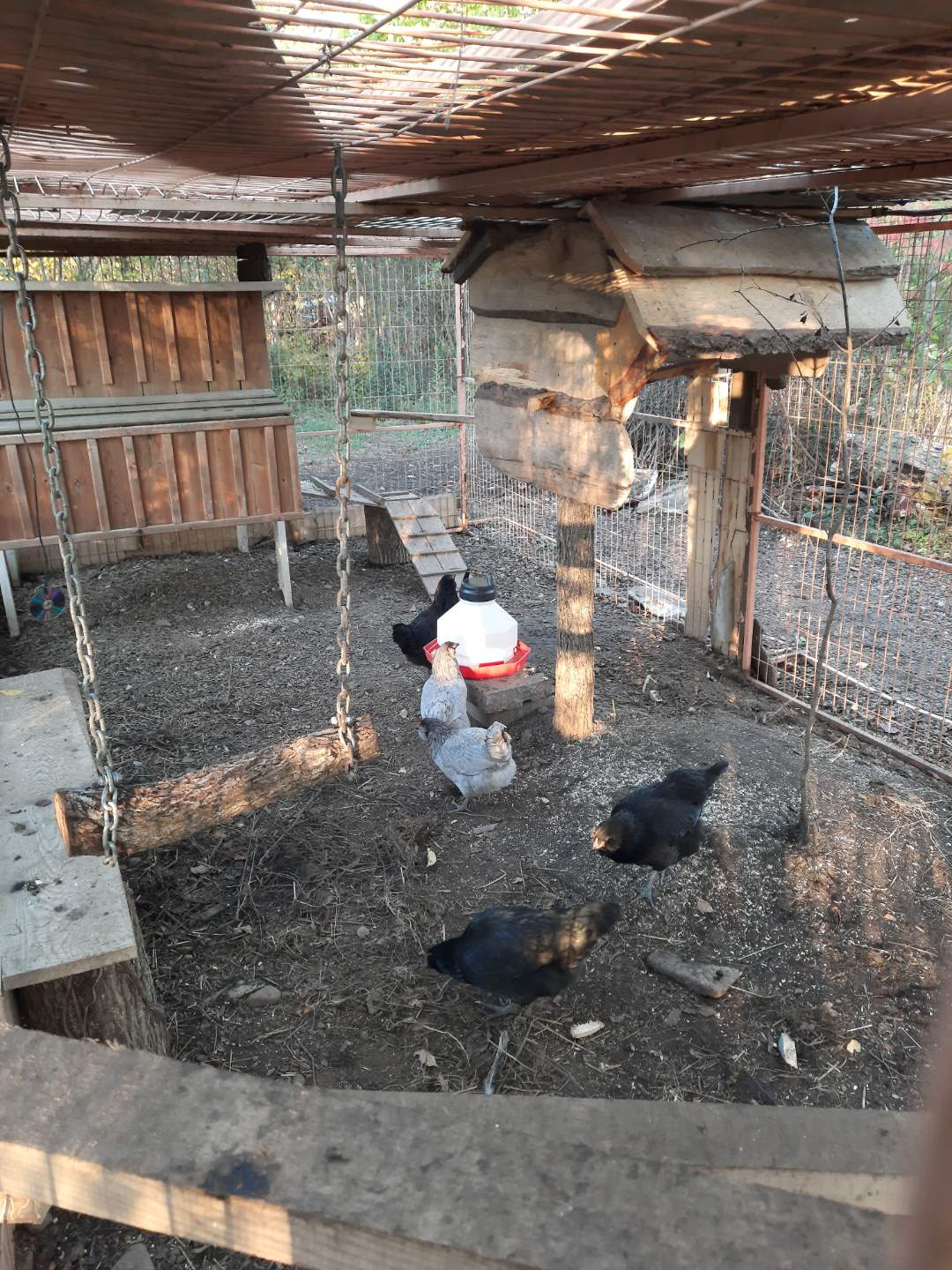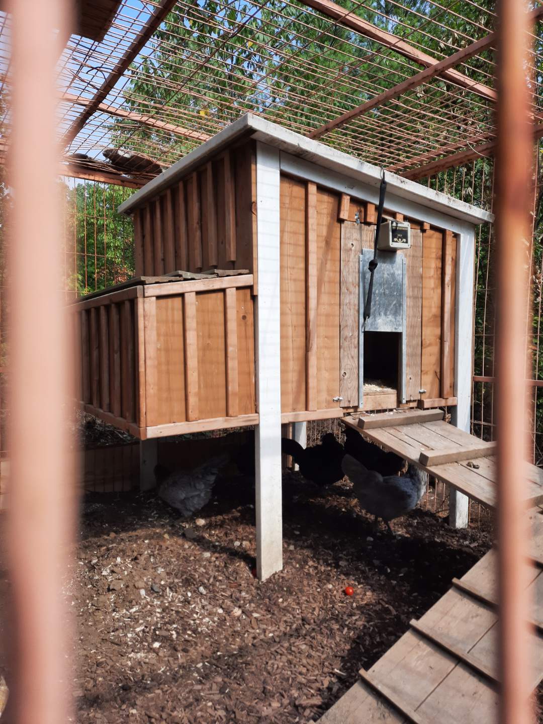 I'm also mad as hell.... because he tends to think they would have been fine...and also figured whatever got them, waited until the door came up, and got them while they were still inside. I told him, something must have gotten in the coop, because at 8am.. its fairly light out, and they all wouldn't have all sat inside, some would have flown the coop. Oh well. I told him he will have to put the hardware cloth on the inside, and curl around the bottom, so nothing could get in from underneath. What you see on the sides is on the bottom as well. NO coon or coyote would ever dig their way in.