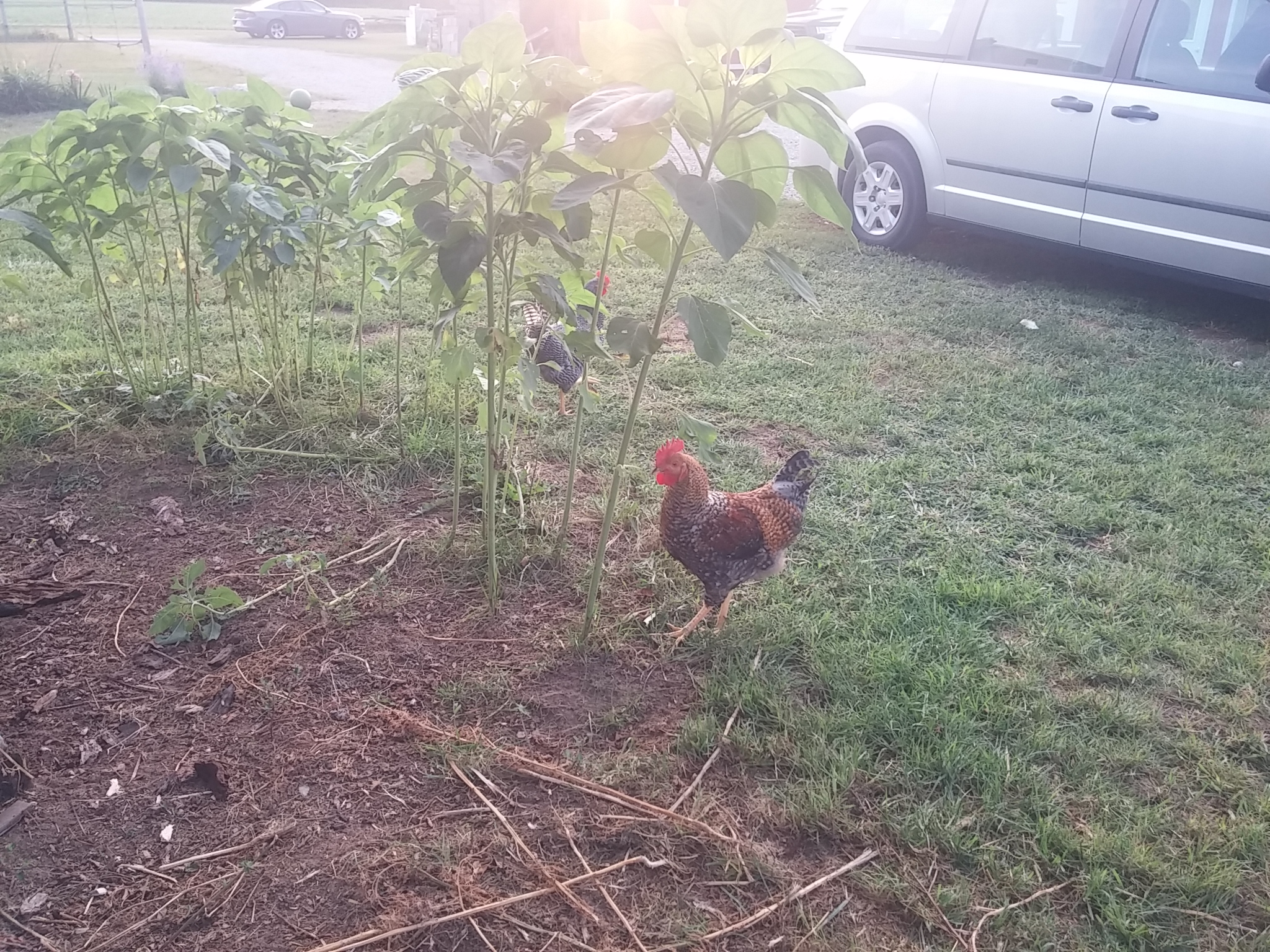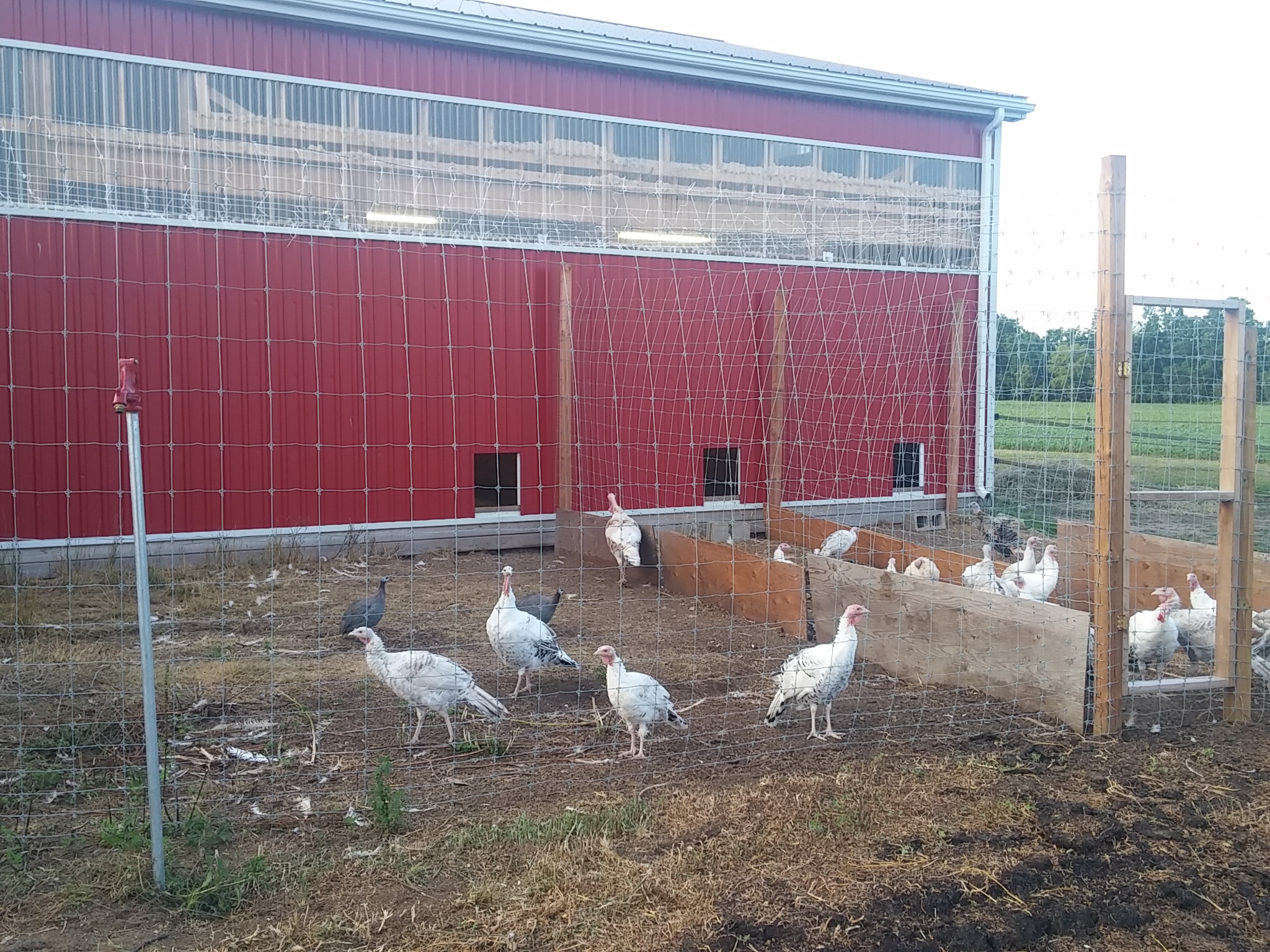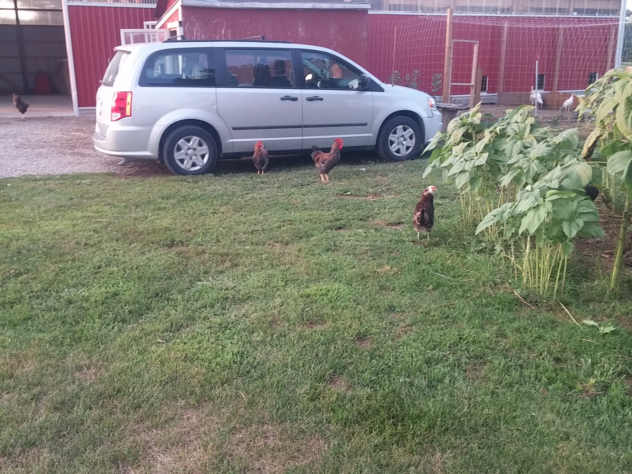 Kind of a busy day today I think I have more raccoons terrorizing the birds, one young pullet dead through the mesh of 1 of my hoop houses and my young turkeys in another hoop house must have got spooked or something and some how 1 strap came off the door and most of them were out this morning, missing 2 of my 16 young beltsville, caught the rest. Fixed hoop house hopefully all will be good as I am leaving for 3 day road trip back to London with my daughters.