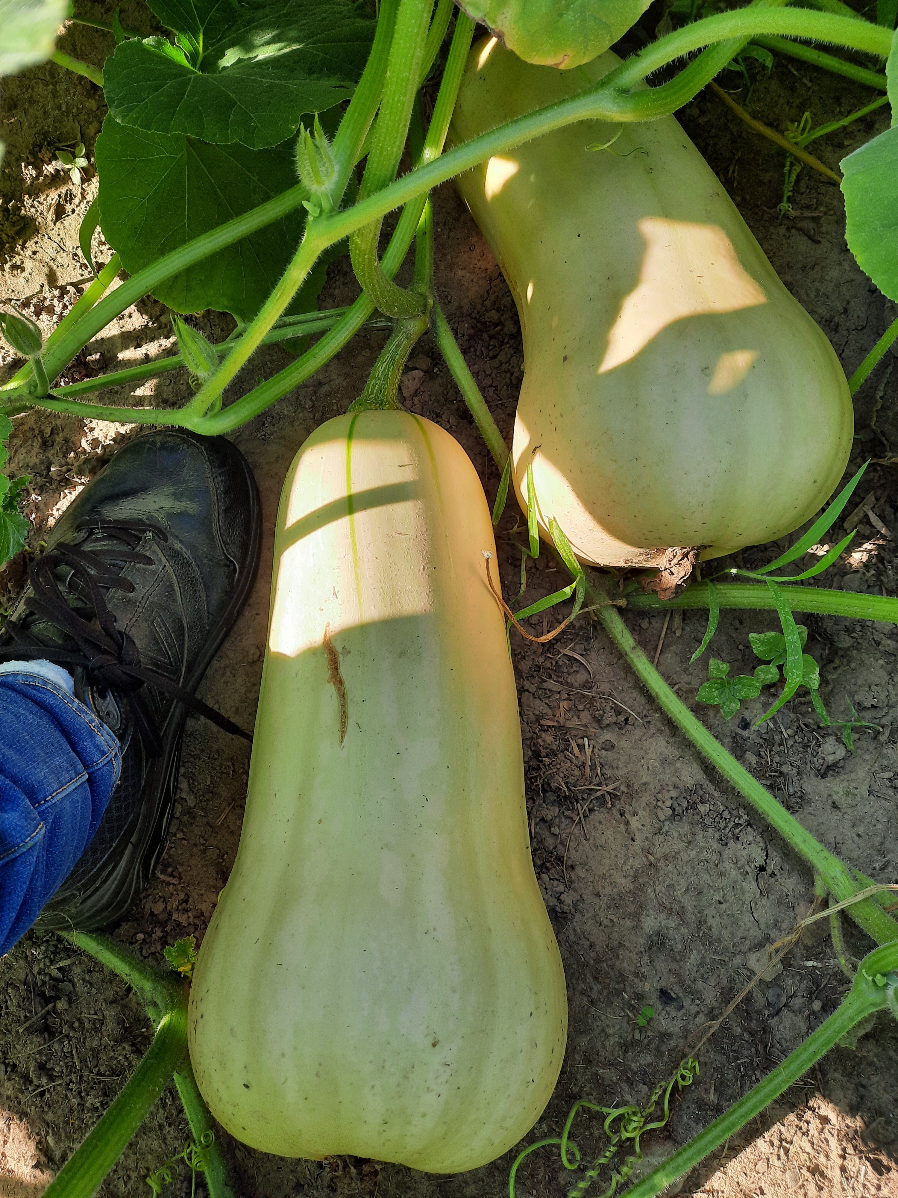 TONS of butternut. Both in this patch, and in the garden on the south side. I have NO idea how I will process this stuff... I DO have a pressure canner someone bought for me about 10 years ago.. she used it to do jars of cubed butternut, but I haven't used it since. Scared and can't remember how to lol.