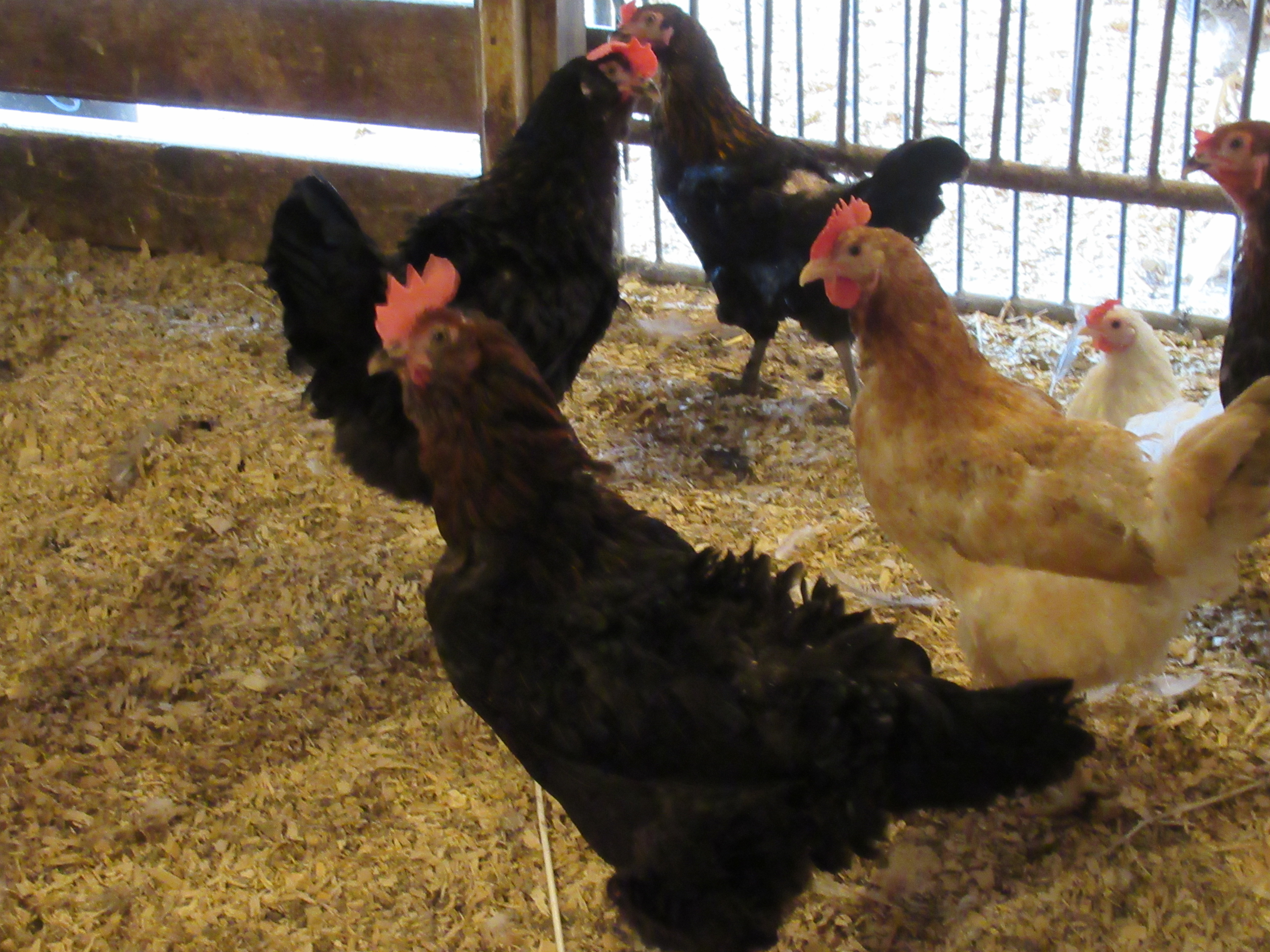 I took some pictures of some of my chickens. The black hens are from EE's covered with a BCM. Those girls were crossed with my EO... and got lots of these barred pullets.
