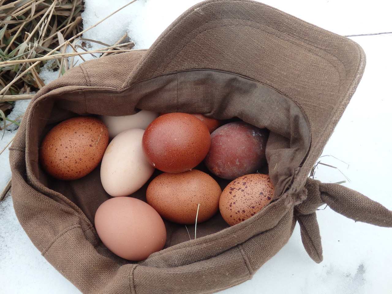 Days are getting longer I got more eggs today! I have only been getting 1 or 2 so I just stick them in my pocket but had to use my hat this morning...
