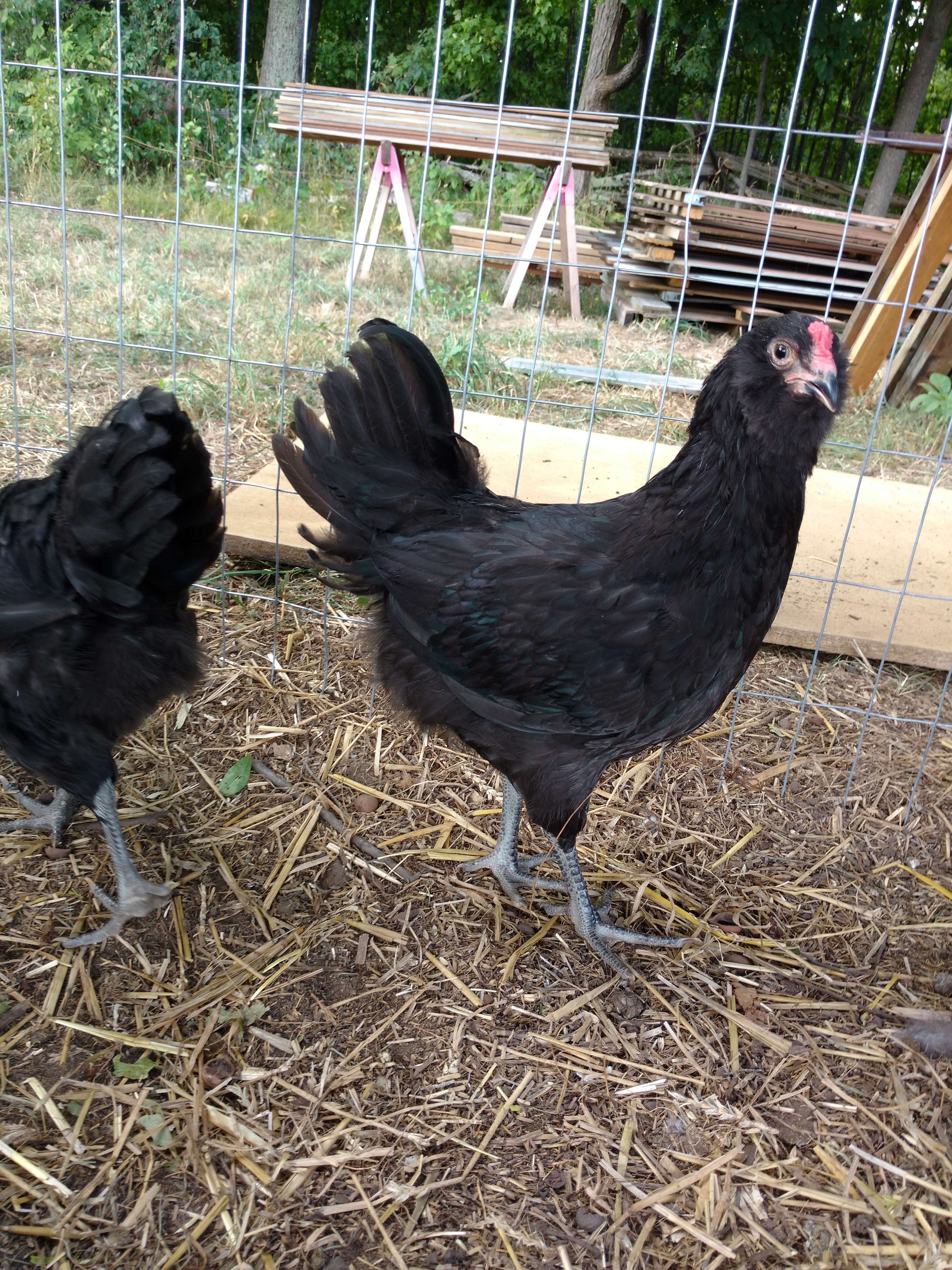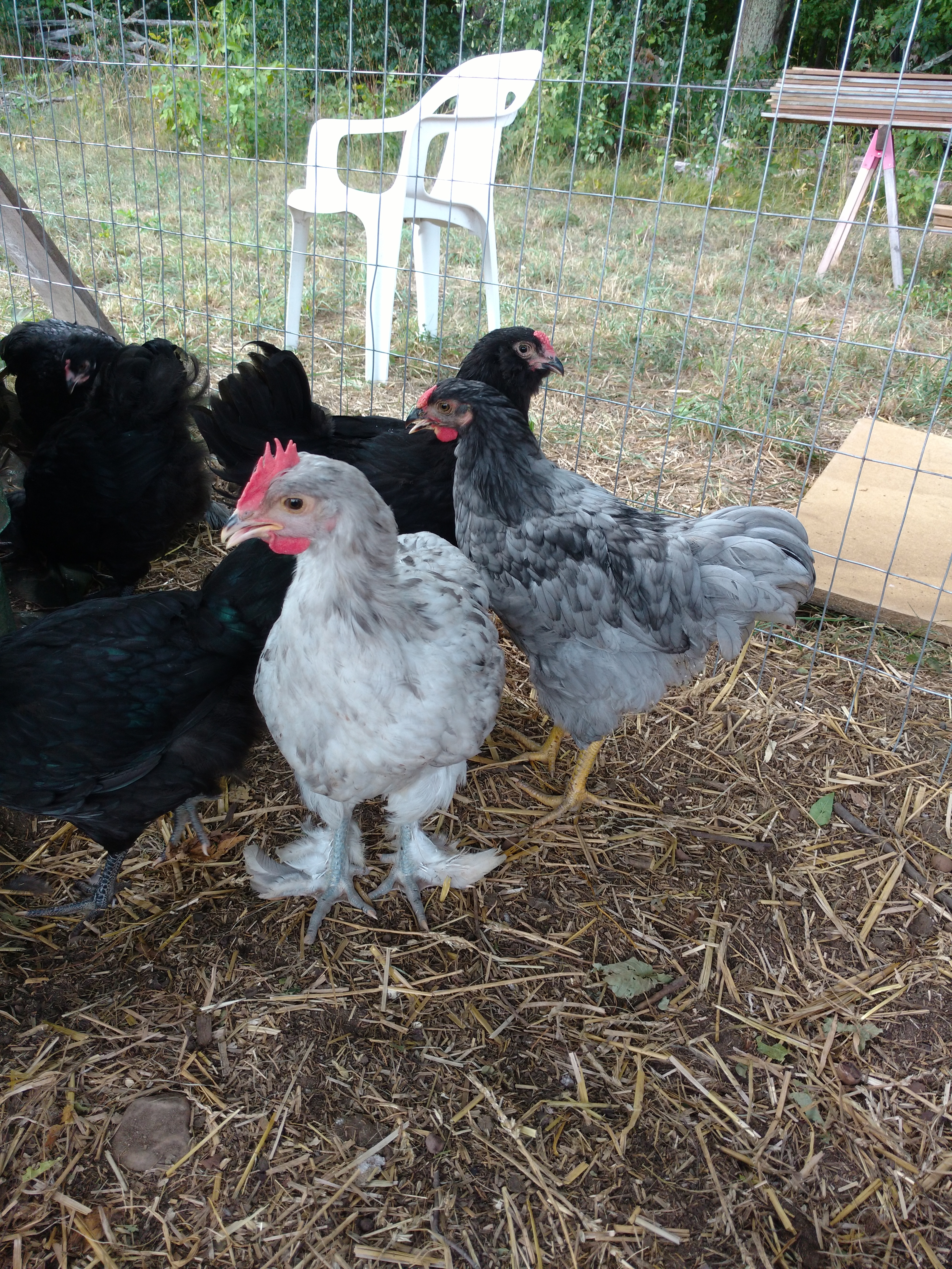 The birds I got to keep the almost lone Ameraucana hatchling company look decent enough...some sassy young cockerels ...hard to get good pics
