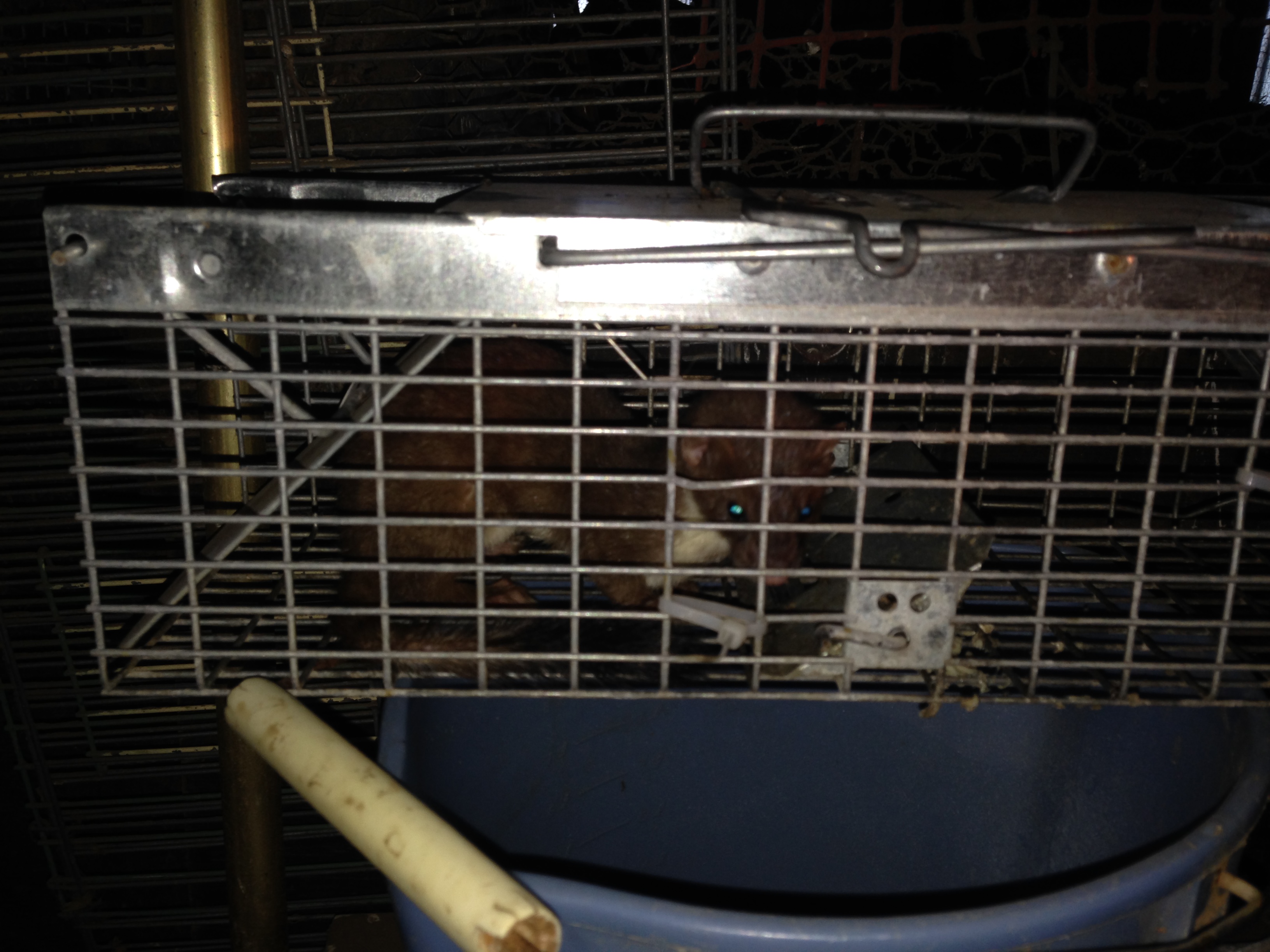 Got this one in trap today . Lost 2 rabbits . Moved rabbits to 1/2 by 3/4" wire pens same as trap . Added some more red lights in rabbit corner . Weasel still in summer brown .As I said yu don't get um all probably would have lost more if trap not set . Luck all