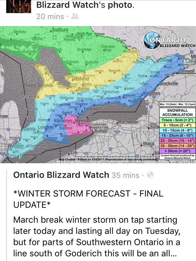 We're in the 6-10" zone but environment Canada says less so guess we'll see!