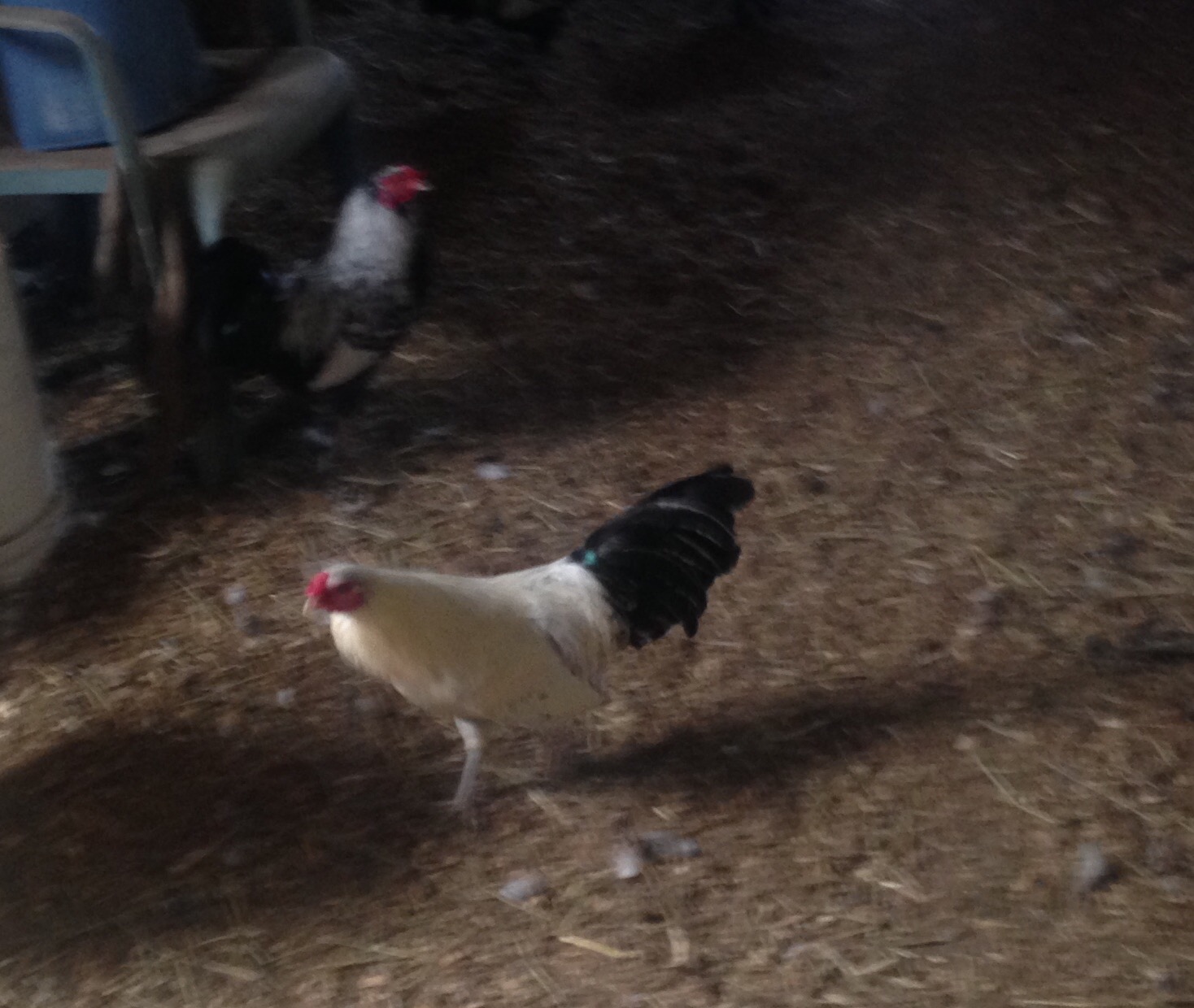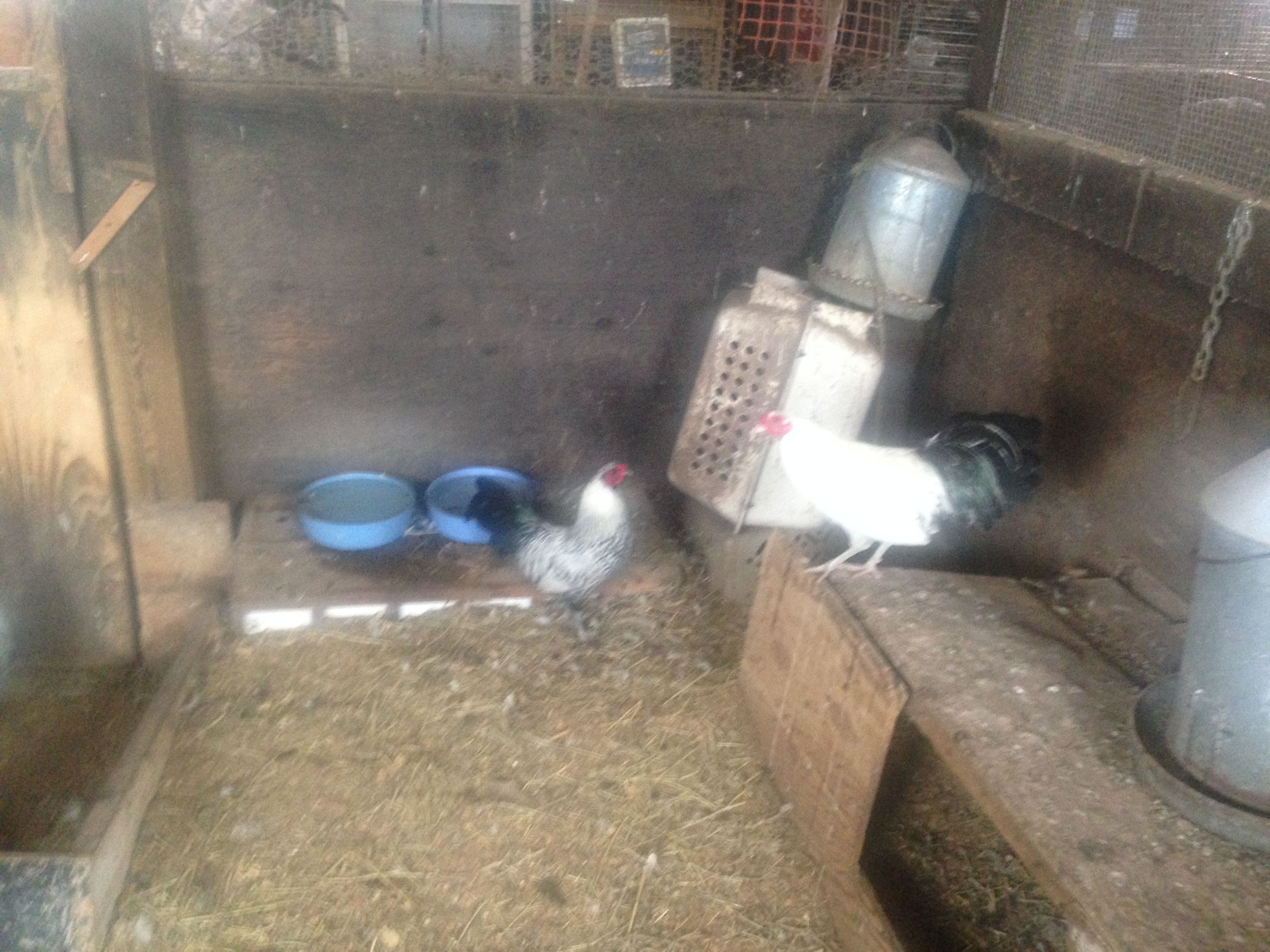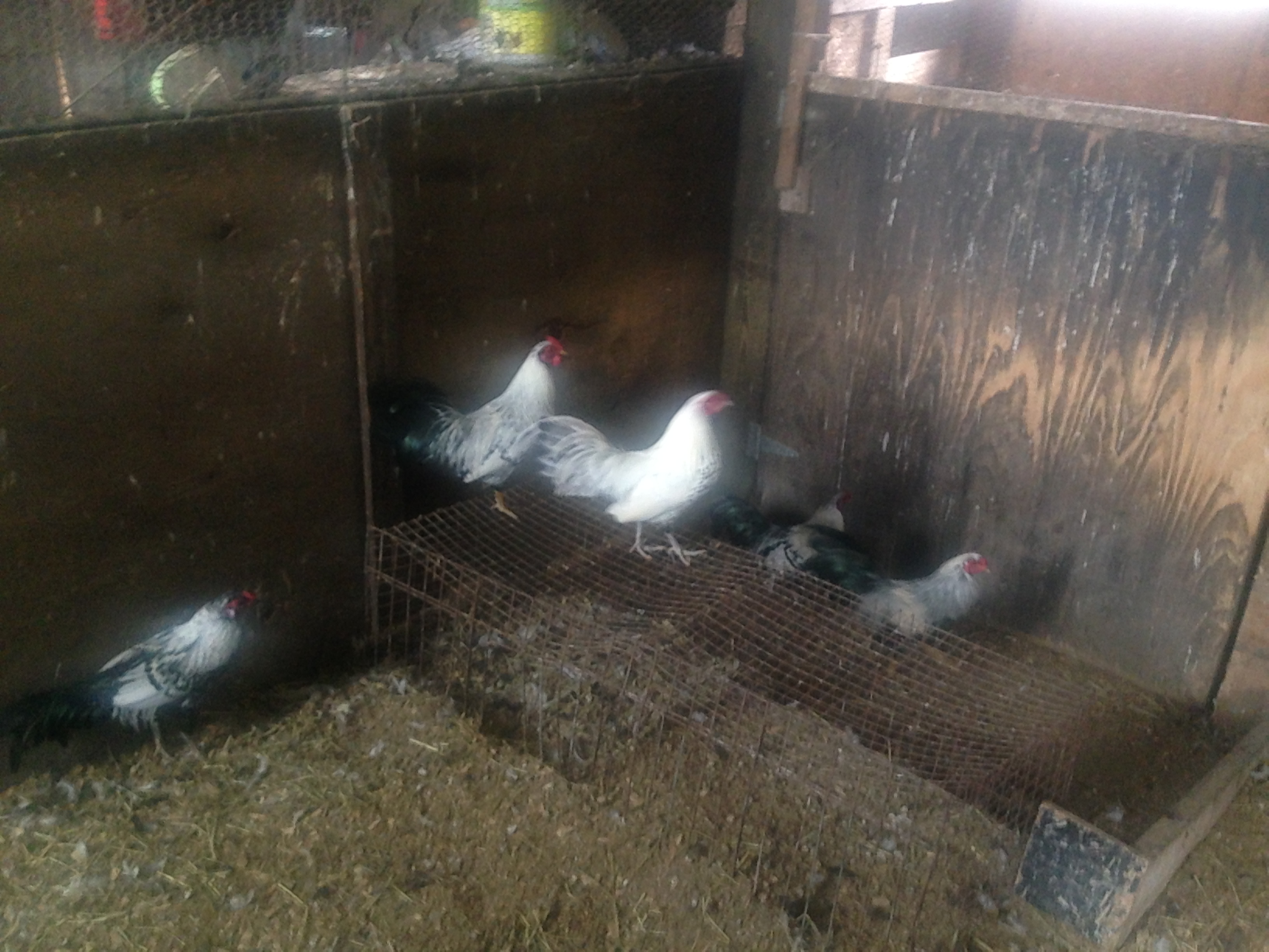 Colleen I have these 2016 Cockerals here in meat pen . 1/2 spangled Hamburgs 1/2 Chantcler bantams . Decent size some with combs & the whites with blk tails have the chanty comb no frostbite worries . We will be at wdstk Friday nite sale at 5:30 this coming week delivering some sold pigeons could bring one or 2 to decide . Going in freezer soon . No charge . Luck
