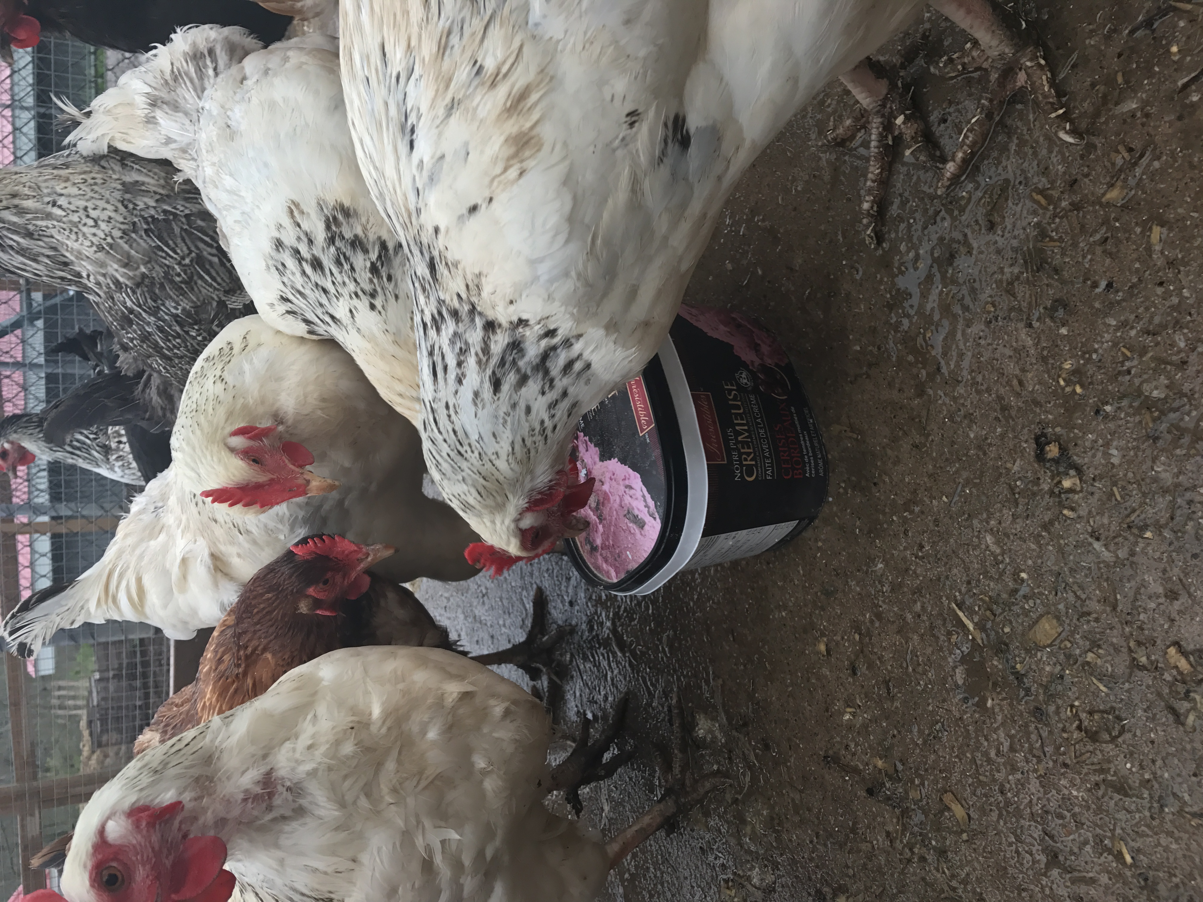 I took out my little Cochin banty for size comparison pic 2 and 3. Also an ice cream container for comparison