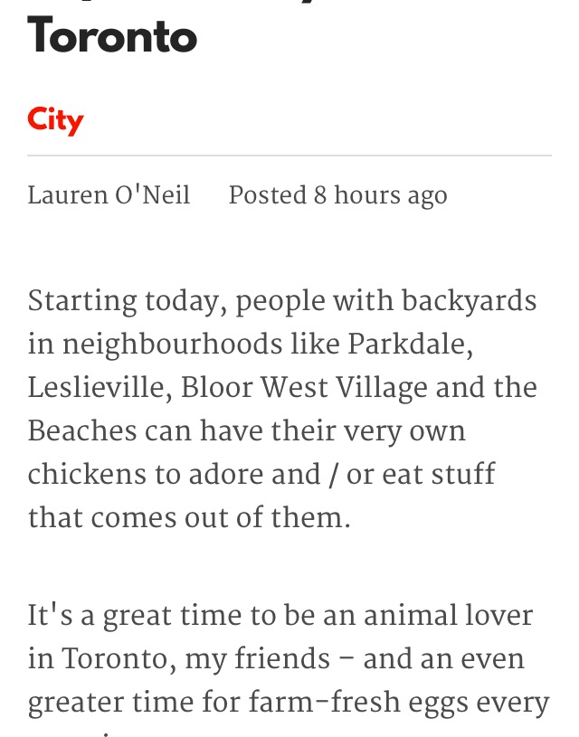 Re: Laying hens in Torontario