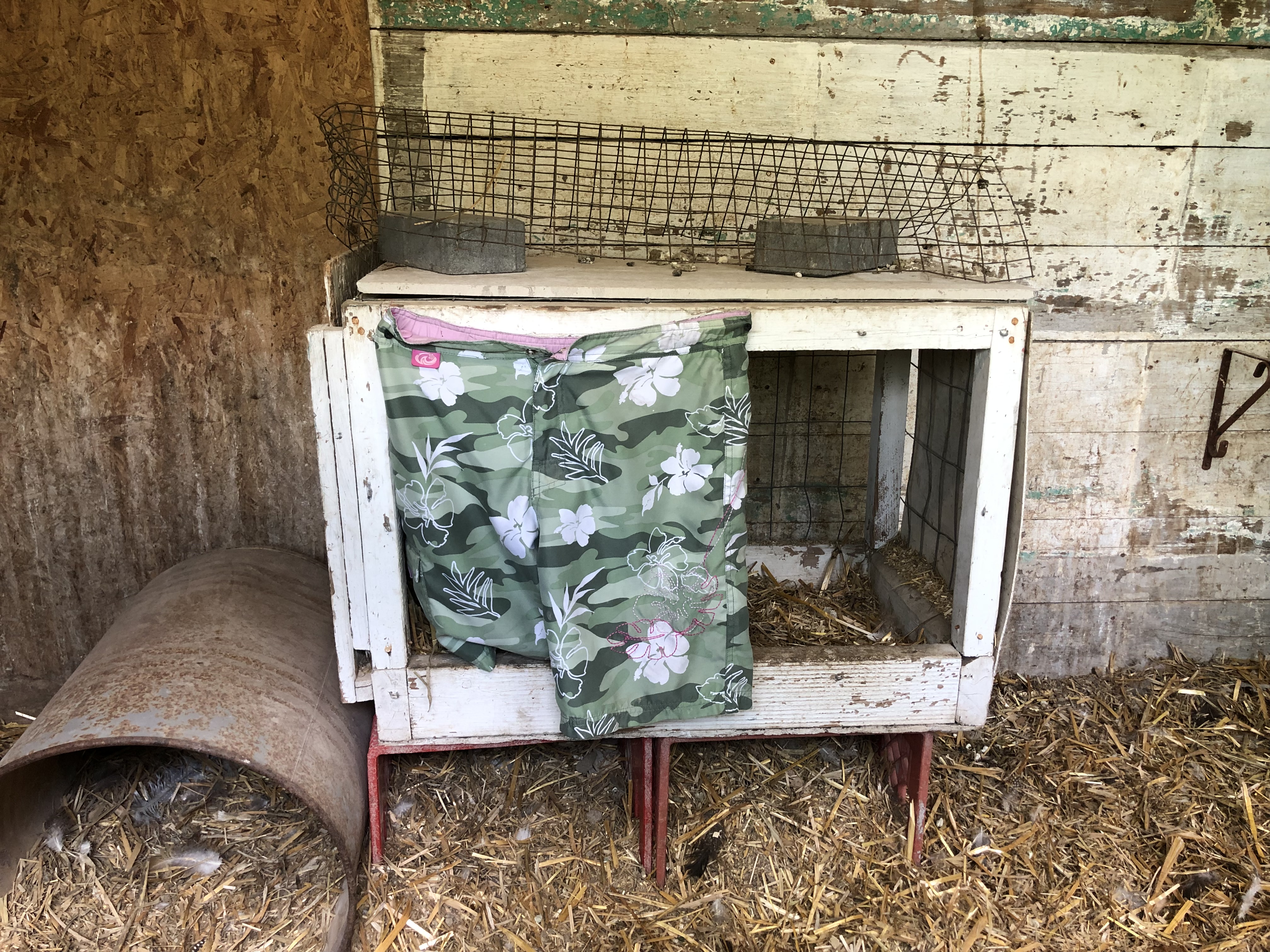 Wife tells me the hen is still laying, and i commented that was unlikely as she has been on the nest steady for two weeks. So i investigate and find several Guinea eggs under the Brahma. So my wife being curious monitors the situation closely. She observes the Guinea hen enter the double wide nest in the morning to lay an egg, she exits the nest after laying the egg, and promptly the Brahma hen pulls the egg in to her nest. Meanwhile the Guinea is outside basking in the sun enjoying life...