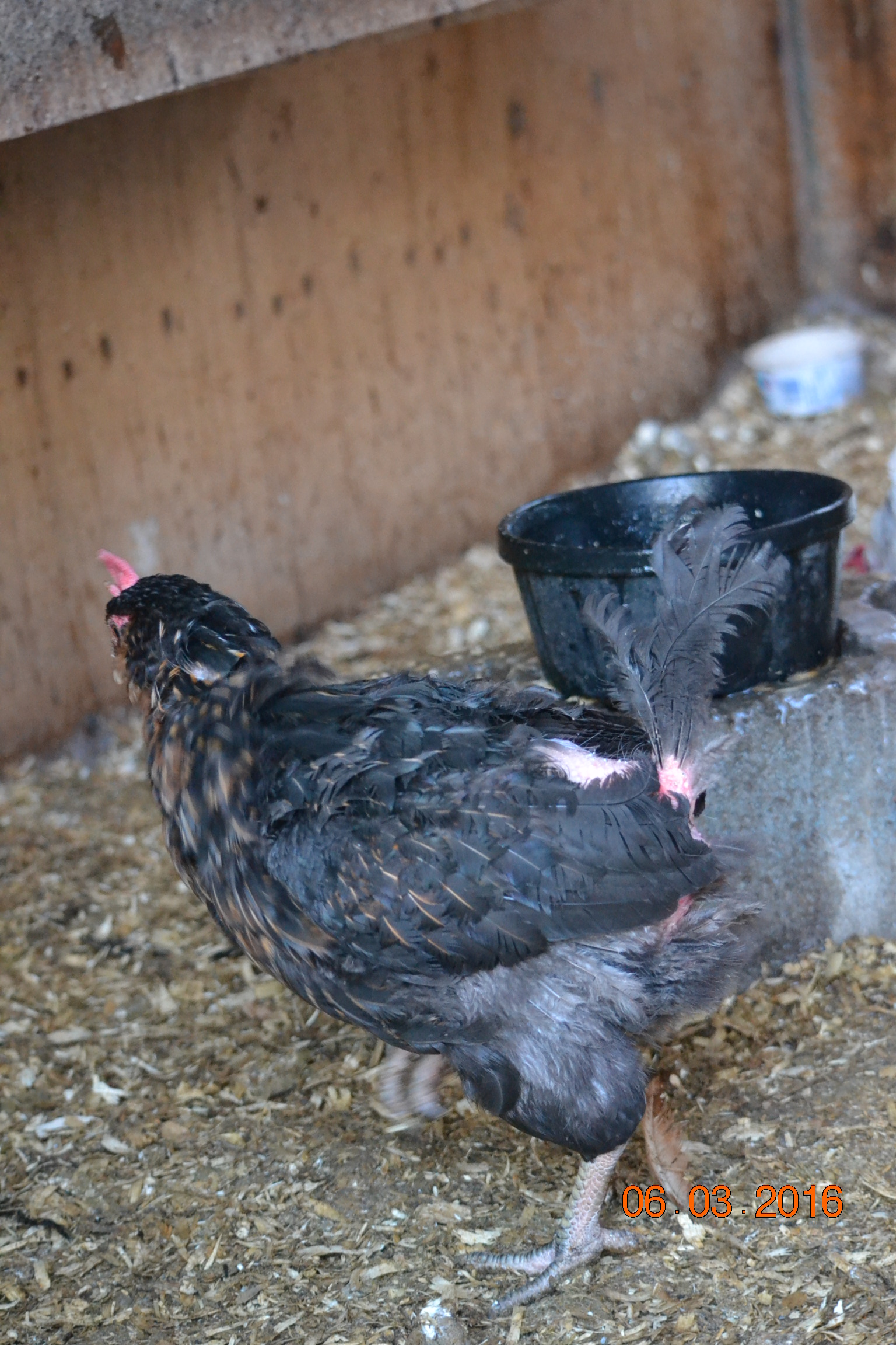Their naked skin does not look as red as it did, maybe because I never put any more Stop Pick on it. Their feathers are staring to fill in so they are looking less naked. I have been feeding them BOSS and cat food to boost the protein.