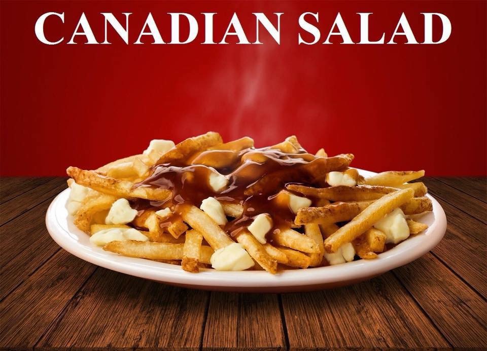 Poutine with cold-packed moose meat. Oh, yeah. Smells like canned dog food, but tastes like heaven. Can't get much more Canadian than that!