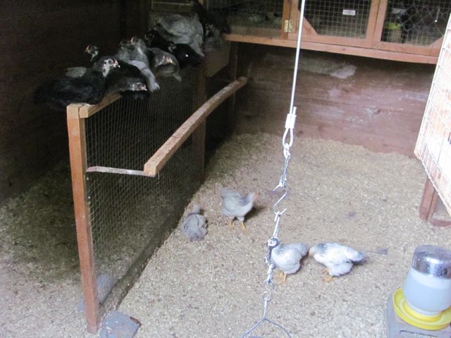 Musical chicks here, 5 weeks old from the brooder on the floor, 10 days old from the basement in to the brooder.