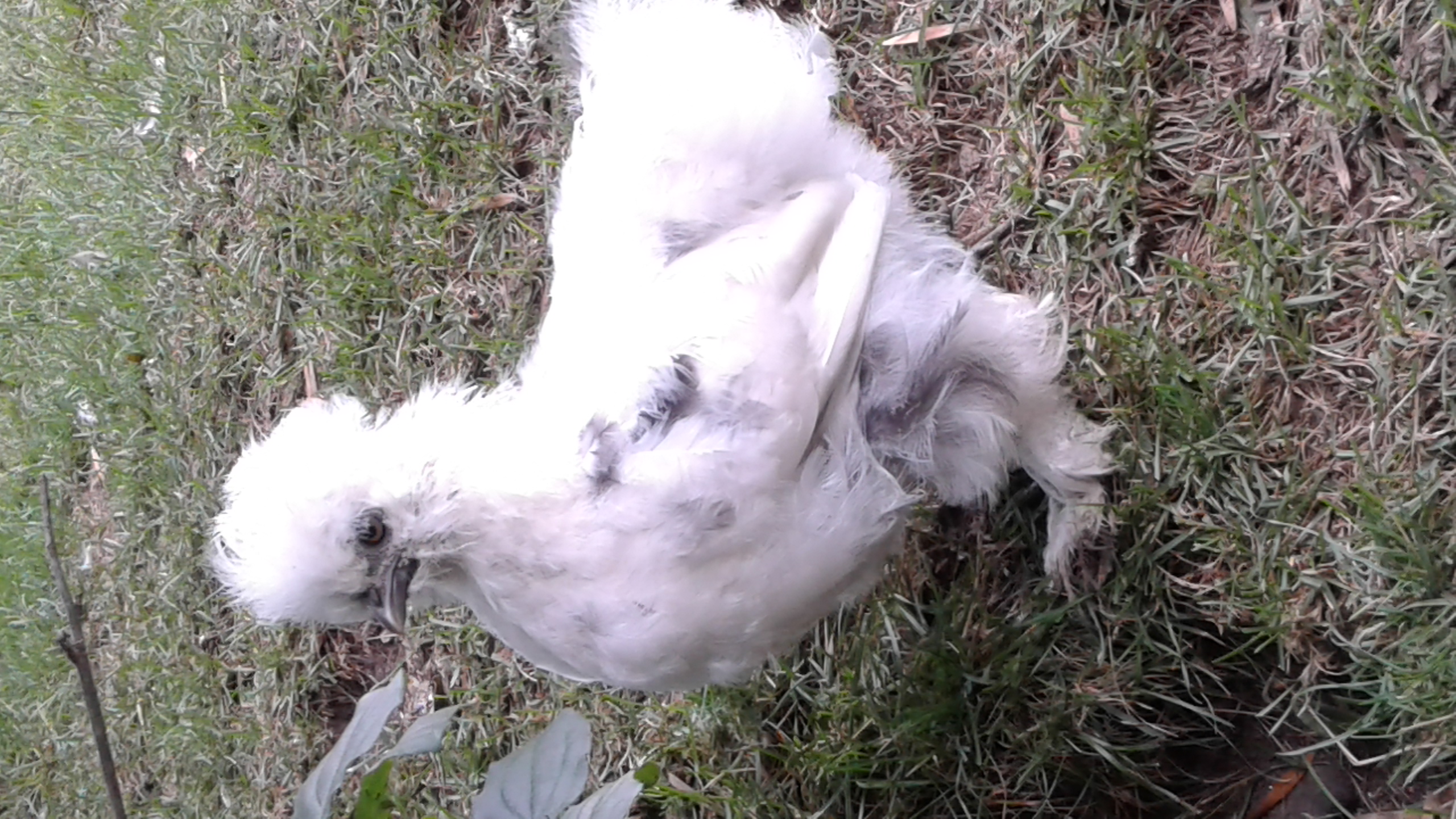This is Lancelot, white frizzle silkie