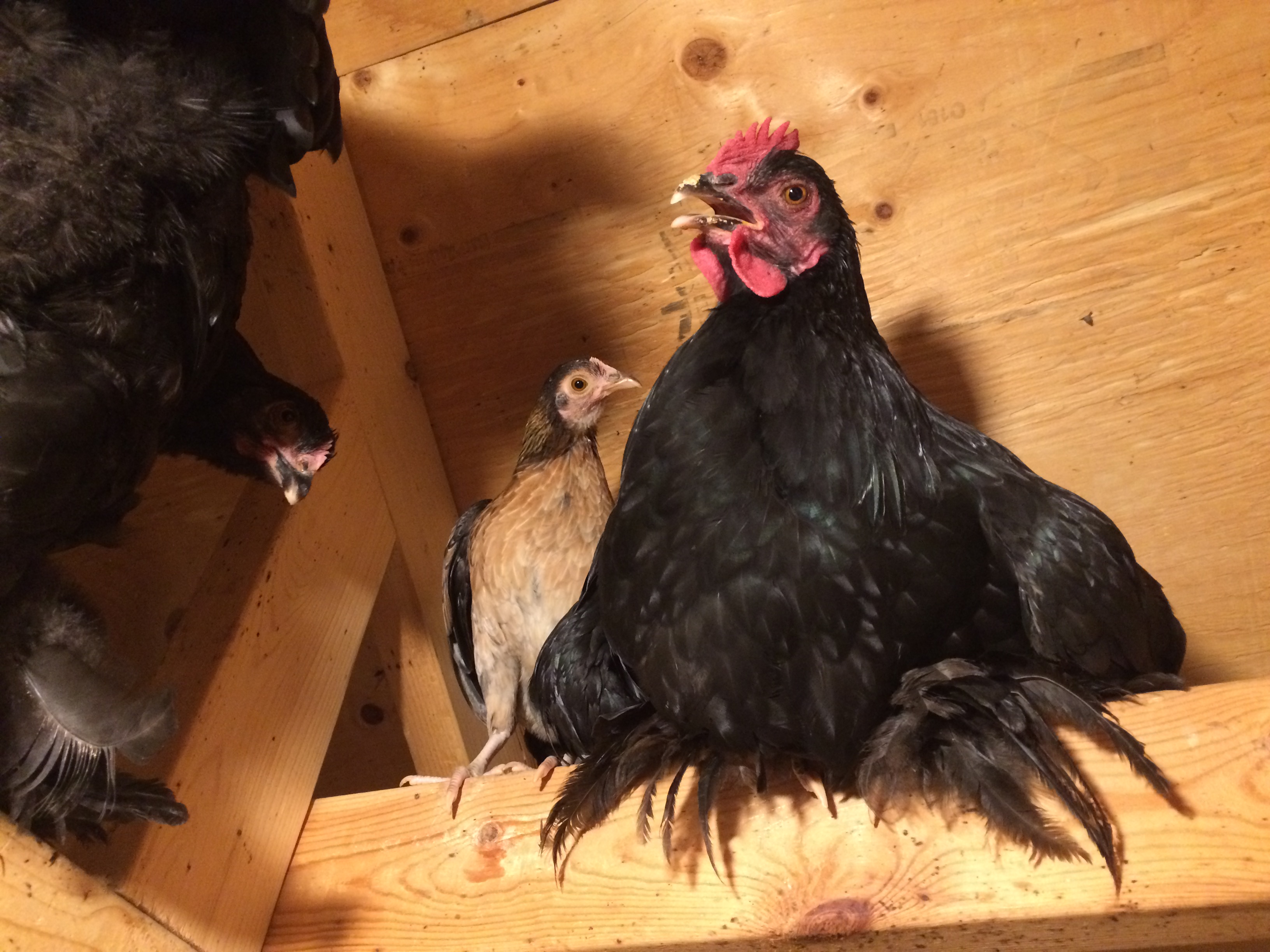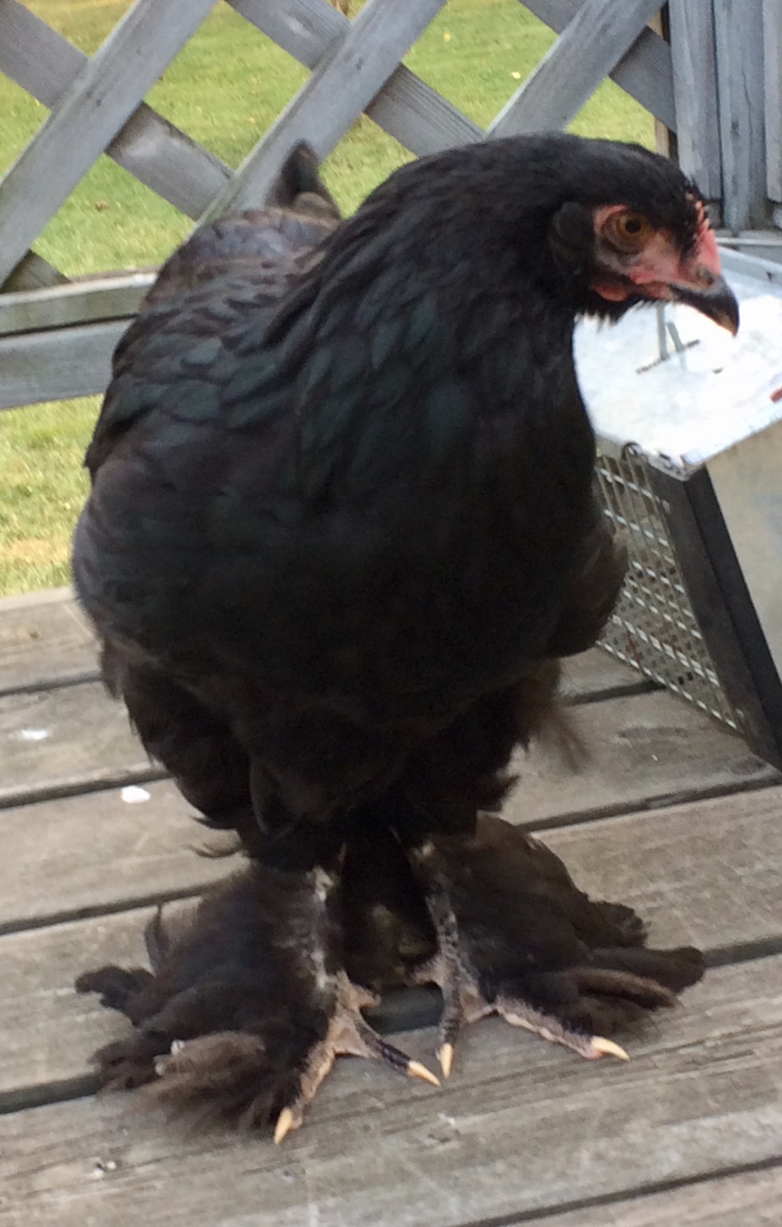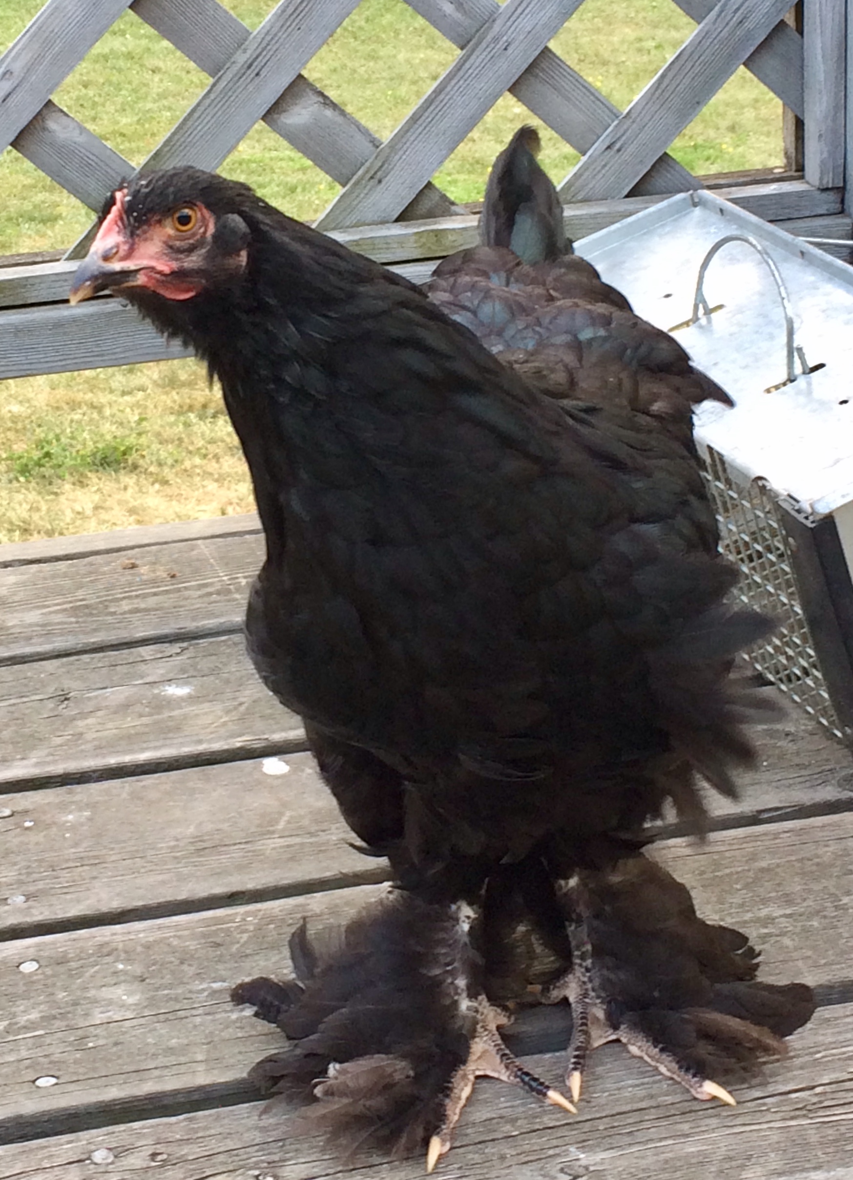 Ellie-May is the chick that had the limp/hernia/whatever it was. I’ve realized recently that I think there still may be something wrong with her. She still walks knock-kneed. Some of that may be an optical illusion because of those huge foot feathers. She’s clumsy and thats typical for a feather foot at her age. But her body is TINY! There’s nothing to her. Where her breast should be is concave and her breast bone is very sharp. She eats well although I’ve never felt a huge crop on her. Her poop seems normal. She keeps up with everyone. Doesn’t get bullied. Her feathers appear healthy. Will just keep an eye for now and try to sneak her an egg or some tuna on the side and see. Any other suggestions?