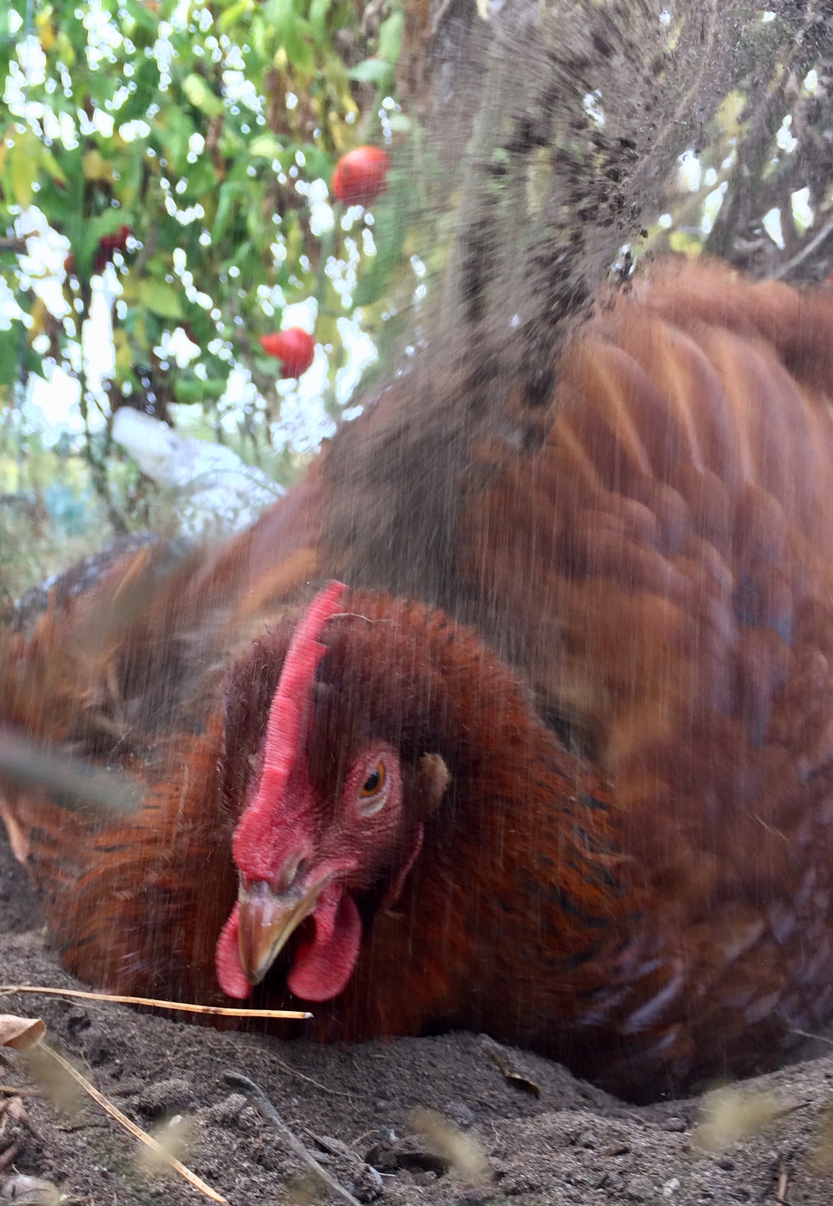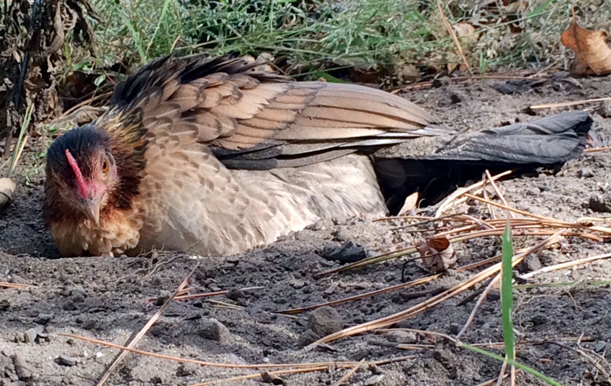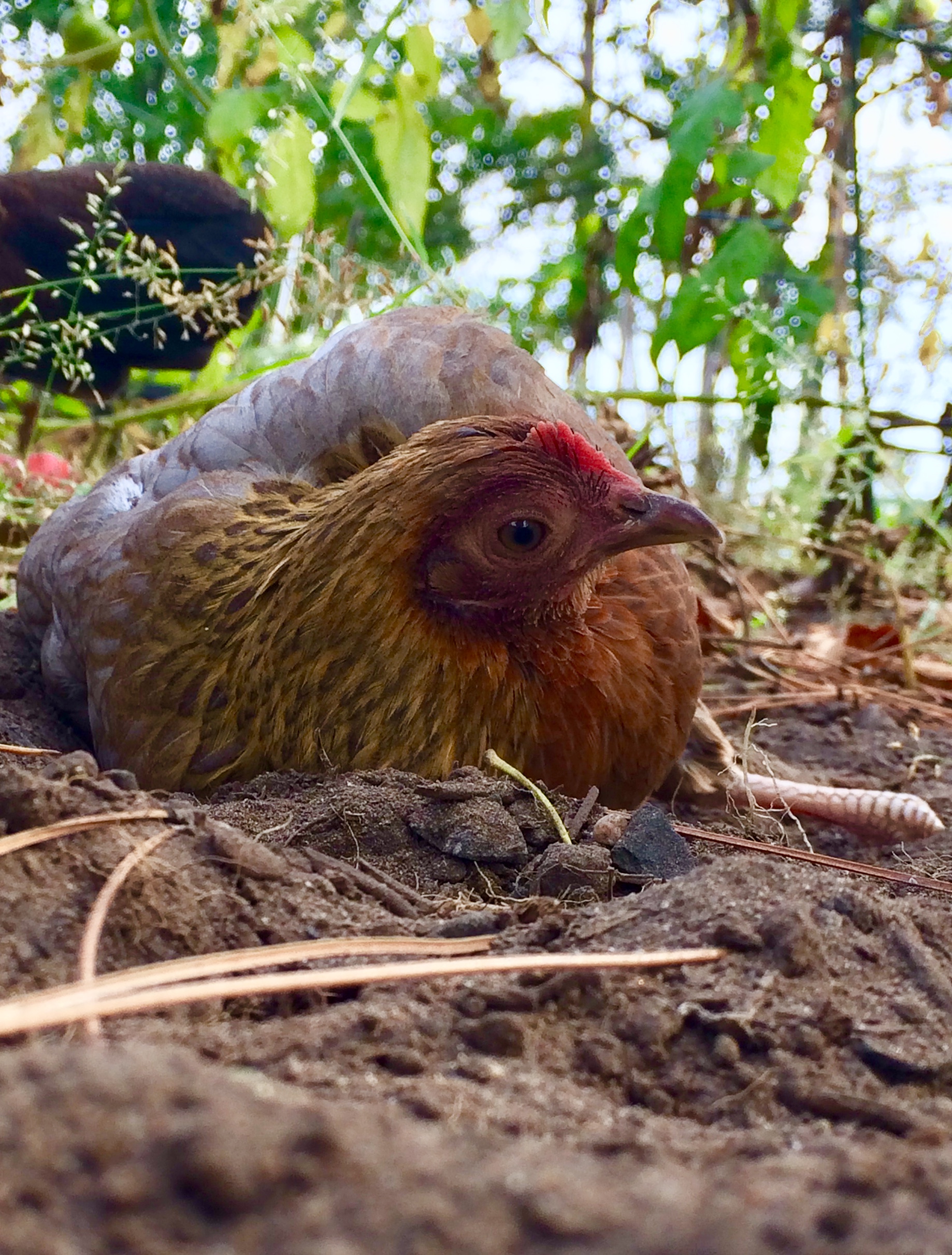 Nice look group! Mine do the exact same thing as soon as I take down the fences....cause of course, they have no where else to dust bath....lol