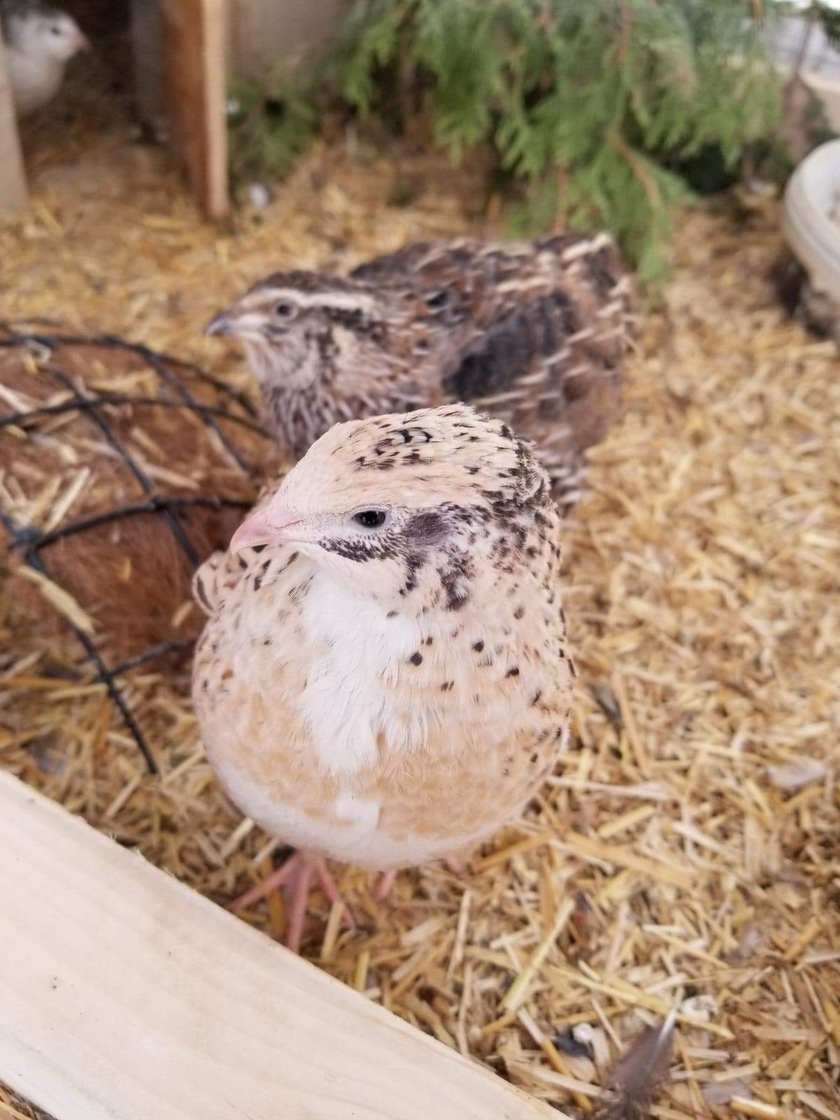 Just wanted to share a picture of one of two of our Golden Italian/ Tuxedo Coturnix quail hens.