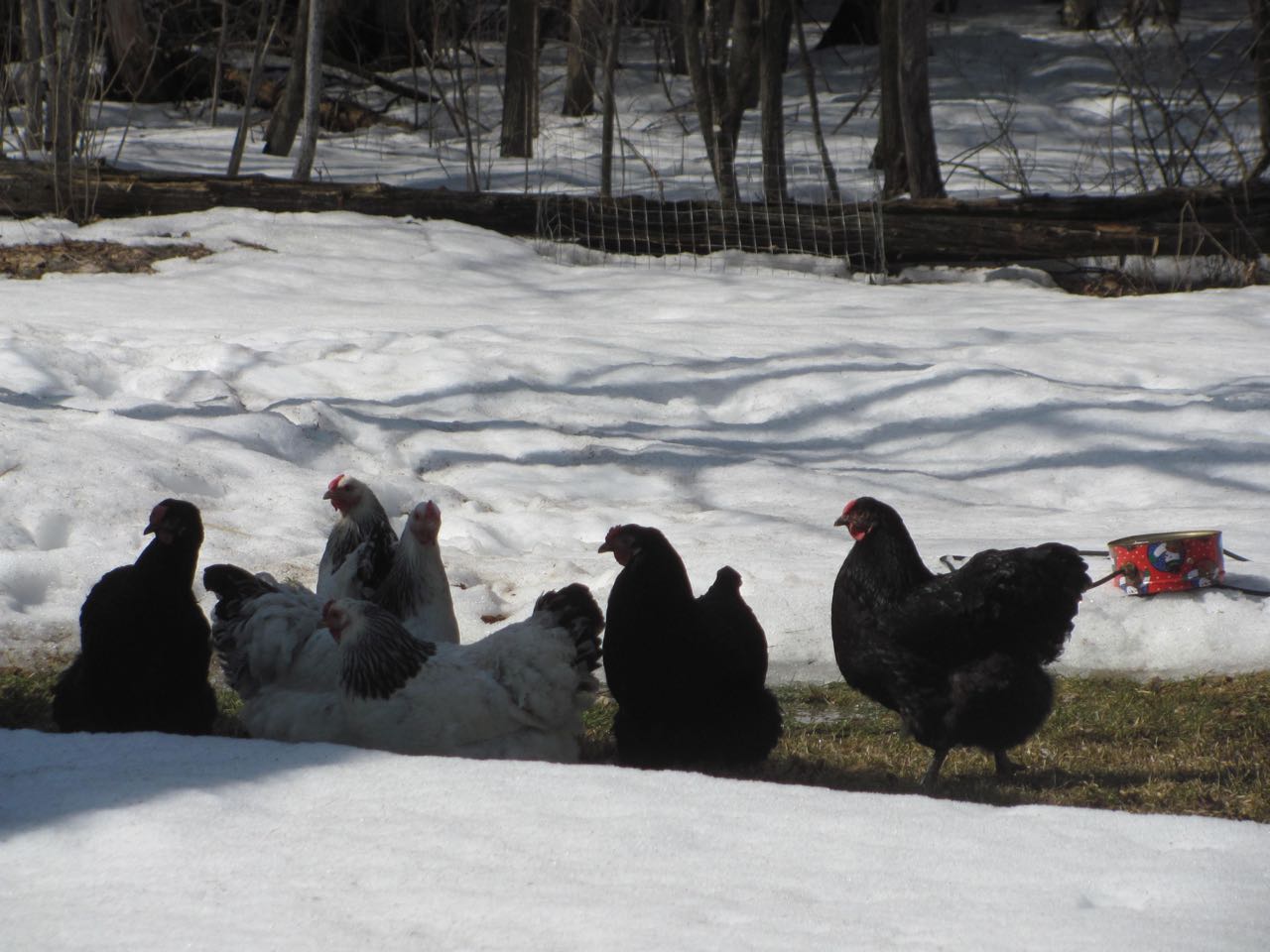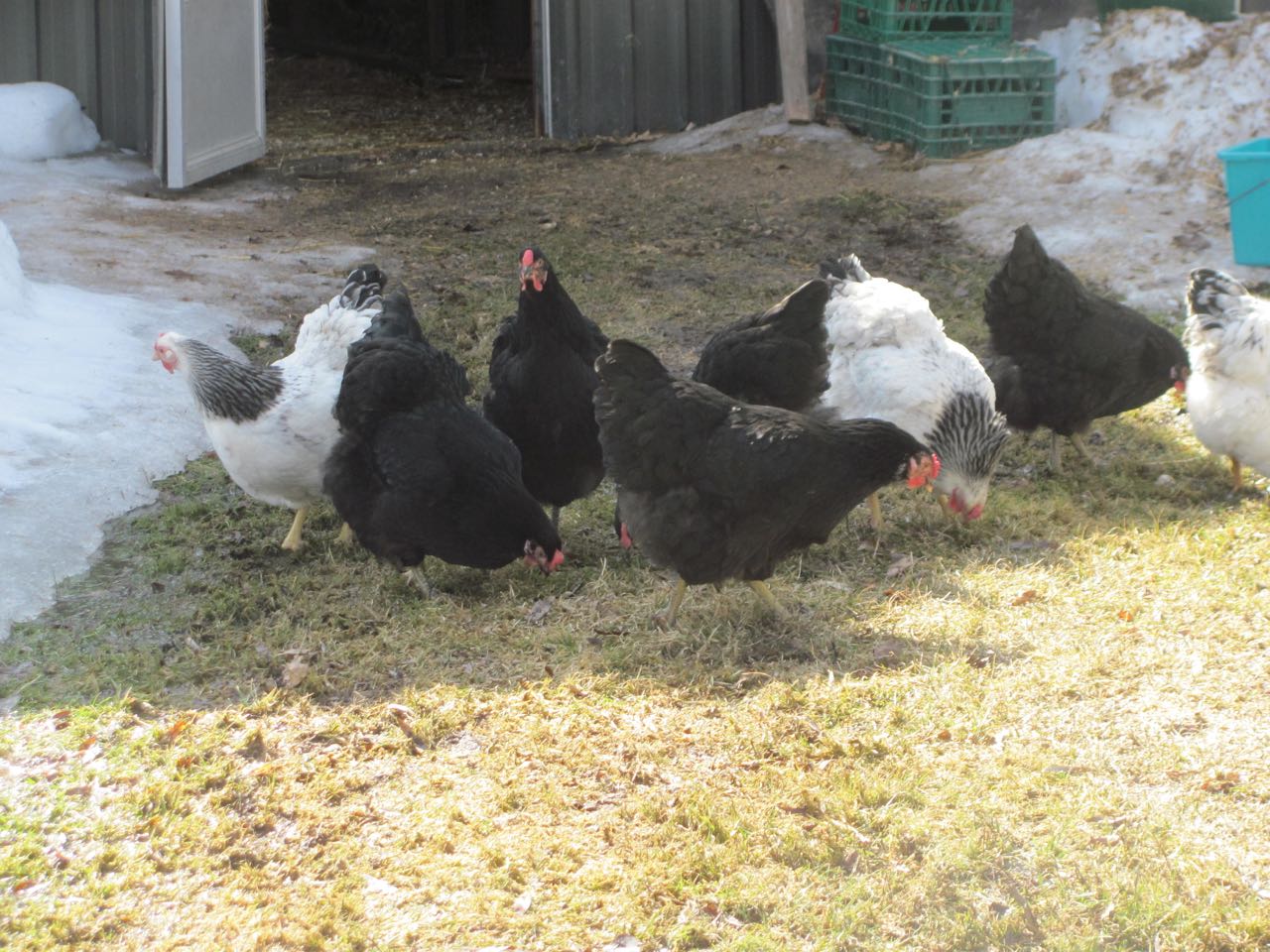 Sorry the pictures are not very good but @windwalkingwolf please note the Black pullet on right.... first time outside, they were a bit preoccupied and wouldn't cooperate
