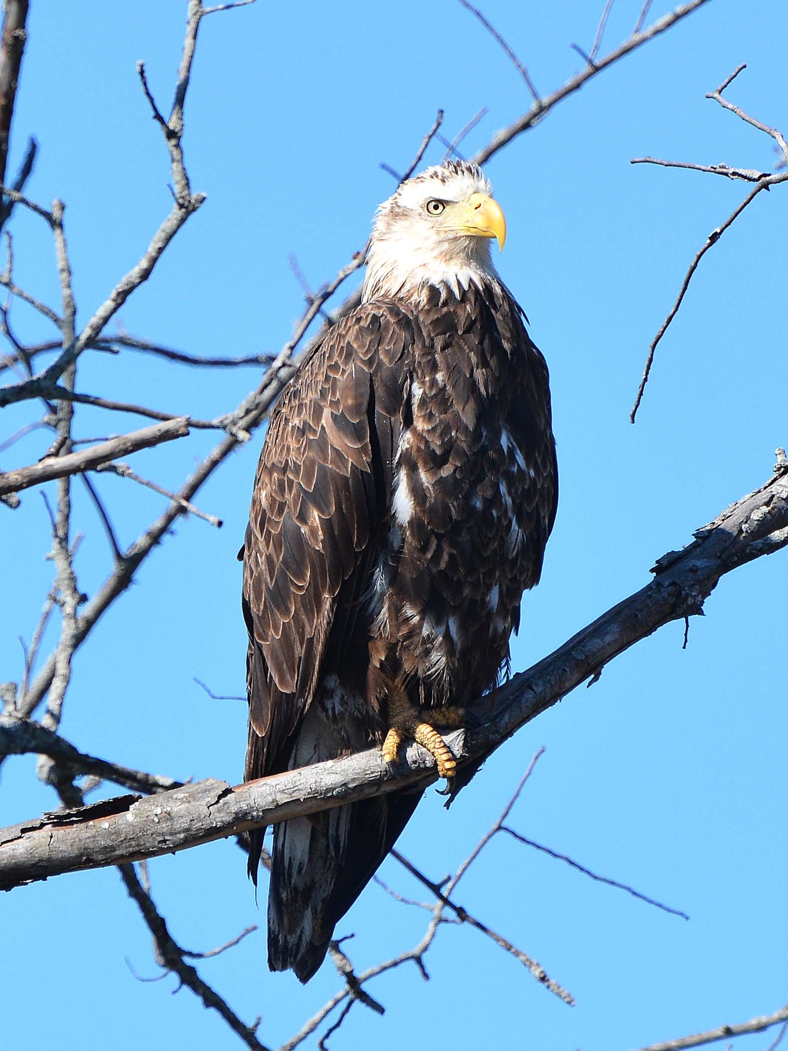 Mumsy started to hatch yesterday ad by the time we got home from canoeing this am she was ready to bring them out! She hatched 9/10, 2 are weaker but I think they were later hatchers. They are under the lmp and I'lll slip them back under tonight. anoeing we saw Black terns on mgration north, some arctic terns and this fella watching from a tree. Immature Bald Eagle!