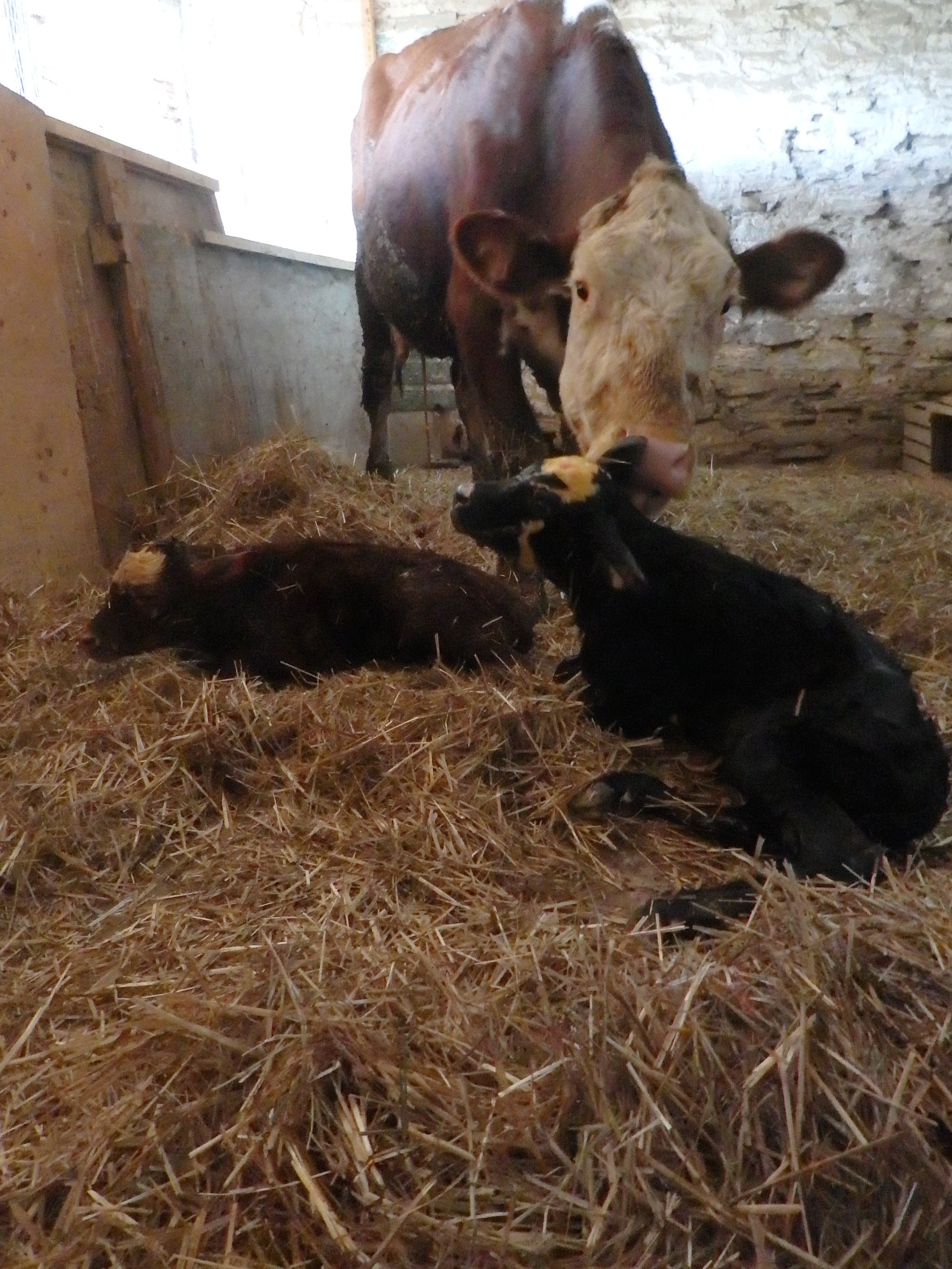 Hahaha, so much for downsizing, Congratulations!!! They are really beautiful, and stocky chunky cows and calves. I'd love to chat with you sometime about picking breeders!