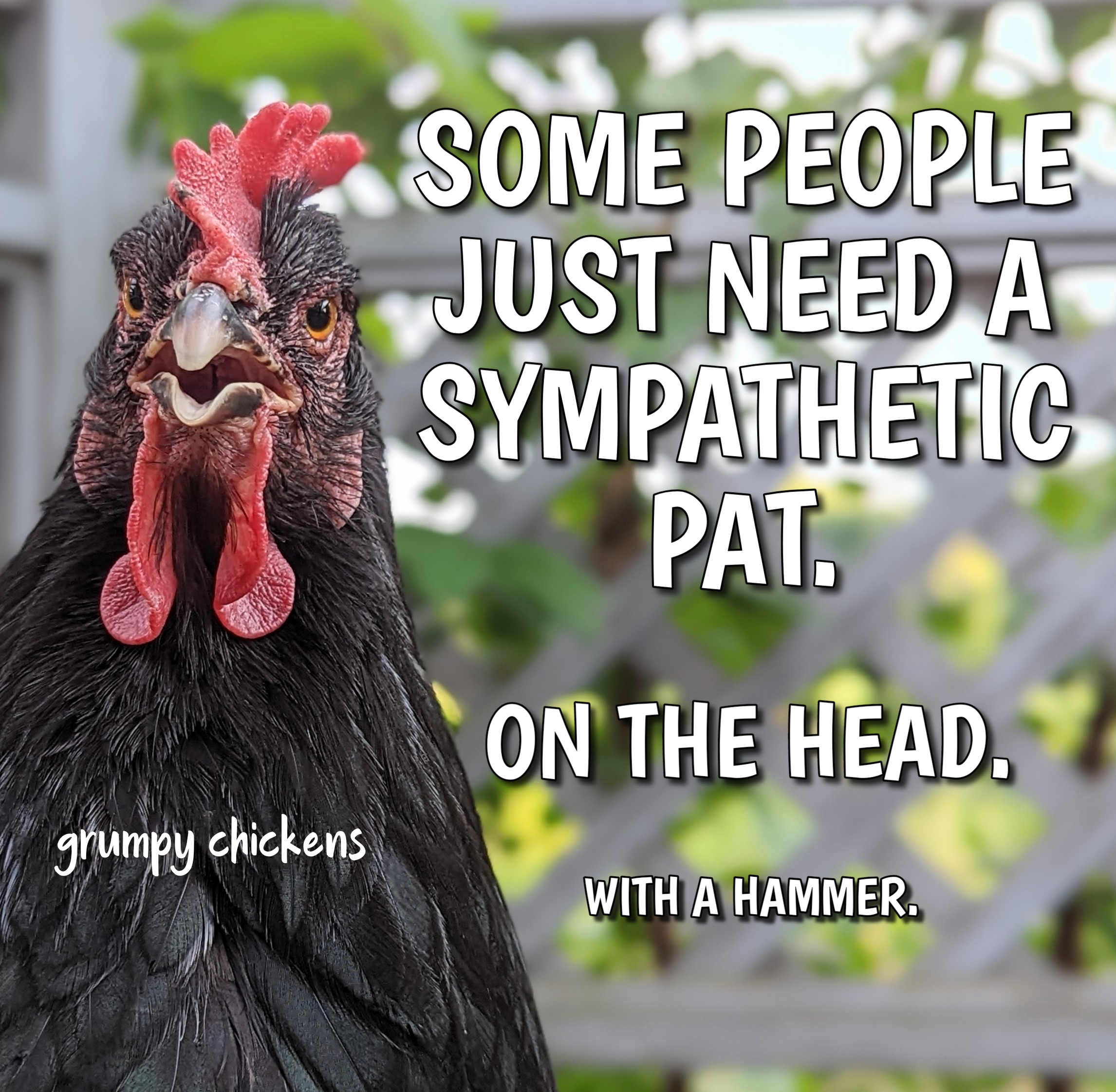 Well the hammer post got me thrown in Facebook jail for 72 hours 🙄. Grumpy Chickens are officially silenced. Someone reported it and apparently it goes against community standards. I think that probably means that most things I post goes against community standards!