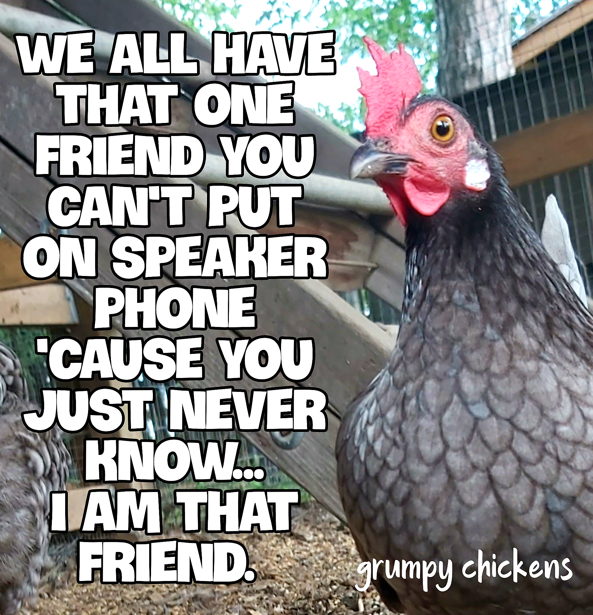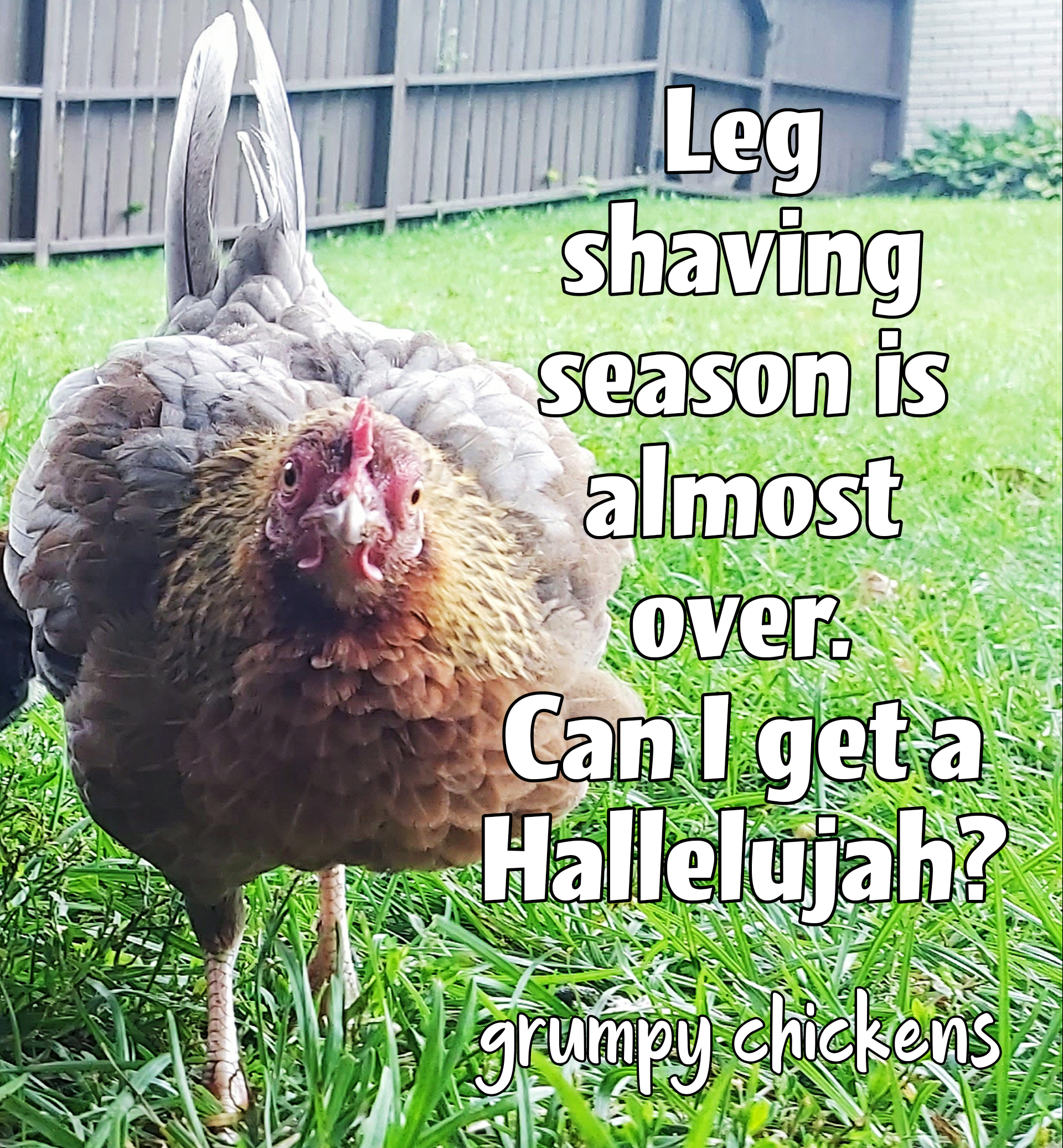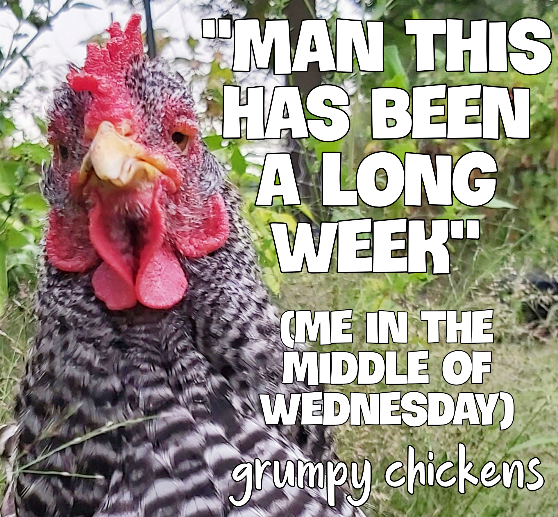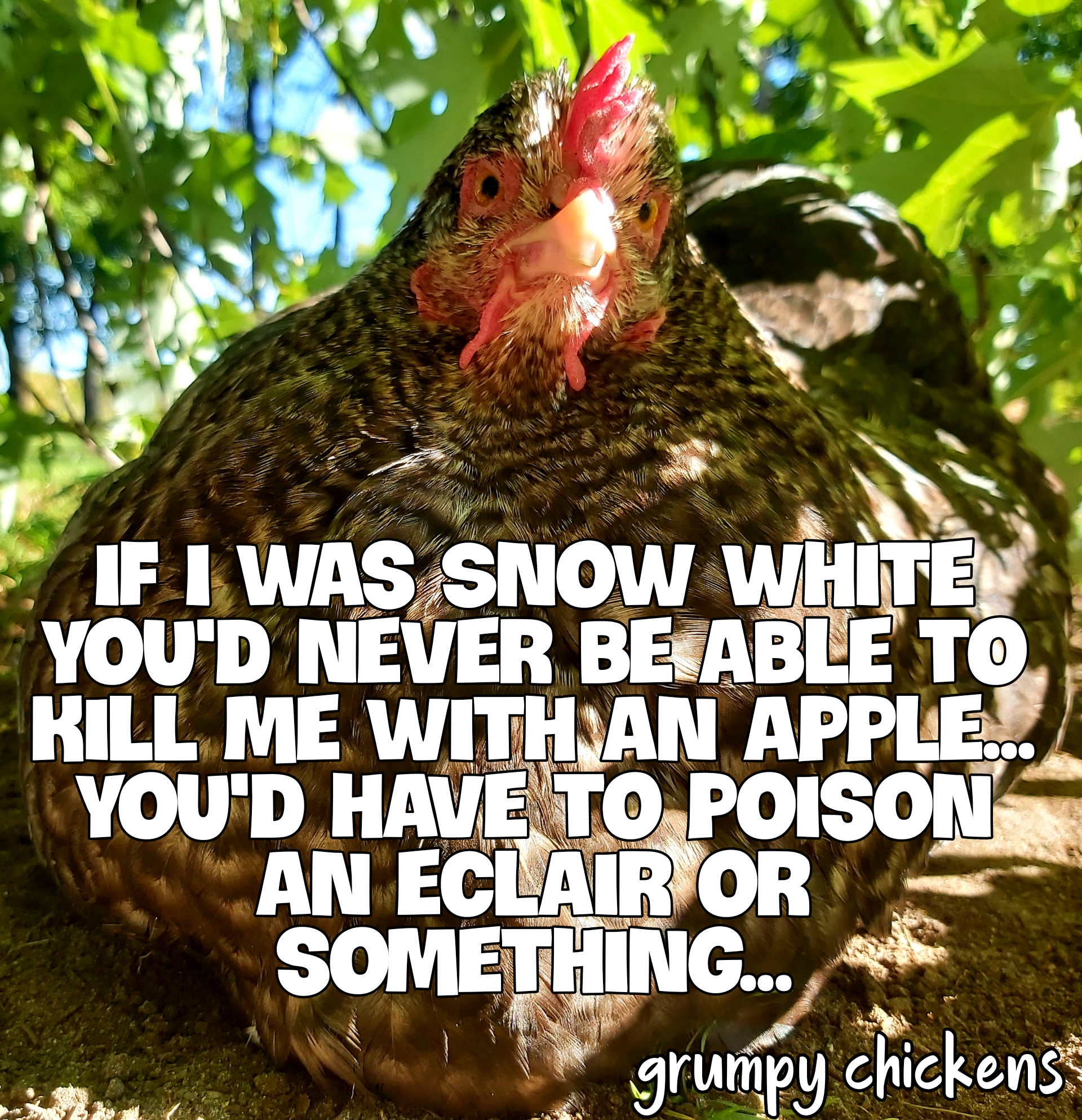 I get surprised sometimes with the expression I catch in a picture. That's where I came up with the name grumpy chickens-because half the time they look like they're telling me off!