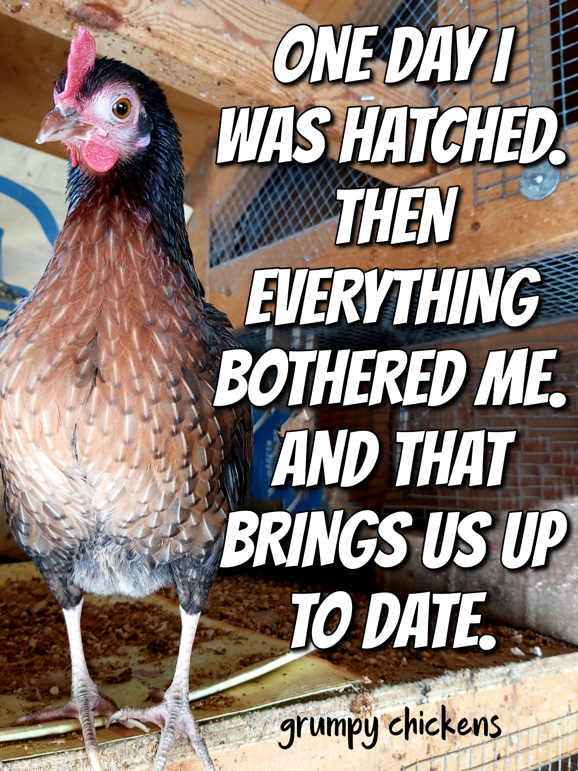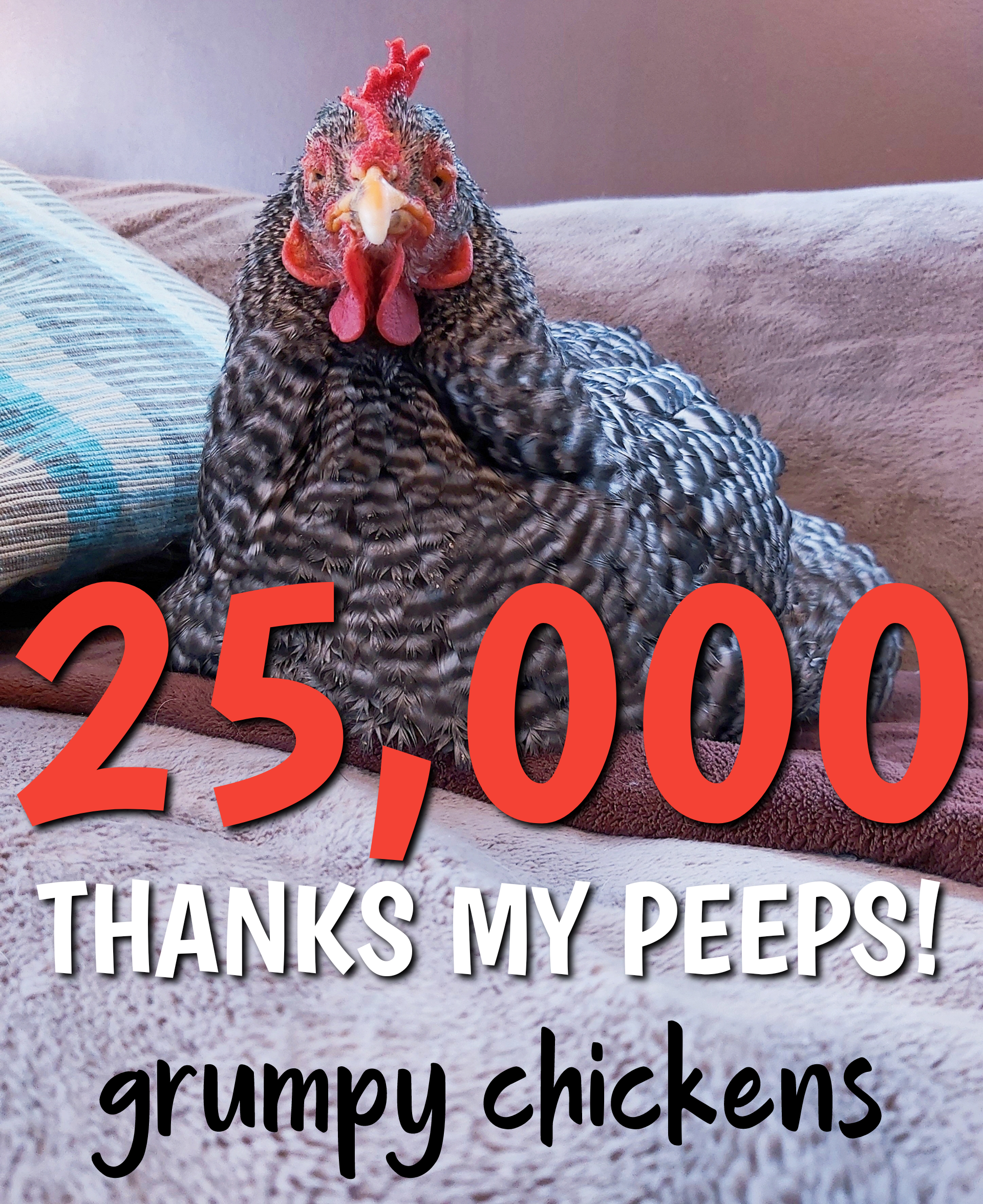 Grumpy Chickens Facebook just passed 25,000 followers. It was a photo op for my old girl Miss Kitty.