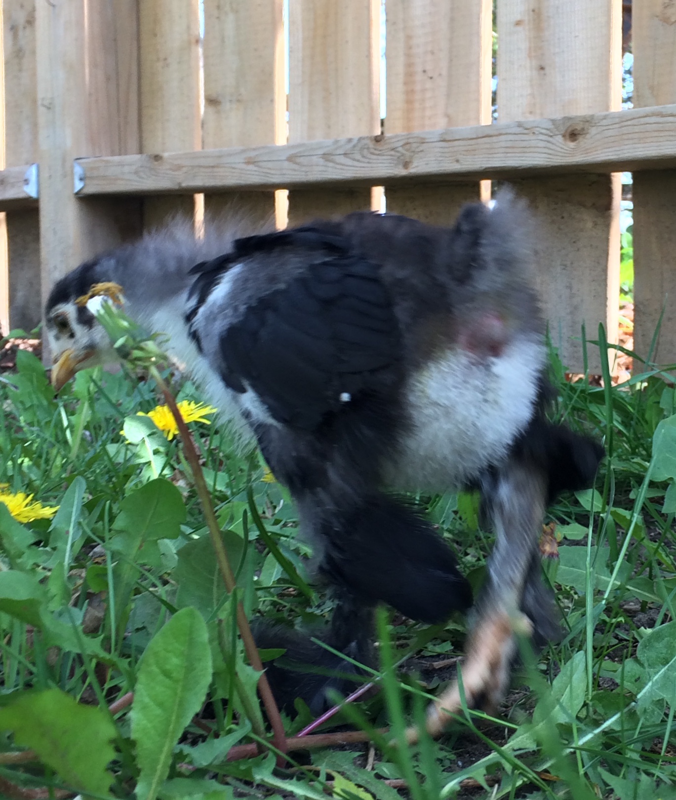 Here’s my latest baldy chick. One of the tweedles. One is clearly slower at feather growing than the other.