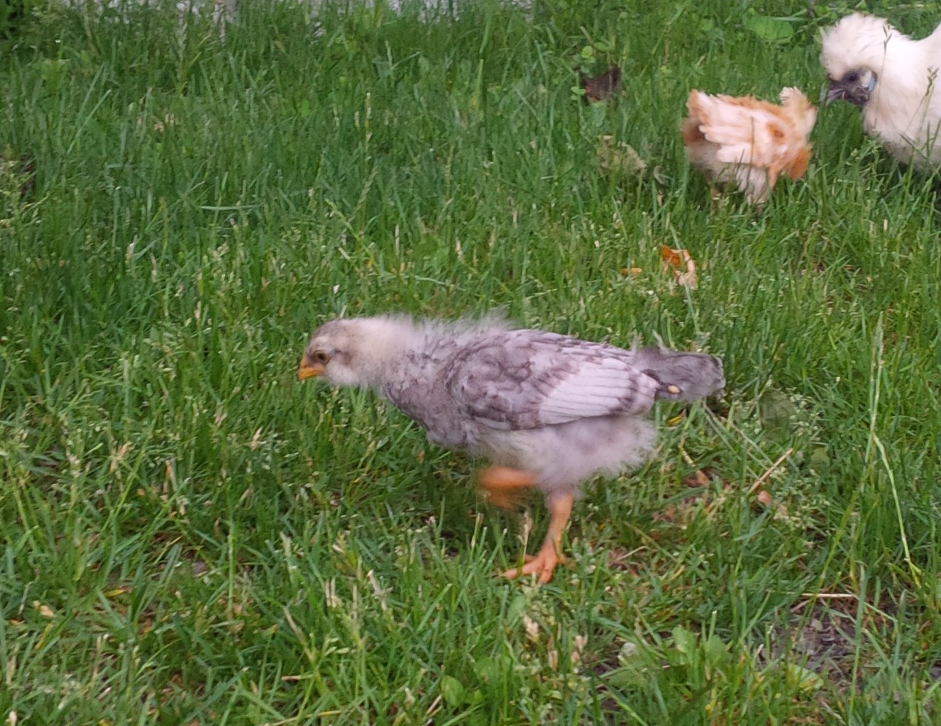 :doh: Kenya - you're right! So totally missed the obvious because I was so focused on trying to figure out the gender. Now I don't know what breeds they are at all! The thing is, the person who I am renting them from had a mixed bunch of day-olds from her incubator hatch all living in the same brooder, and there were lots of everything, including quail. I must have not listened carefully enough to the names of the breeds these two were. So, the dark one could just as easily be a marans or cochin something entirely different. She has quite a few breeds, and this one could even have been an oopsie.