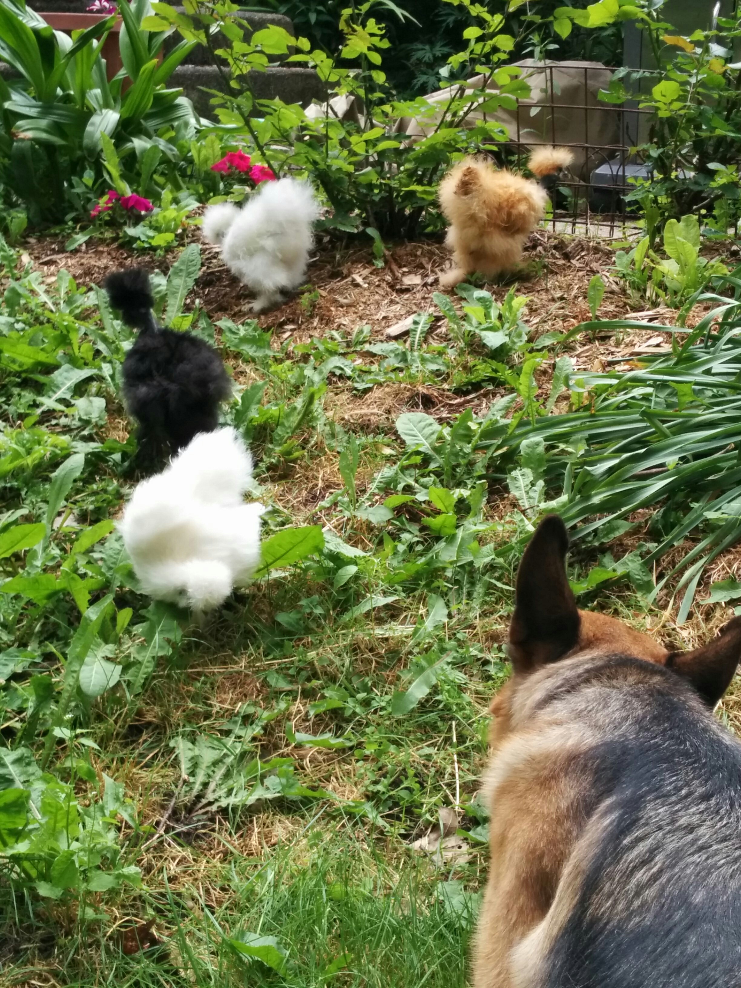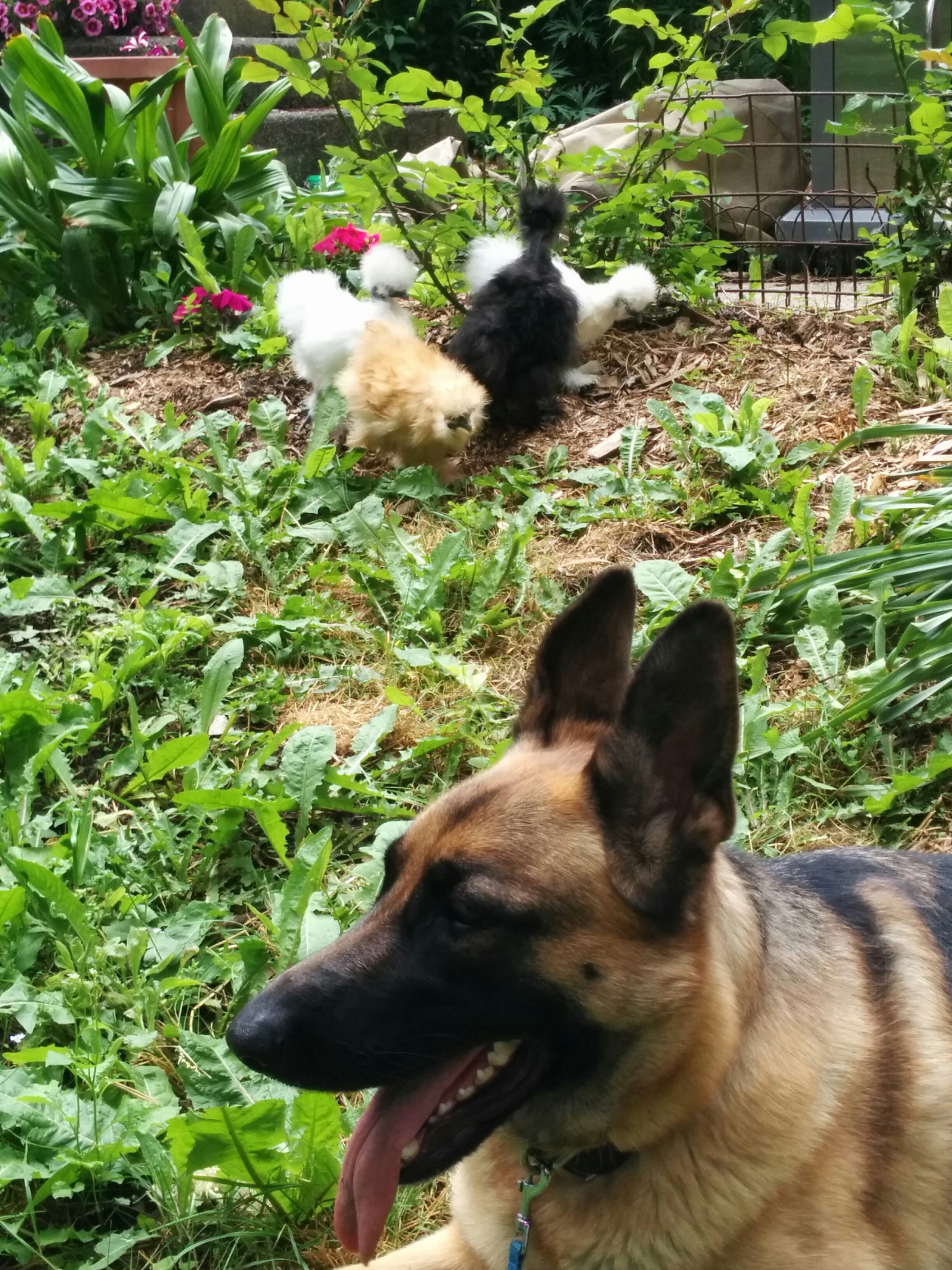 I'm trying to teach this girl to look after the little ones when they are out, she's having trouble with the concept of keeping them safe and if they wander too far goes after them and puts her foot on them. I have told her she is their guardian not their Squasher.