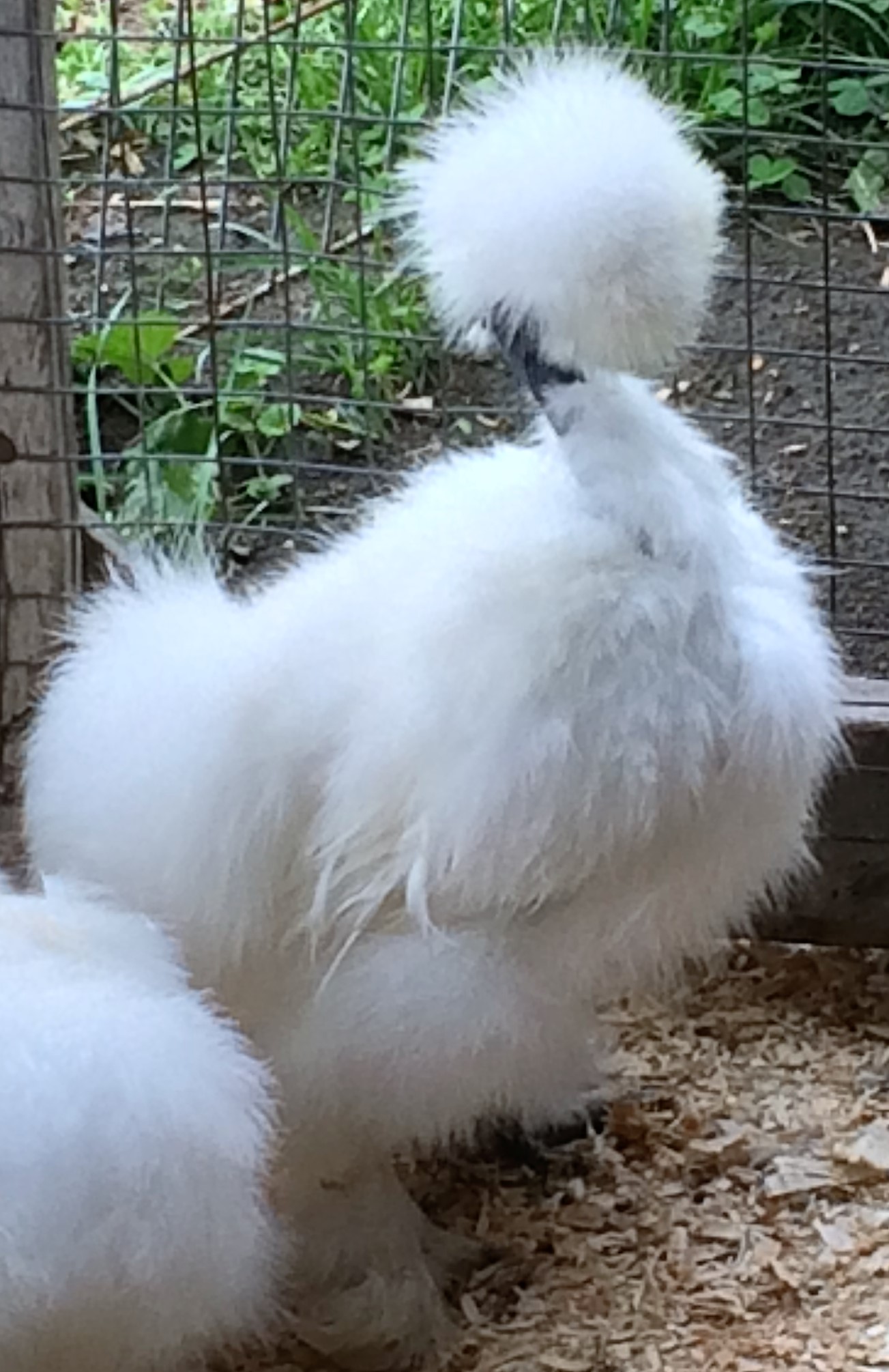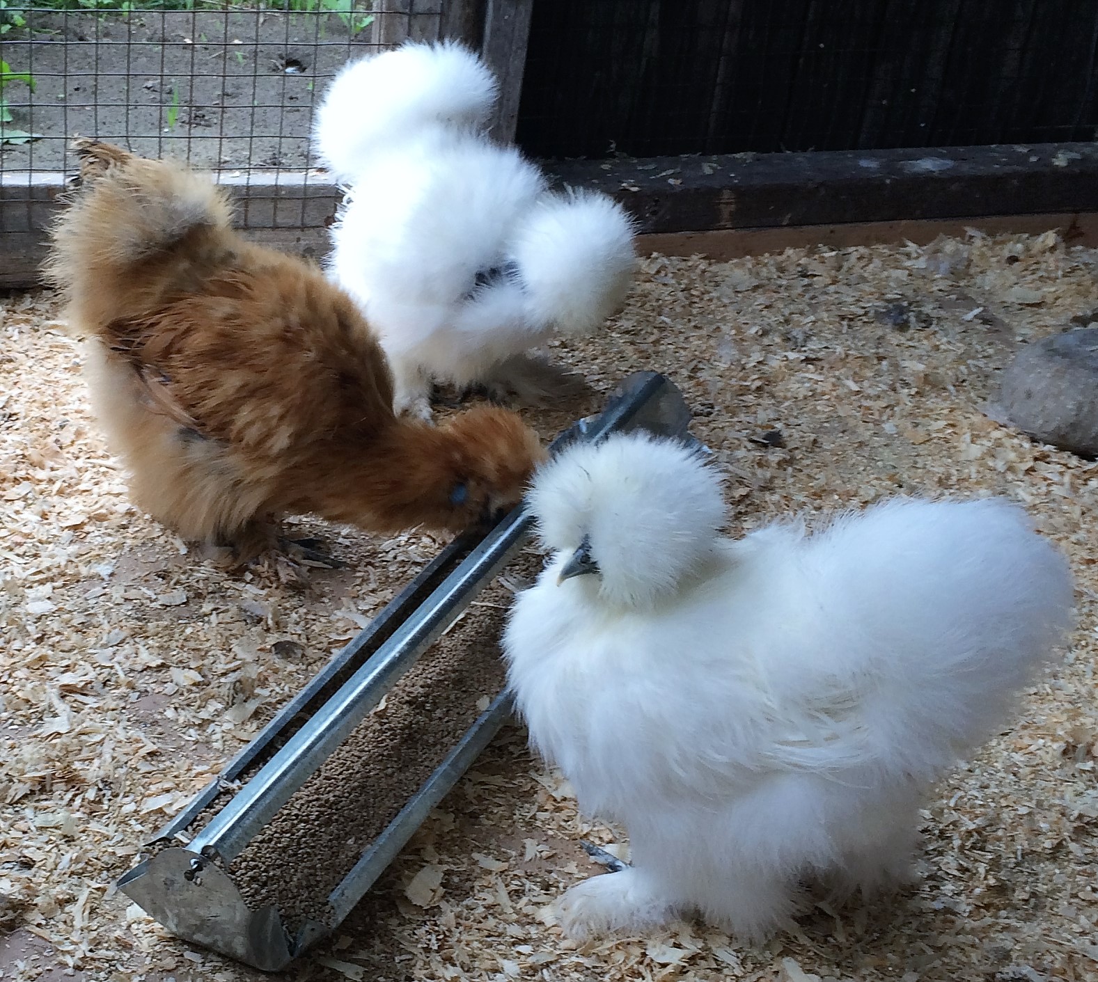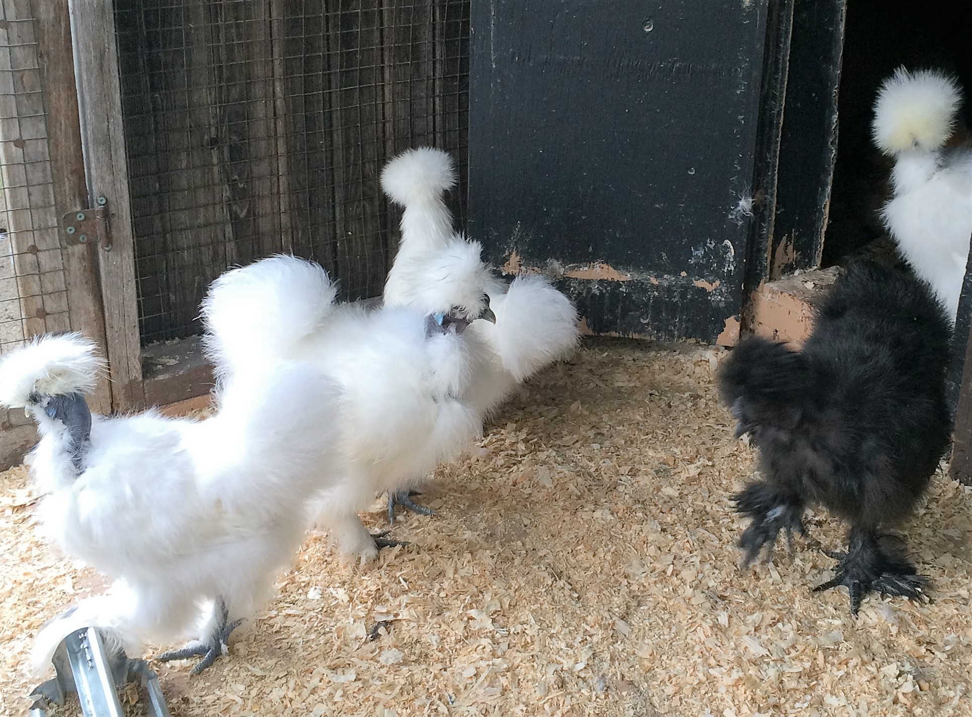 The Showgirl is standing beside the buff silkie - top of the pic