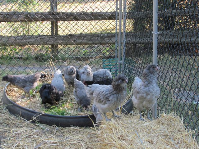 For Ameraucanas I have rigged up a giant dish out of landscape edging... Wyandottes get a buffet of choose your own goodies..