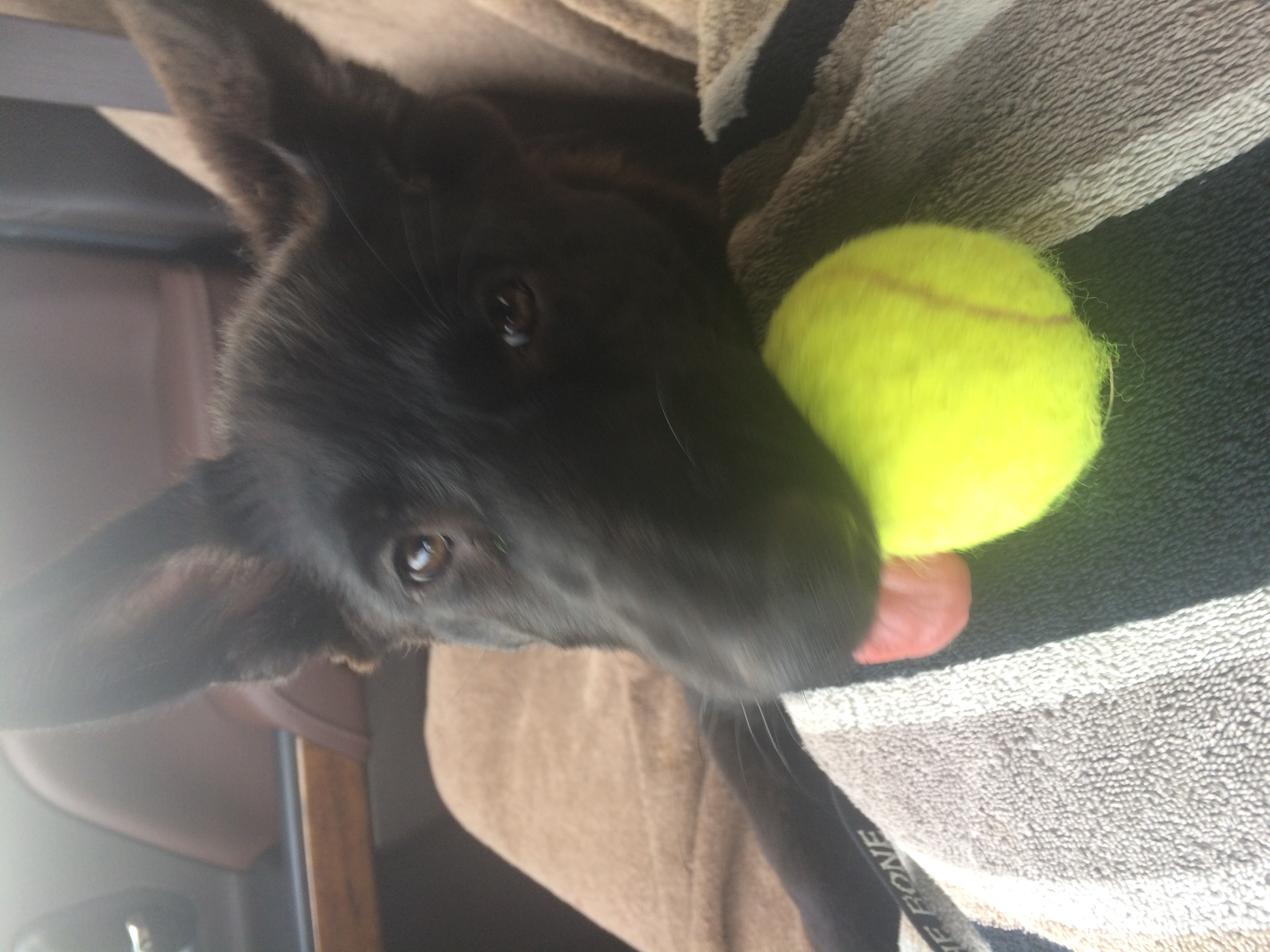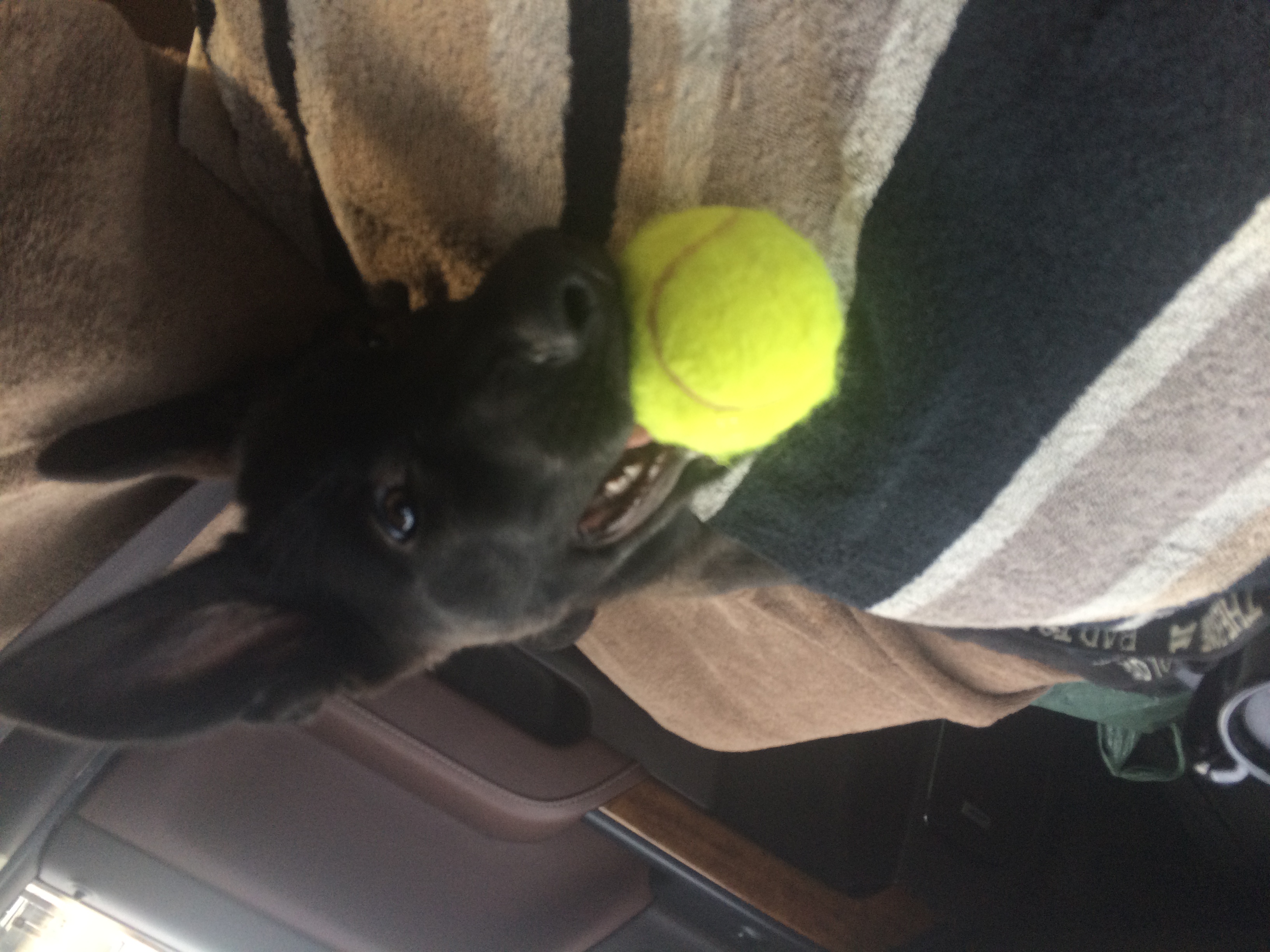Her ball even comes for the car ride. She wants to share it, but look only, but have a little touch, no changed her mind HAHAHA.