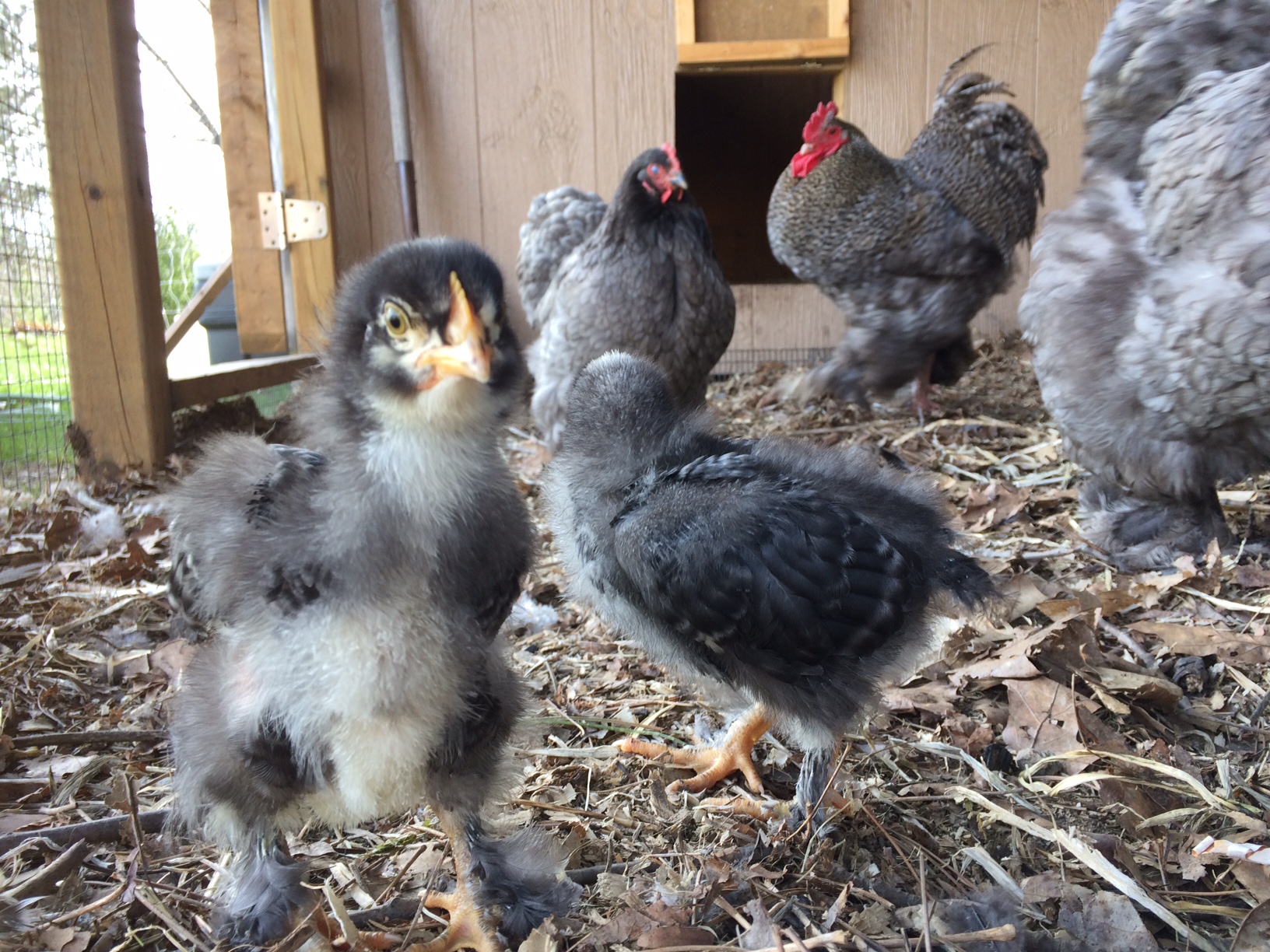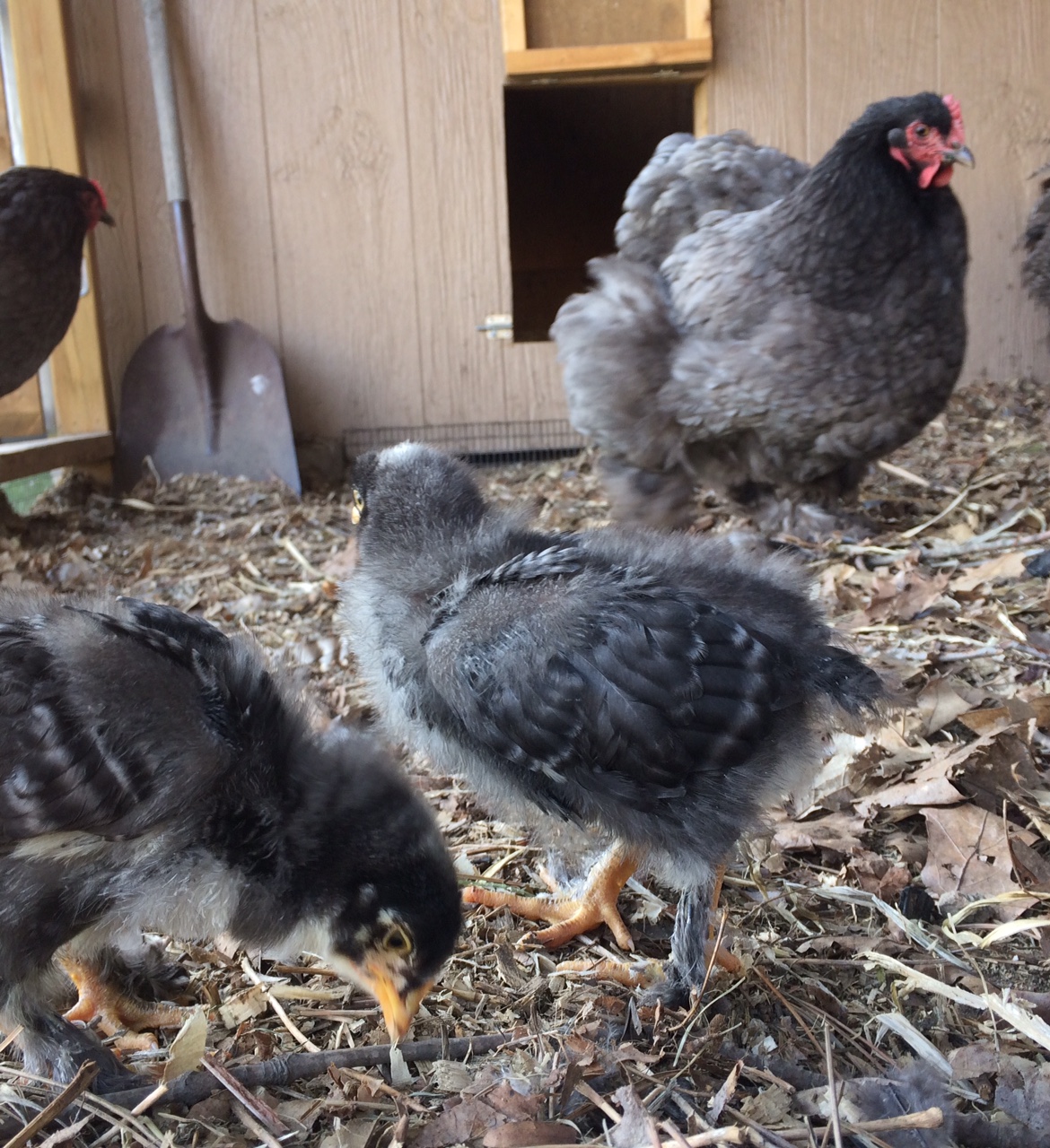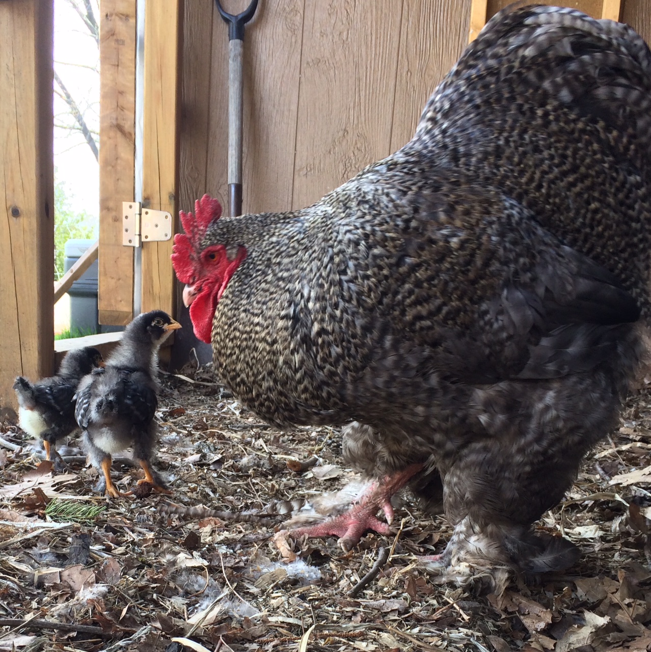 The Cochins are mesmerized by them and right after this interaction Harley went inside and crawled into a nesting box and cooed and clucked trying to convince his girls to be mom's lol.