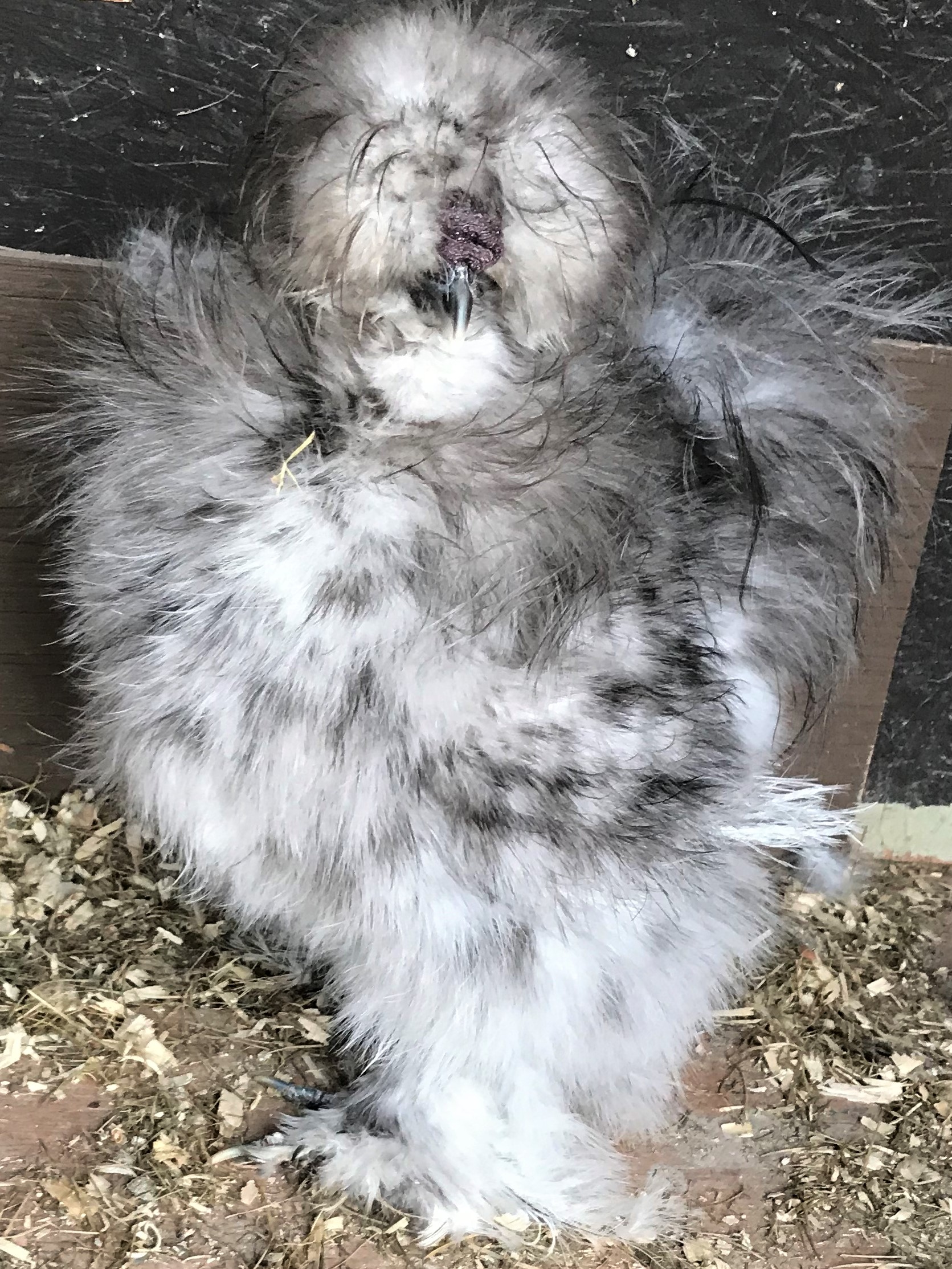 Got this little guy as an unsexed SPLASH frizzled silkie
