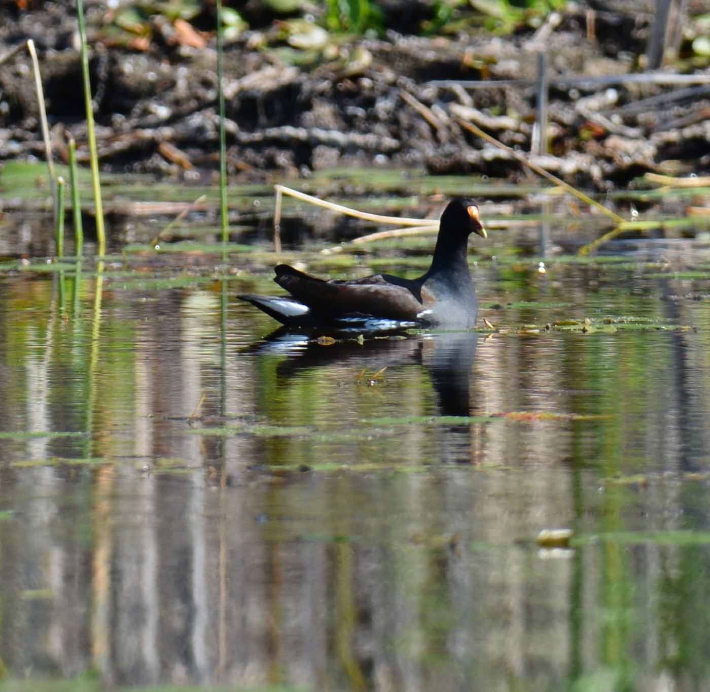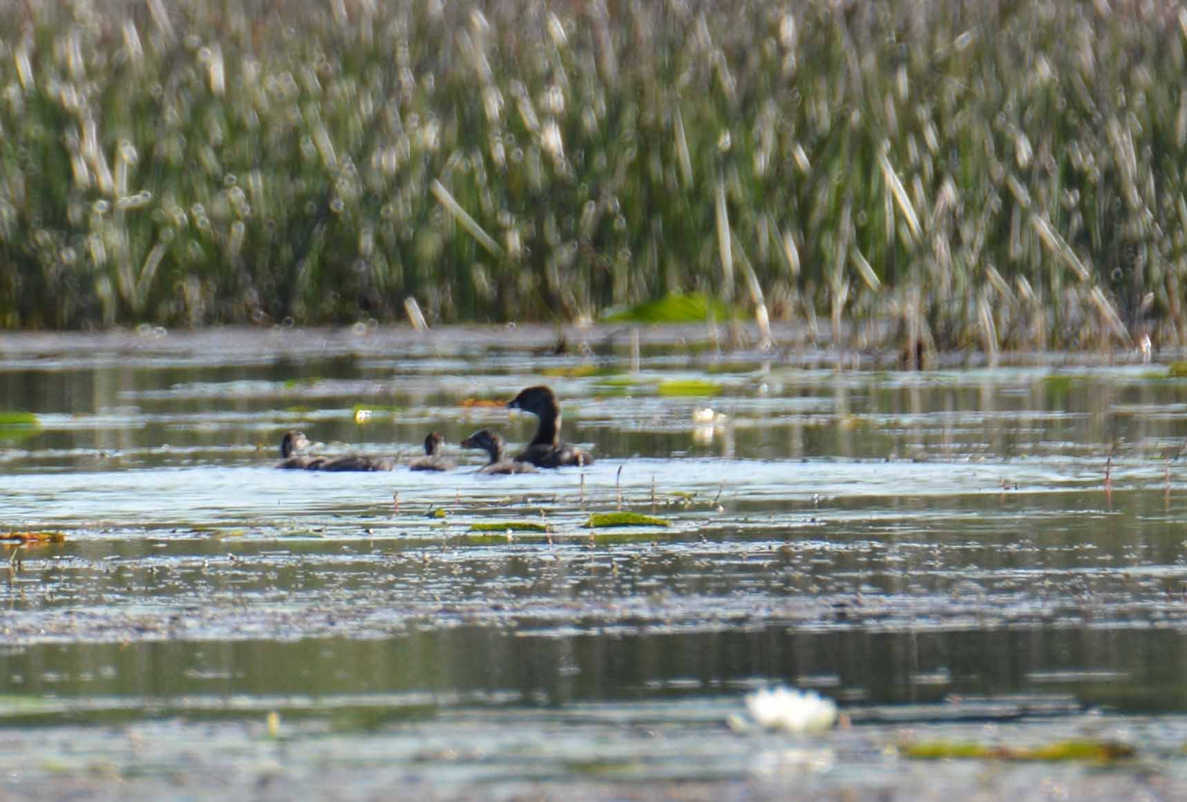 More canoeing this week and a few more pics. Saw a couple of previous acquaintances, this "baby" was in the photo contest as hitching a ride. Funnily it was still trying to get a ride and being told firmly - NO! Also a common gallinule. Wondered about these baby ducks, seems very late for this young perhaps she lost her first brood. Picture fuzzy but you get the idea.
