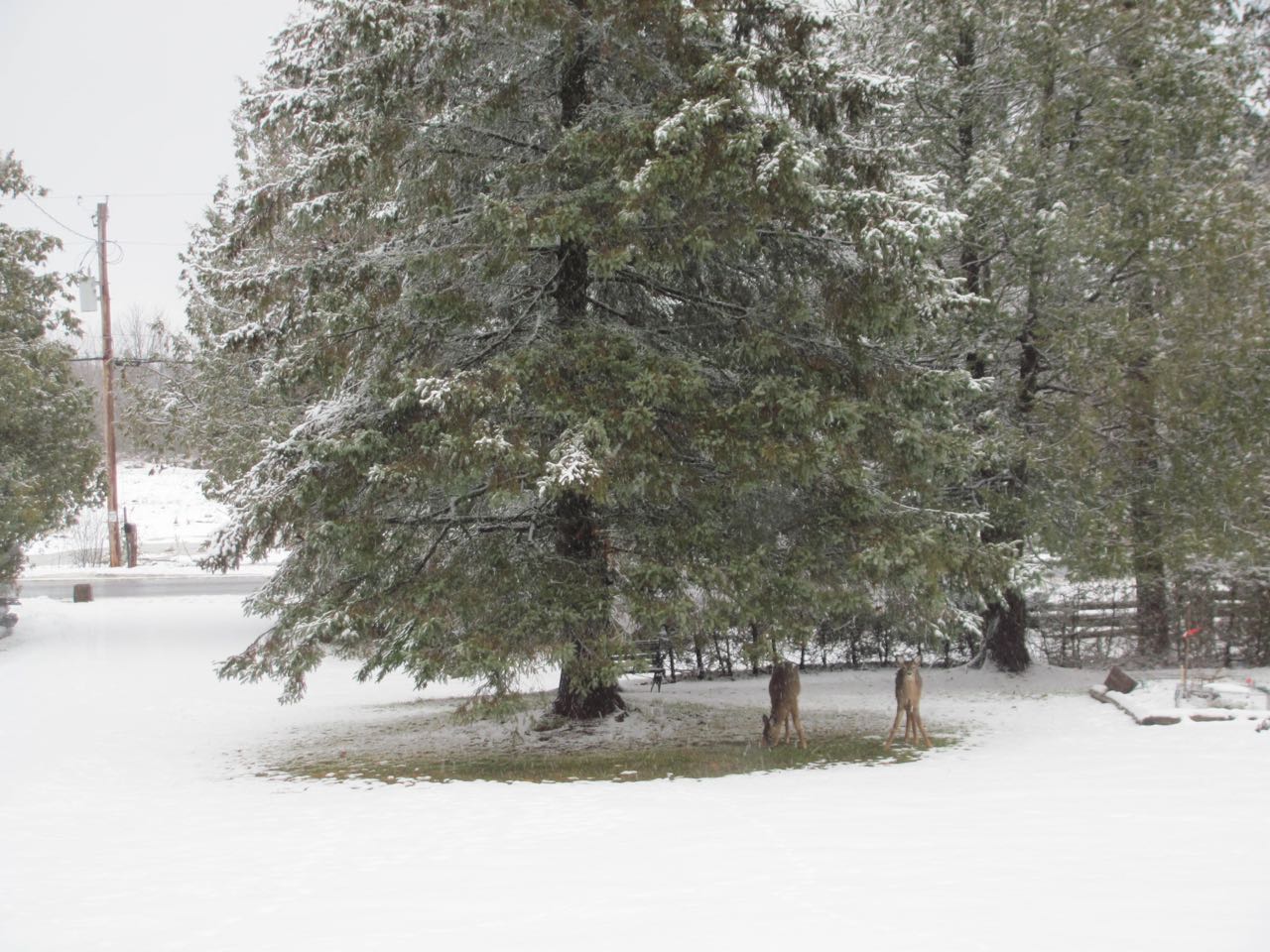 Like a port in the storm, spruce on our front lawn seems to be a favorite snack stop for the wildlife, possibly because its just beside the veg garden which is a lunch stop in summer time ;)