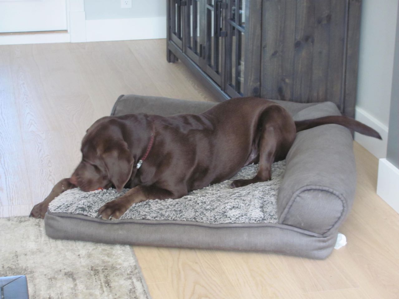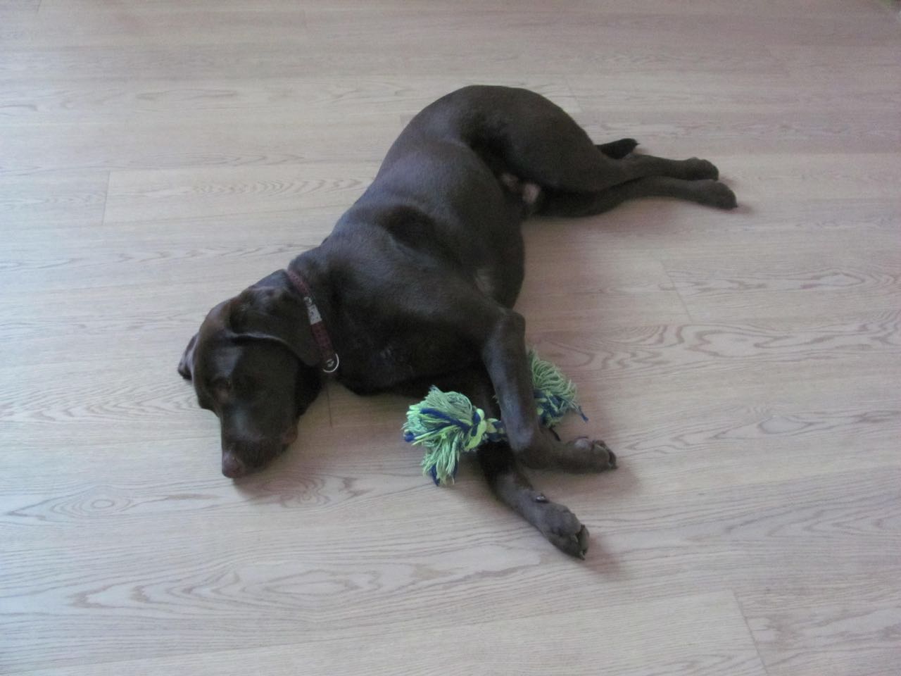 House sitting in Coquitlam with Forest, four year old chocolate Lab, that has got to be the most laid back dog ever.