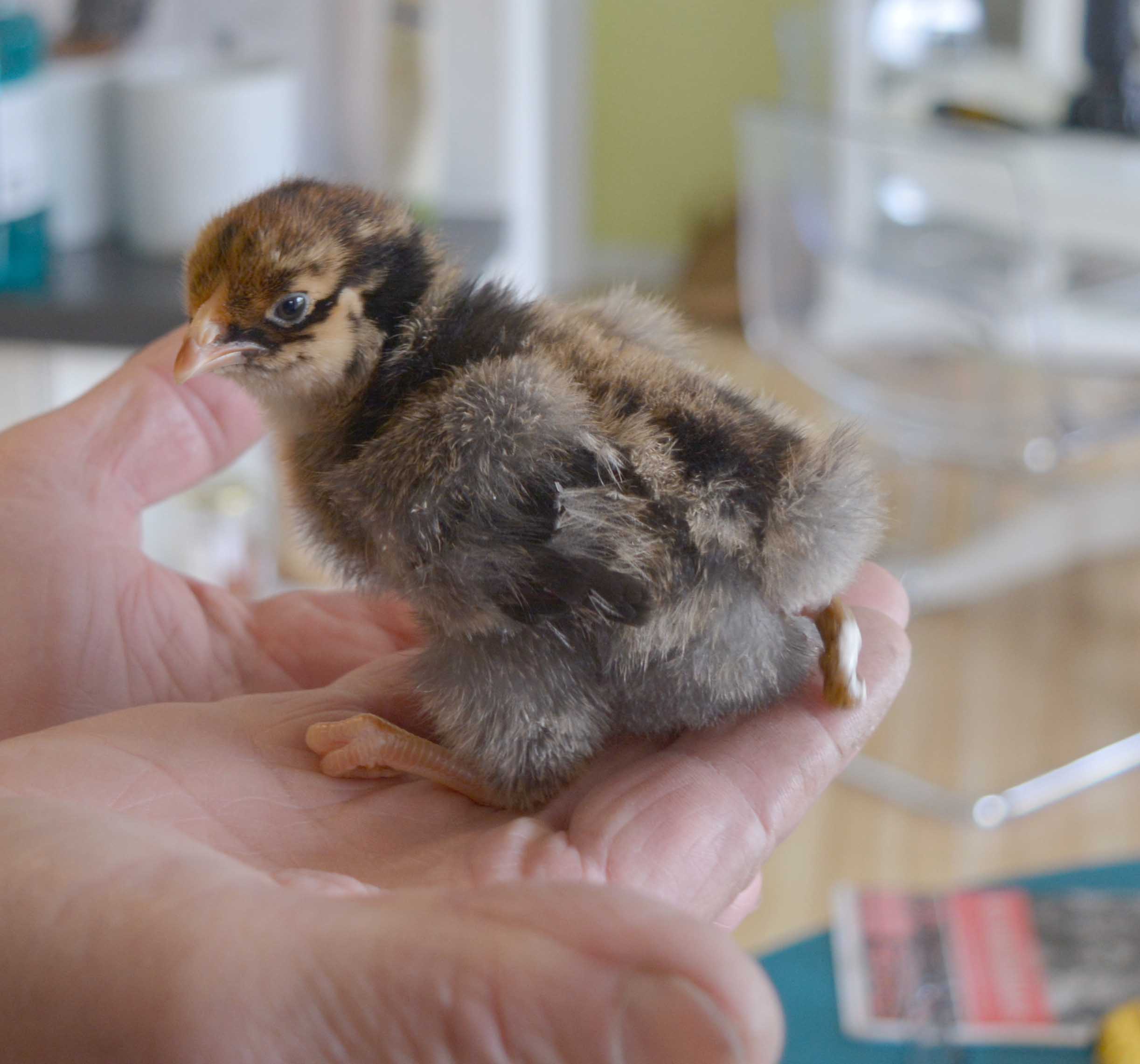 The chicks all look great. One died but I think it got jammed in a corner on the way home and didn't make it. I hear rec room cheeping now!