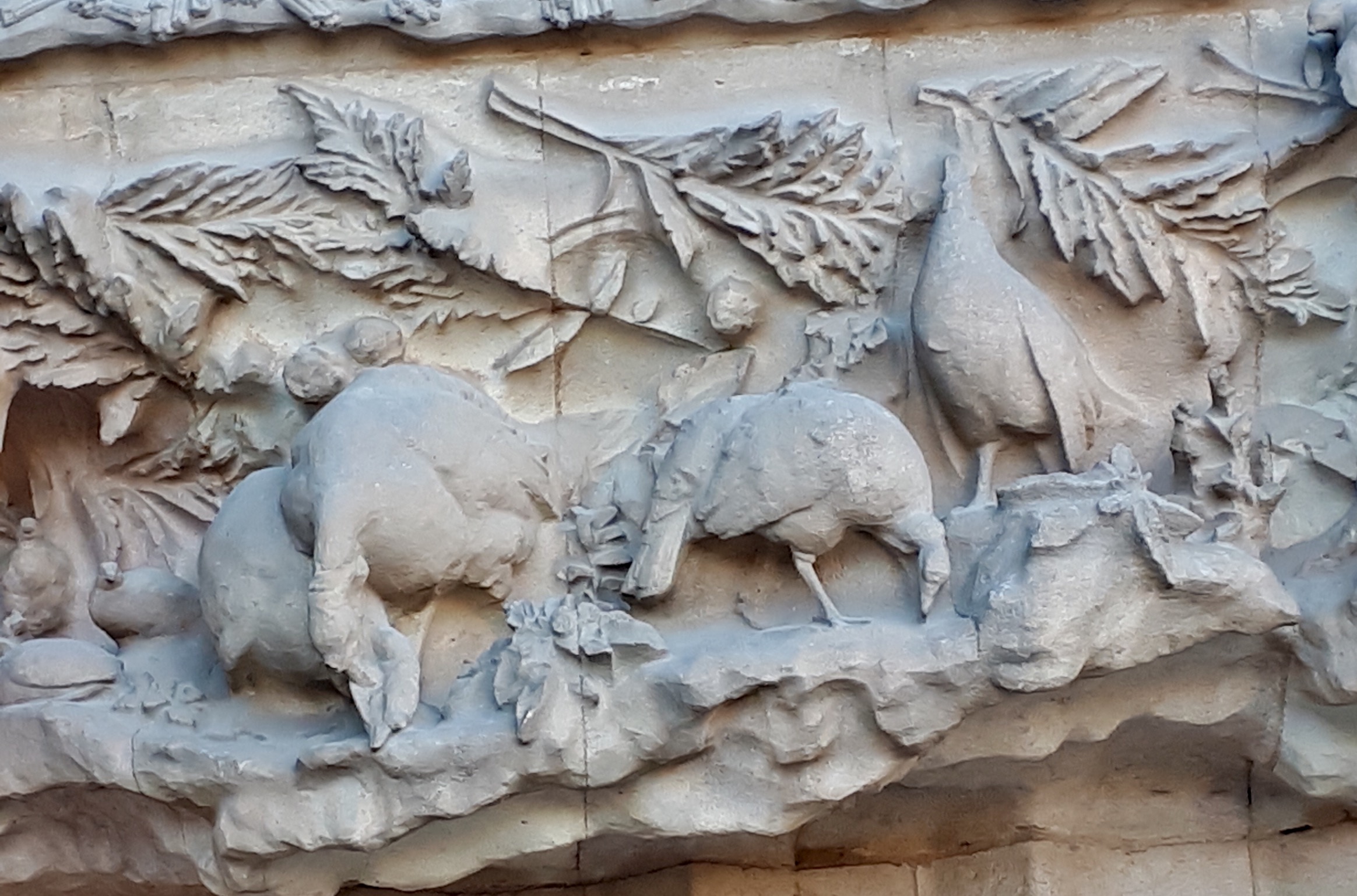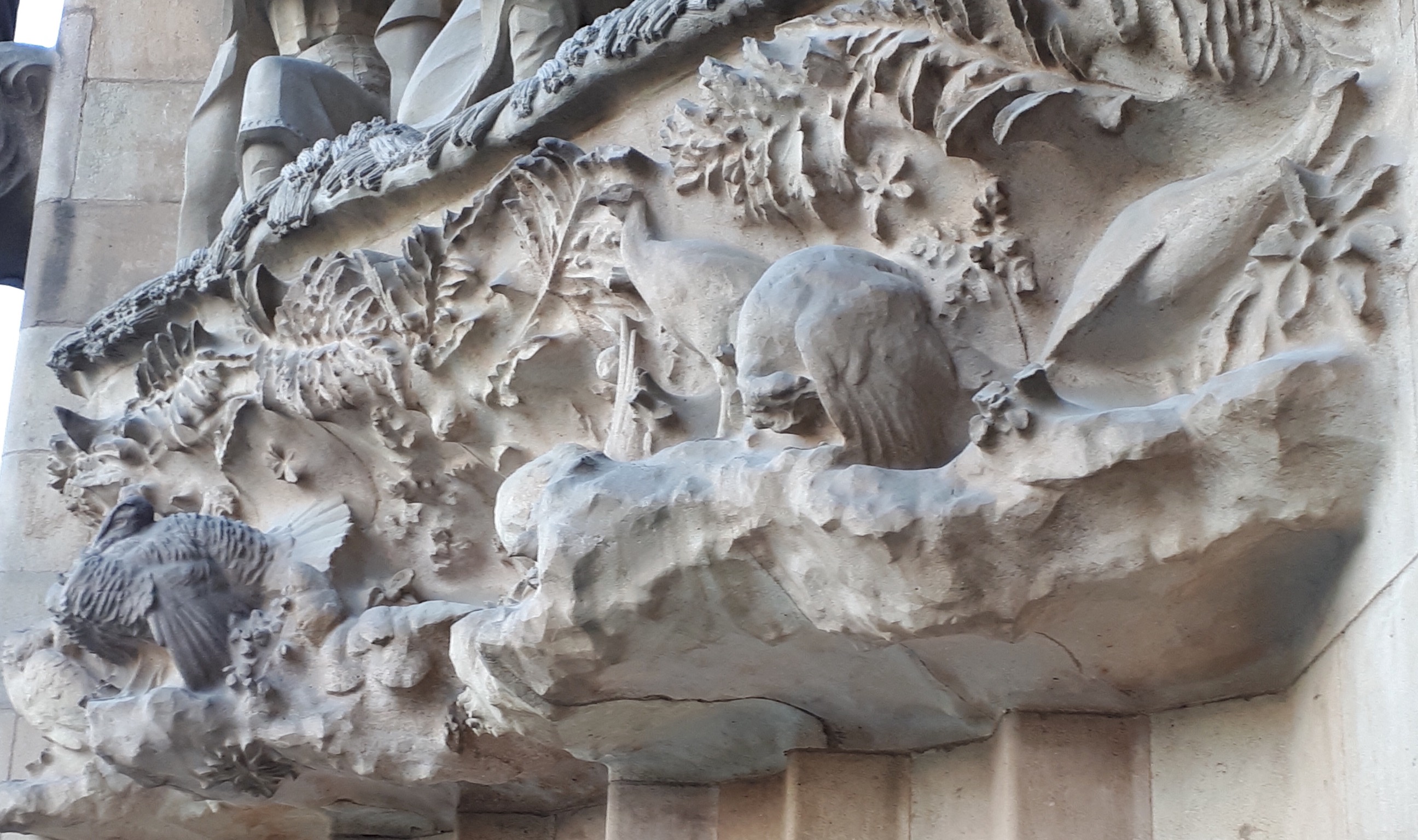 You know you’re a crazy Poultry person when you travel somewhere and take pictures of the livestock! Except for sheep in fields near Roquefort we didn’t see much livestock but low and behold, the Sagrada had several reliefs on the exterior which I just couldn’t take my eyes off and had to take pictures of.