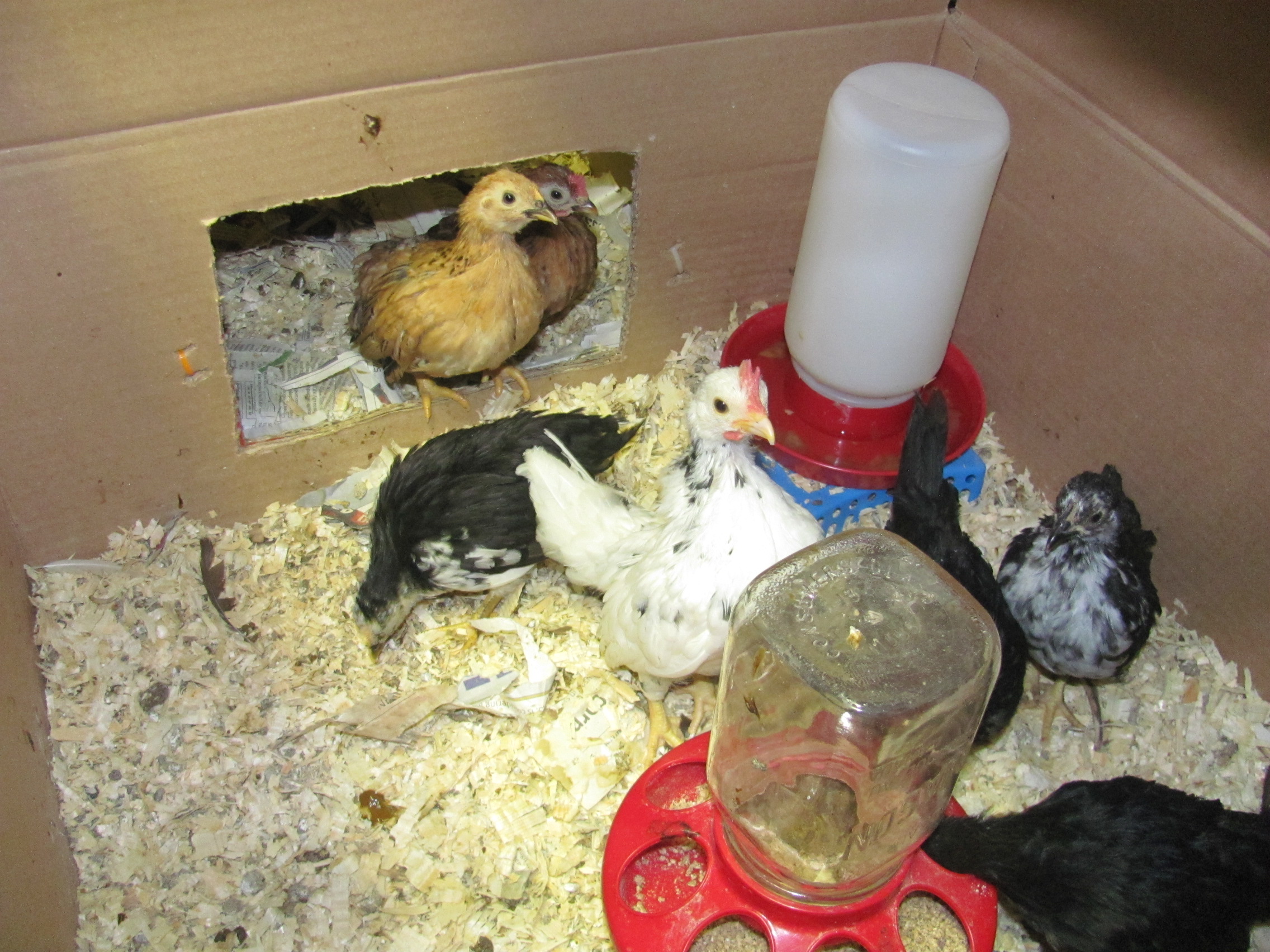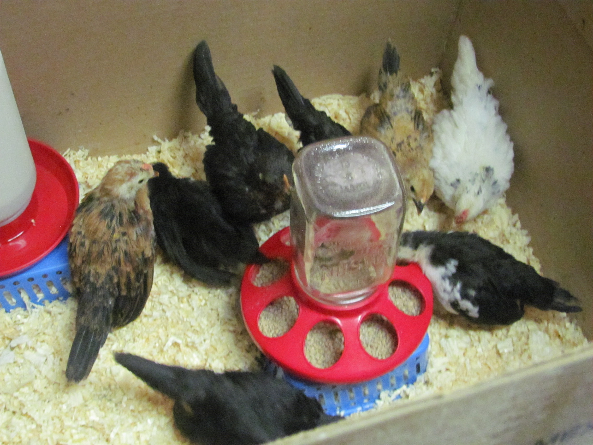 My Serama chicks are 4 1/2 weeks old now. I may have more pullets than I thought. Some of the combs are a bit wonky.