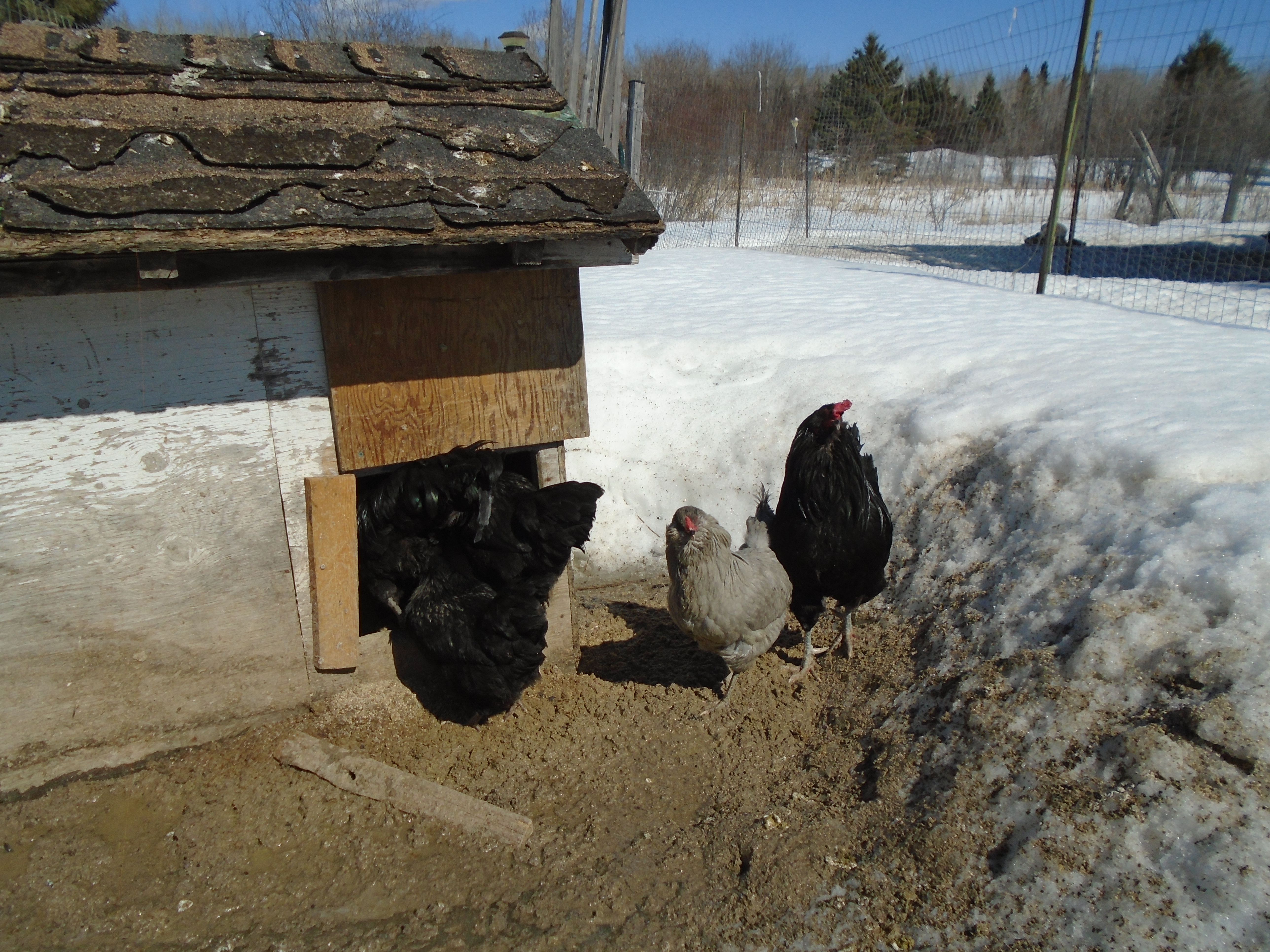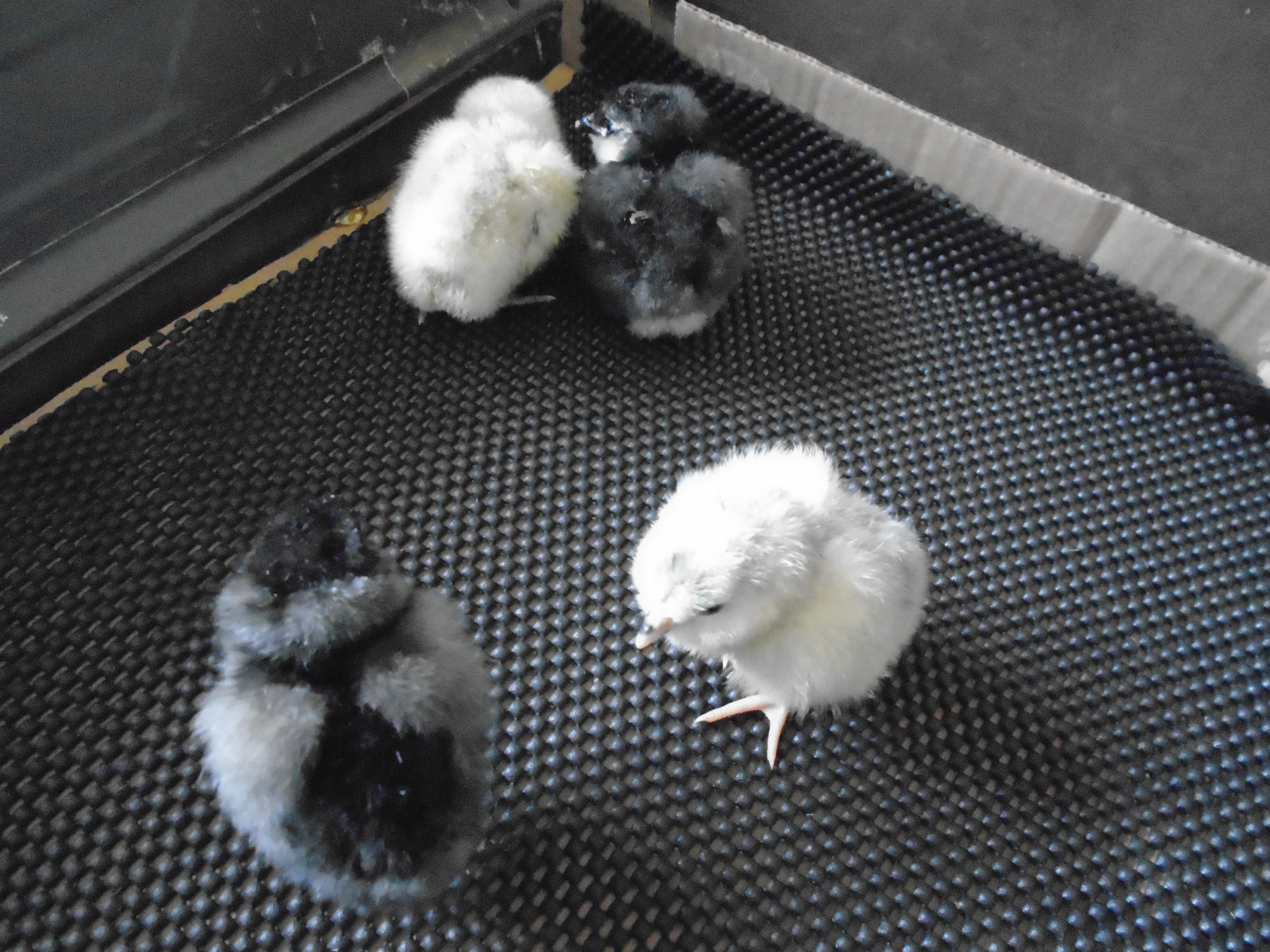 Here is a few pictures of all of them. We were lucky to get all Black Ameraucanas last year. These pictures were just taken recently before selling the Lavender and her male offspring. The hatch in the previous pictures look like 2 Lavender and 2 Black.