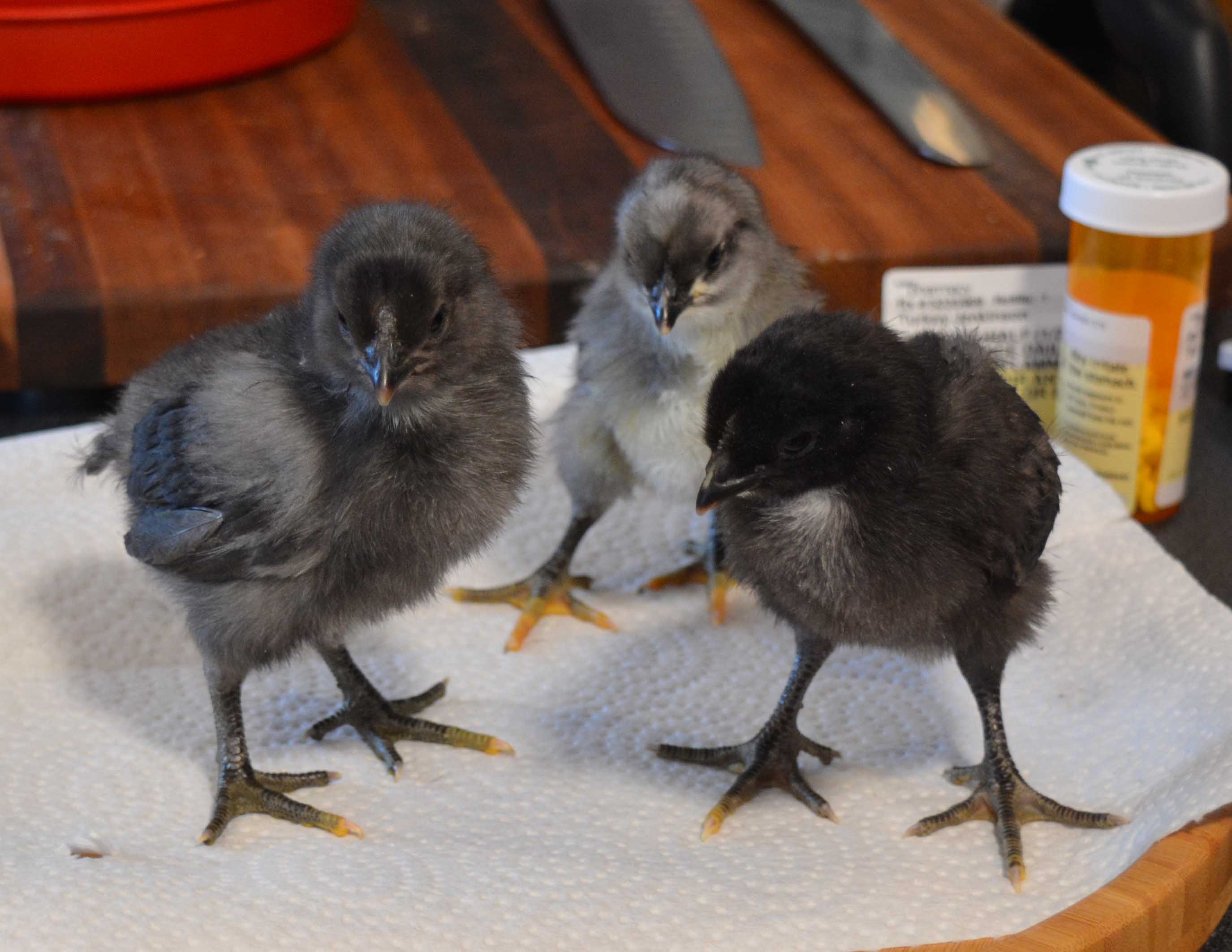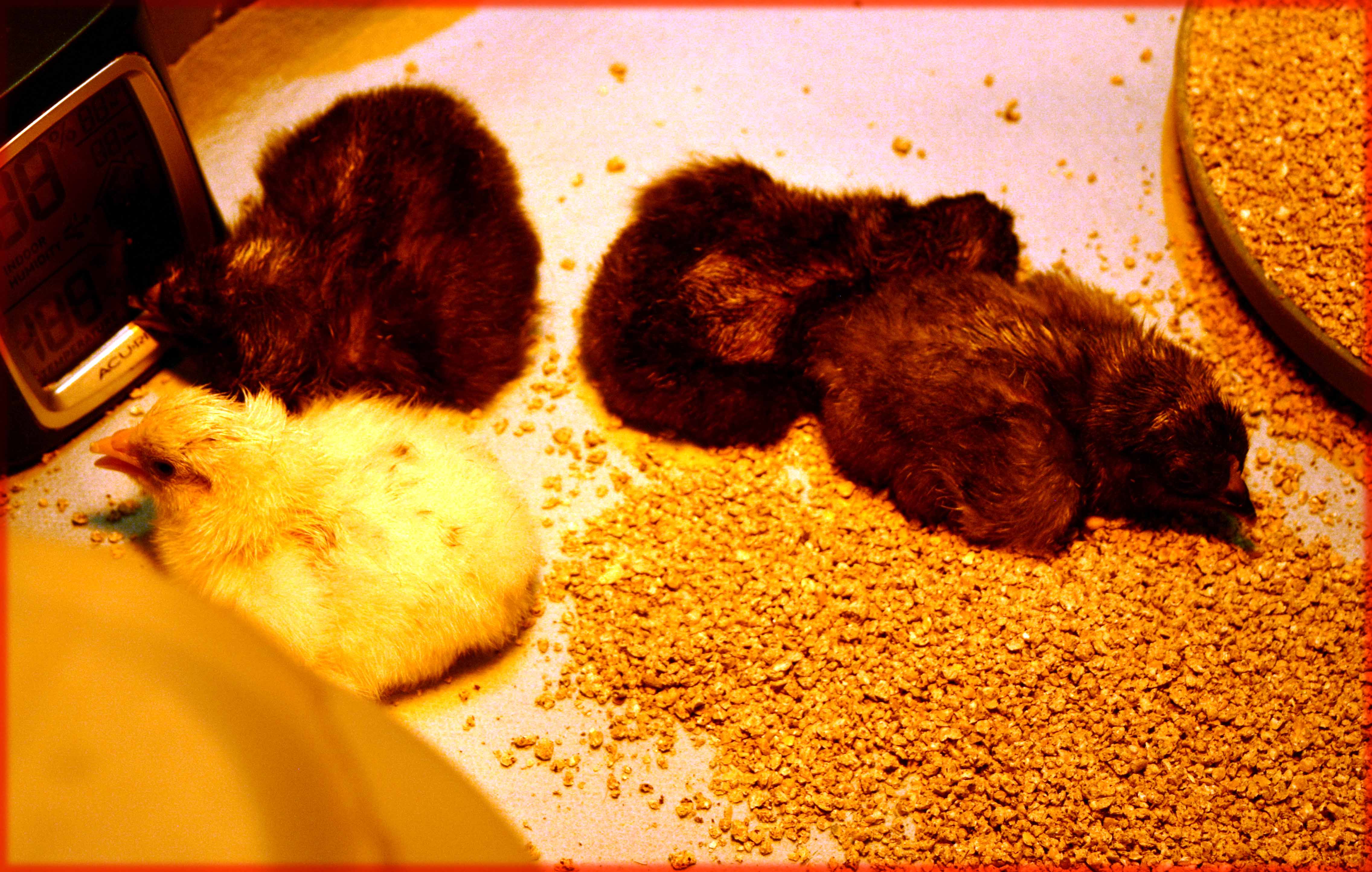 Update on the indoor chicks. All are doing well and are beautiful. They will be lovely colours. The broody is a great Mum and her 9 are doing well too.