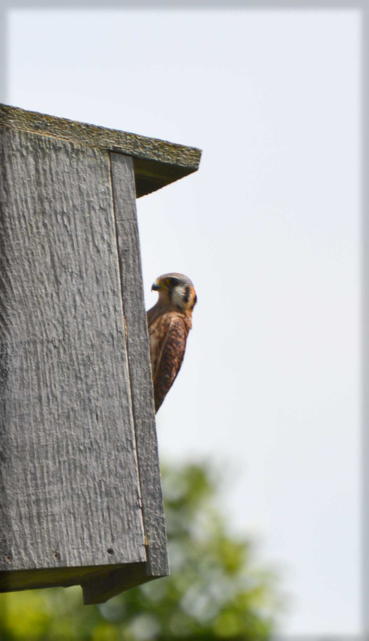 The last place we had in Prince Edward County had a row of tall spruce trees at the back of our lot and a pair of kestrels took up residence in them and had 2-3 chicks. They were great fun to watch but it was quite the racket when they all left the nest and were flying and being fed in the trees!