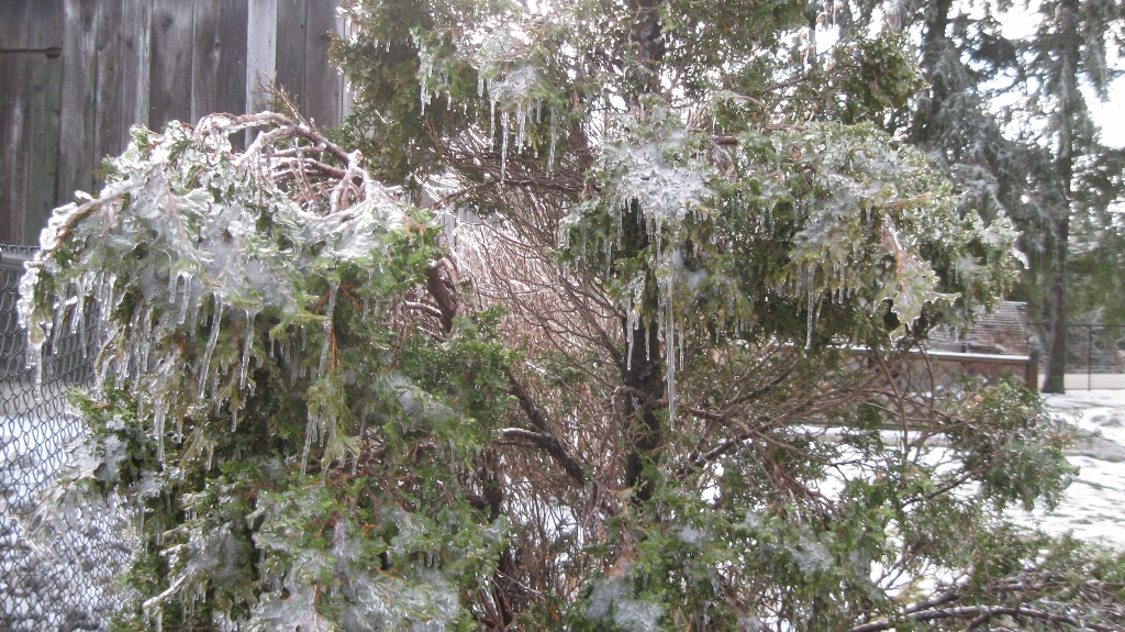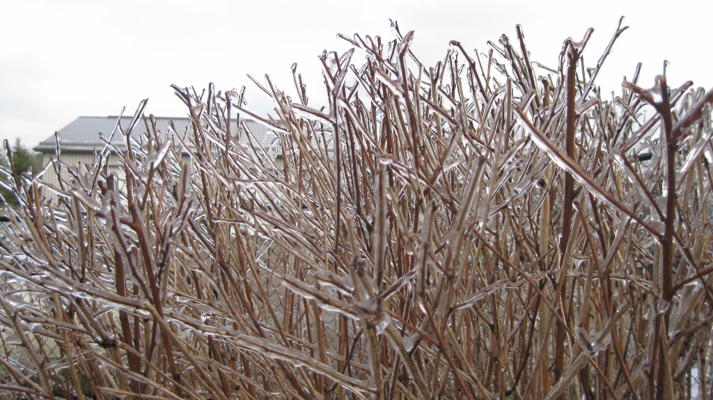 Well even though I cursed it for causing my power outage here on Thursday evening it really did make for some interesting ice formations on shrubs and trees.