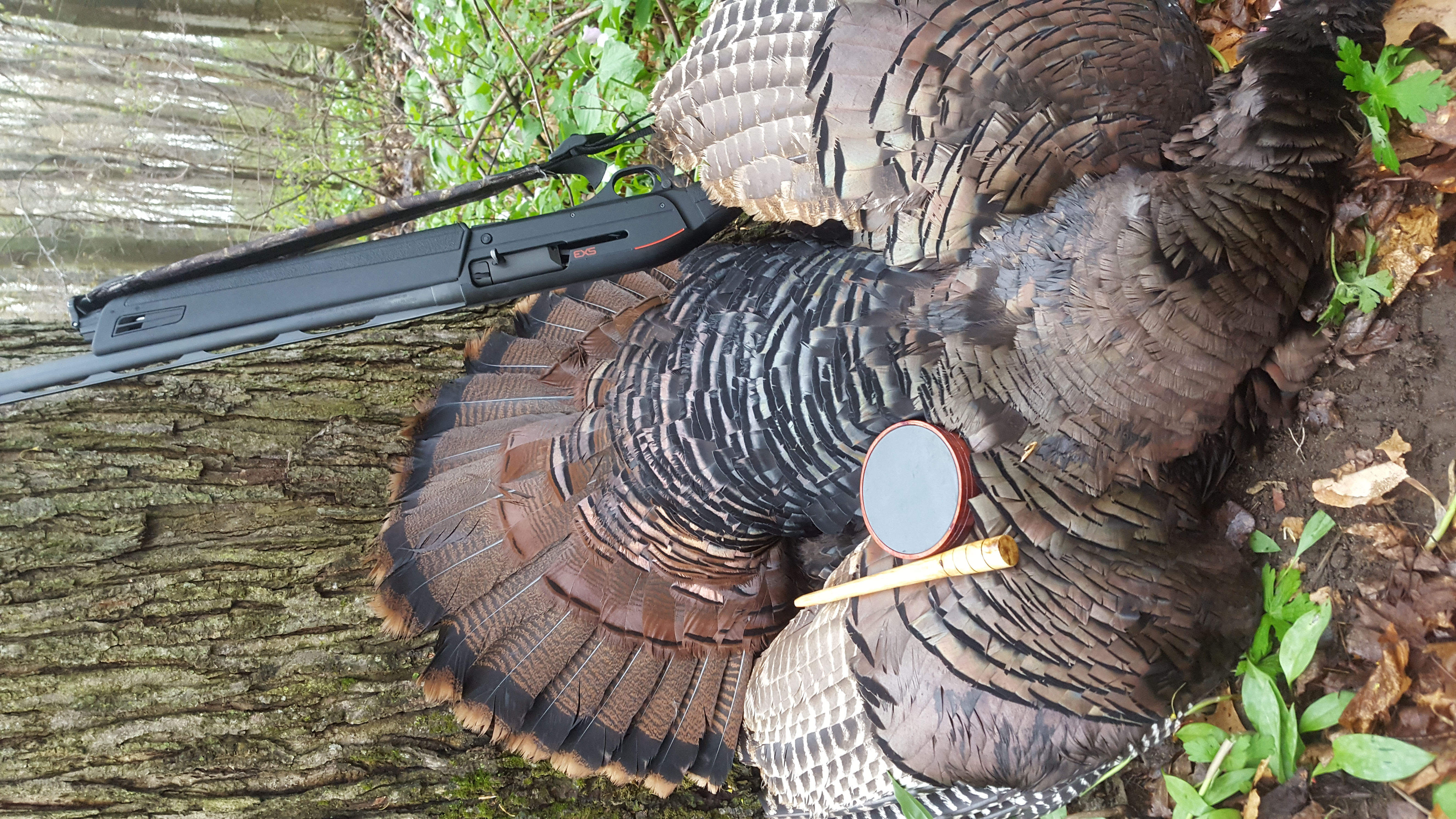 That one didn't work today, but the hen calls did!! So out came the slates with a new striker compared to yesterday. And I was able to call in 2 adult toms. And here is the bigger one of the two!