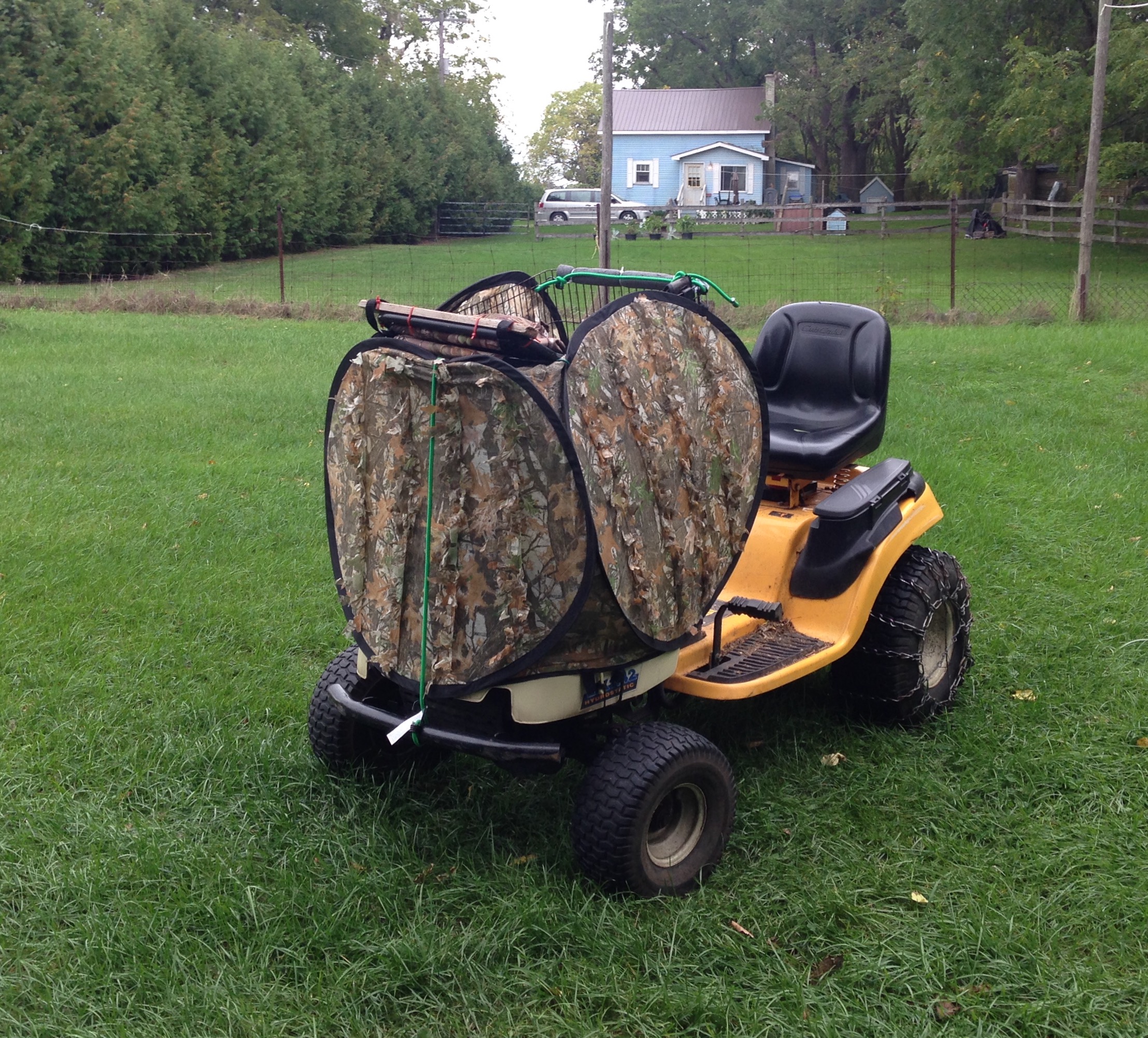 Already to just back into bush line/edge , drape camo netting over me & back of tractor & already for the hunt . Luck all