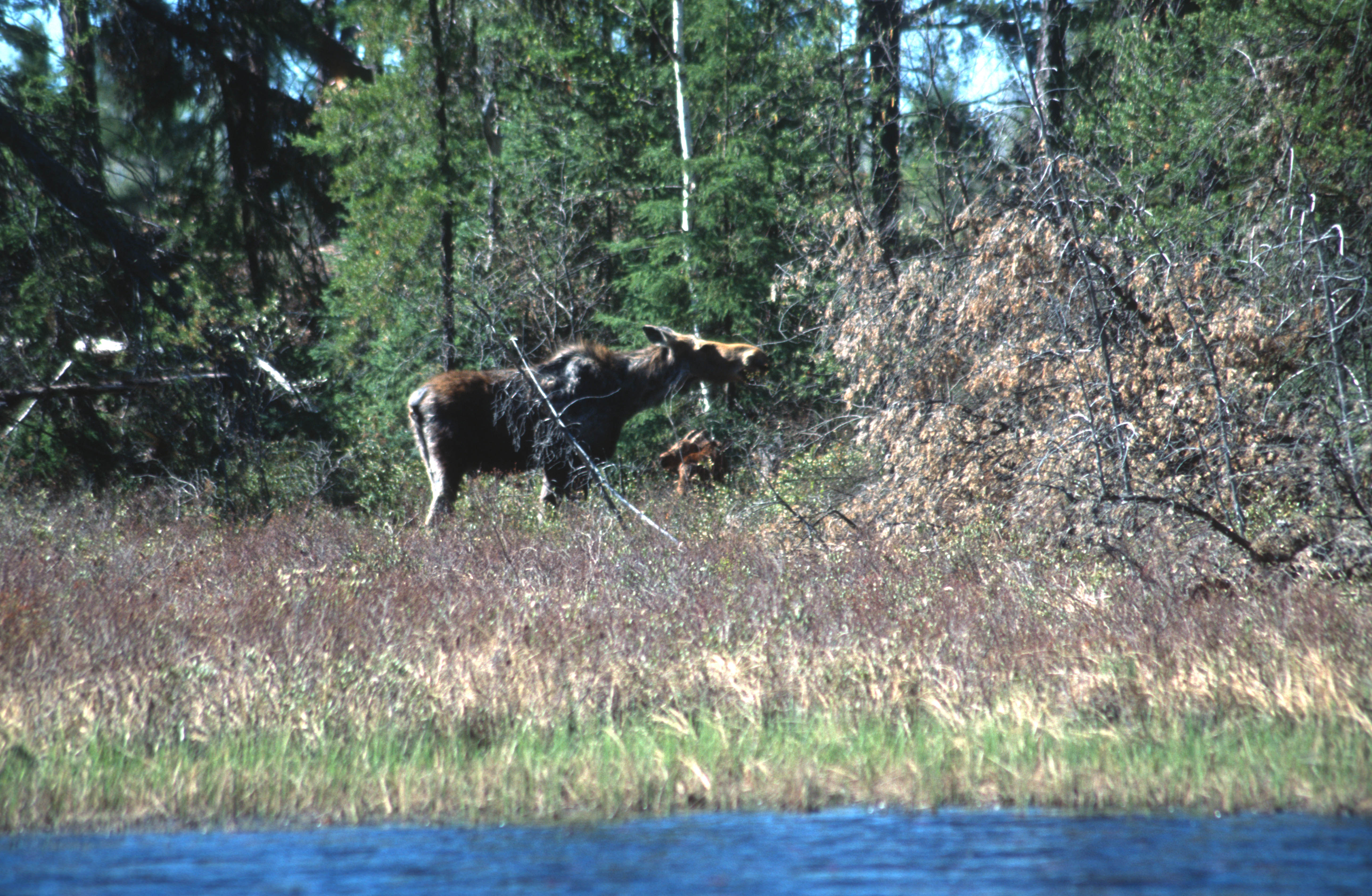 Going to add this here. Saw this when we were canoeing in the north country. Calf a couple of days old we first saw it when it was still wobbly like the bambi movie. This cow would give birth each year between the campsites where the bears didn't go. We saw them again in September. She successfully raised calves for 5 years that we know of.