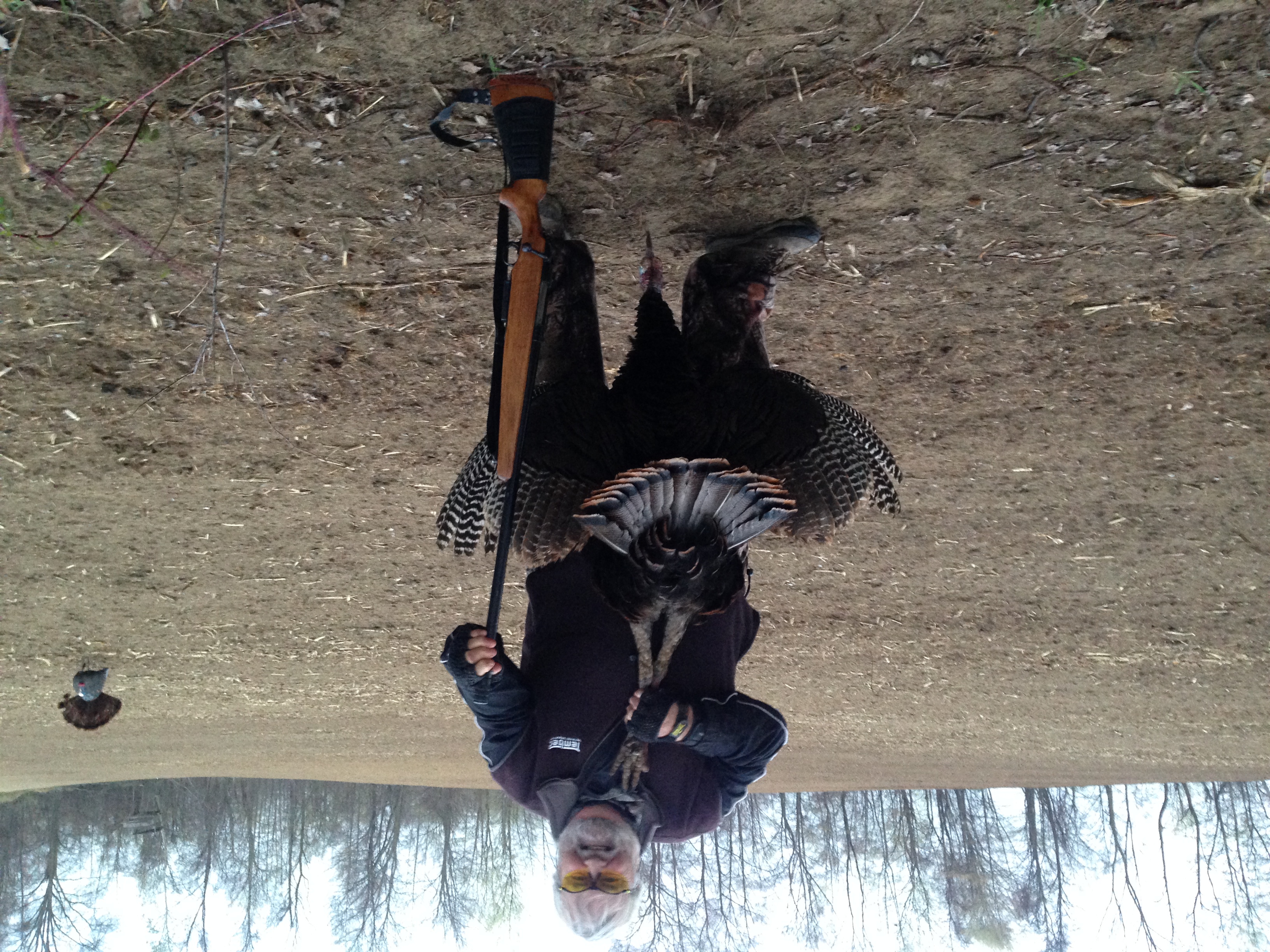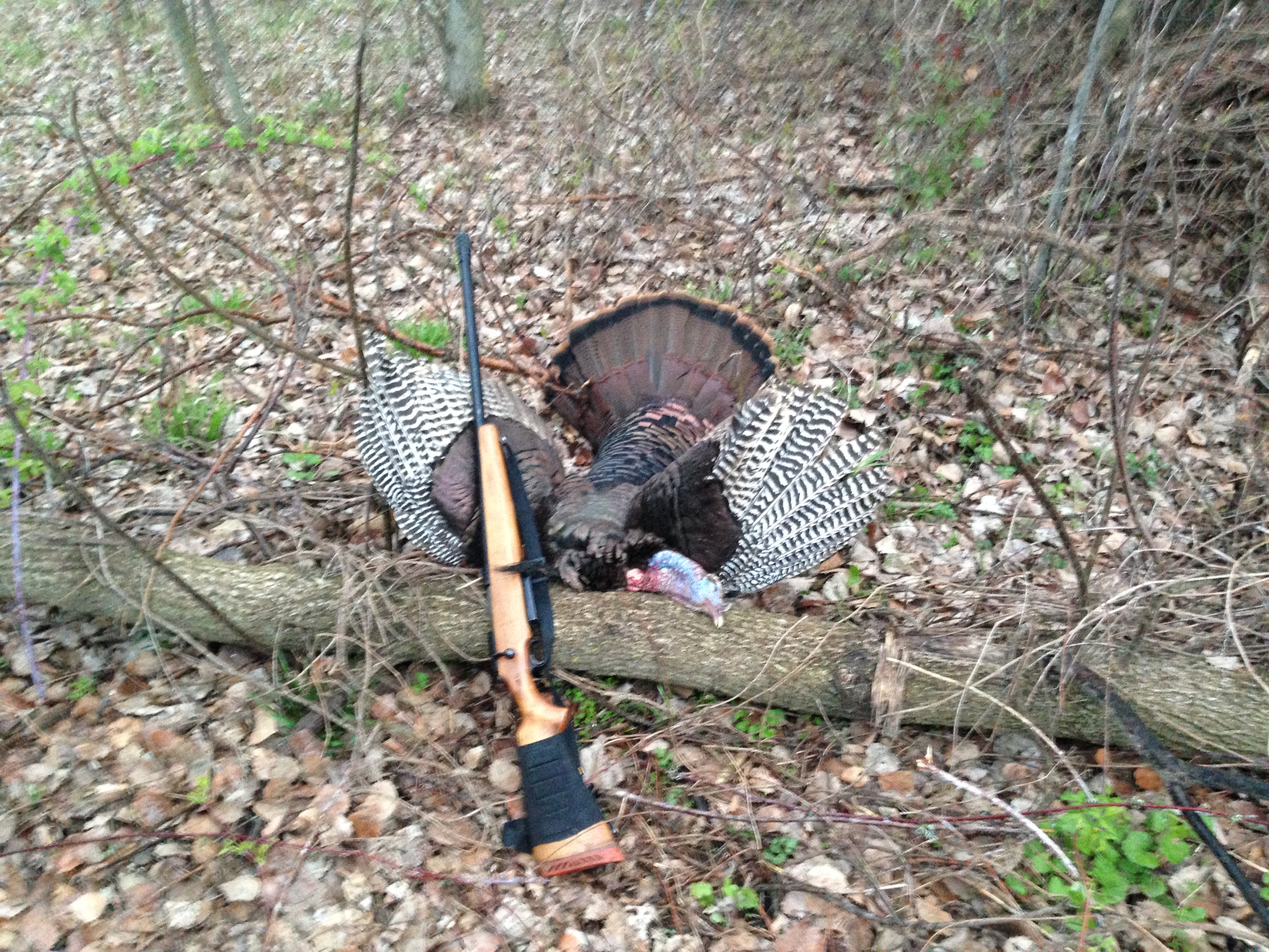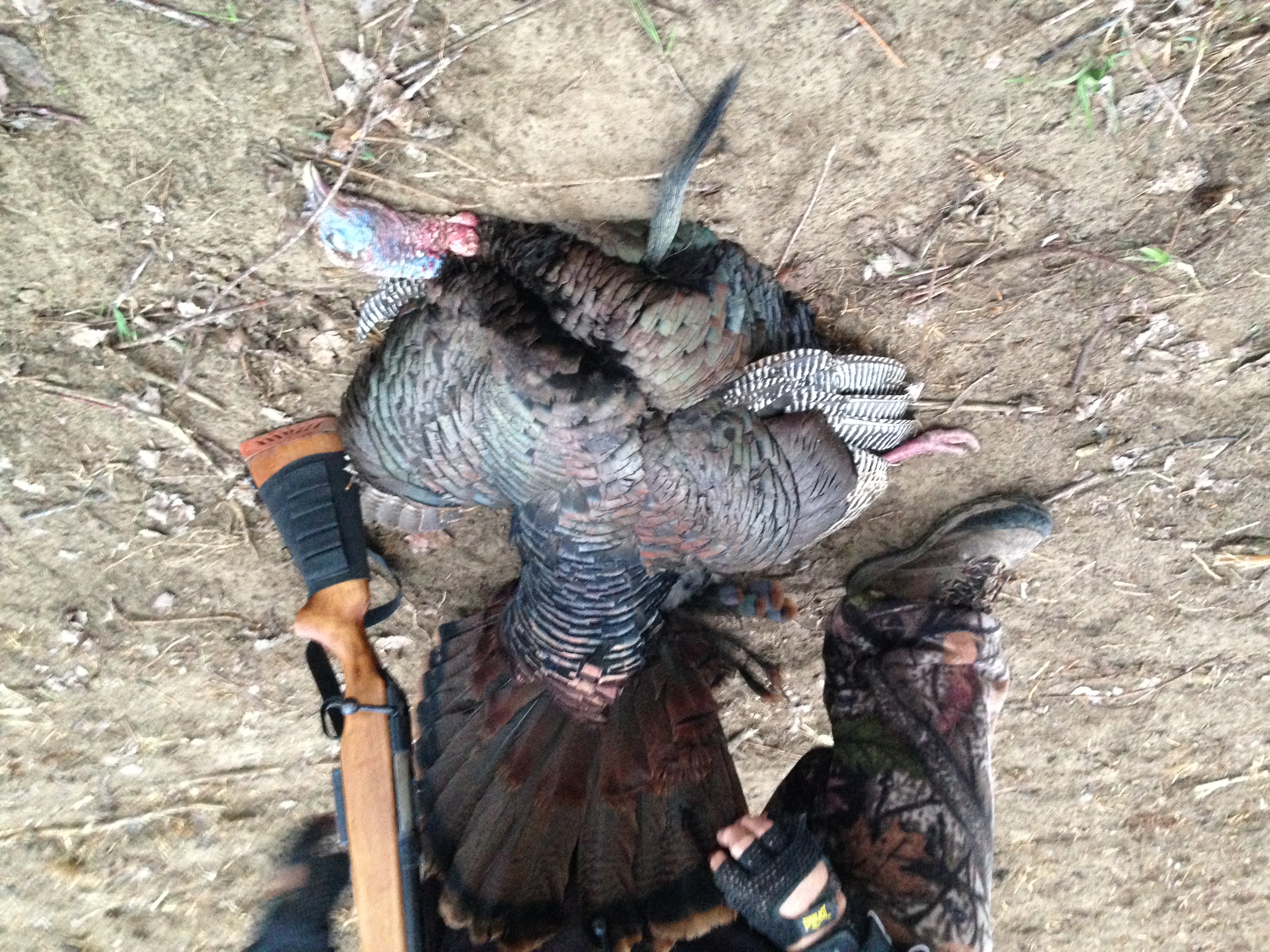 Hehaww got um 6:30 AM just as started to rain . 1" Spurs & heavy 9" beard . The old Hunter & old shotgun still got it . Lol