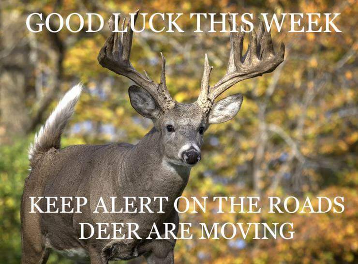 Rut is on and wear bright colours if walking in bush ..Muzzleloading season is here . Luck to all hunters .