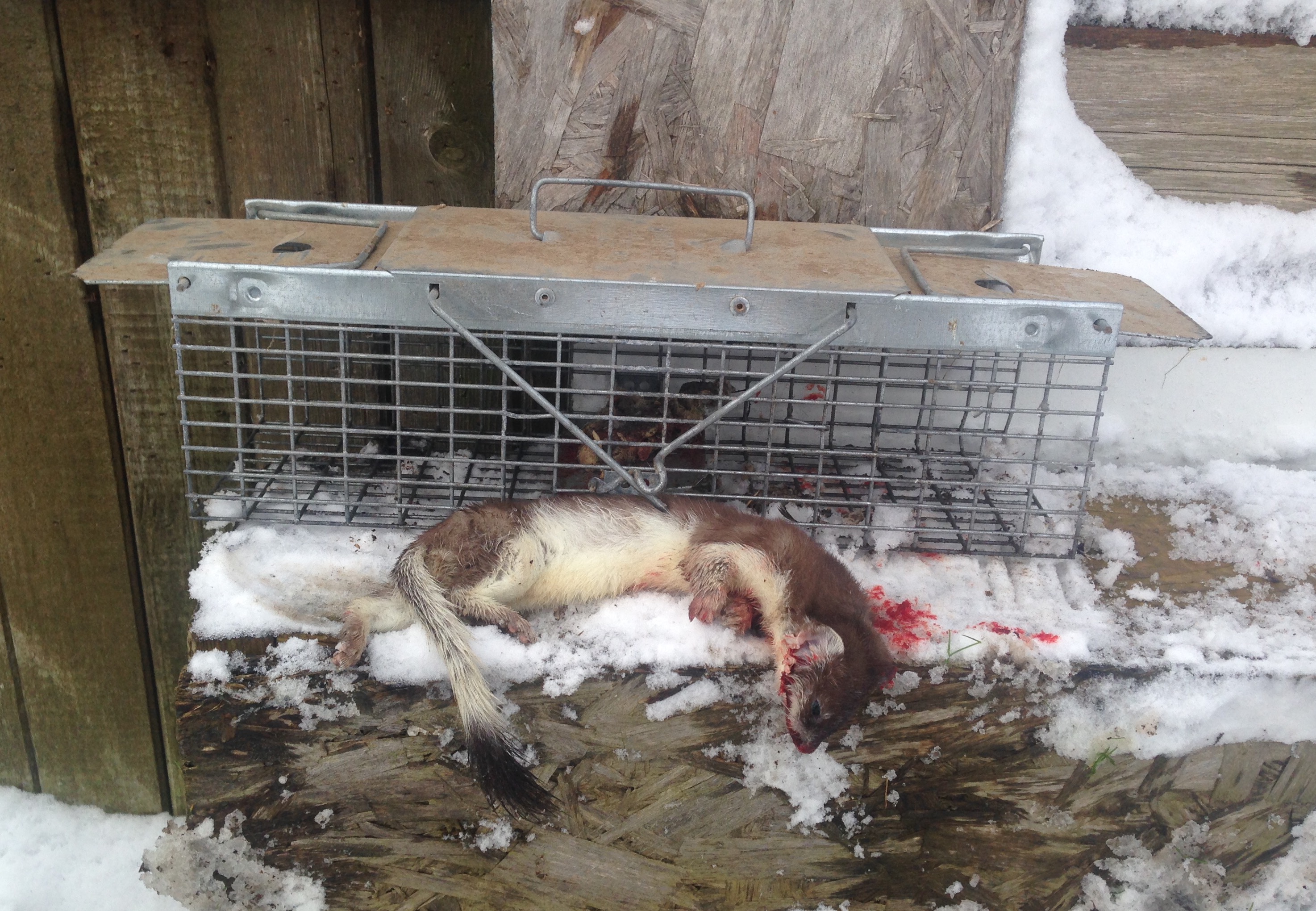 Last one I caught, I left the door to the coop open a crack, width of the trap and the trap in that space at floor level, kind of like a small door, on its side, not flat like you think of a trap. If he wanted to get in, he had to go through, and I got him. I think I had the head of a chicken on the trap trigger. Set that one after dark, and retrieve it before light or you might catch a chicken, which sort of defeats the purpose.