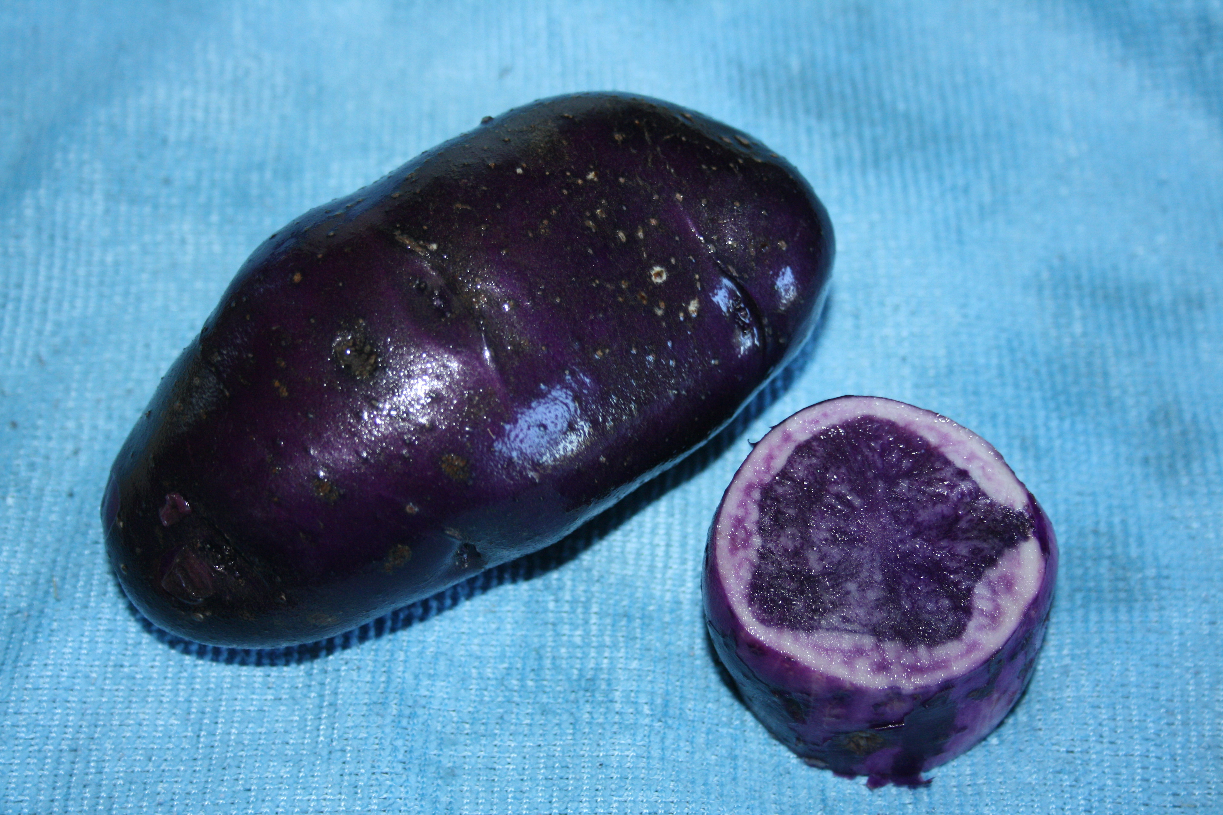 PERUVIAN PURPLE, these spuds are dark inside and out!